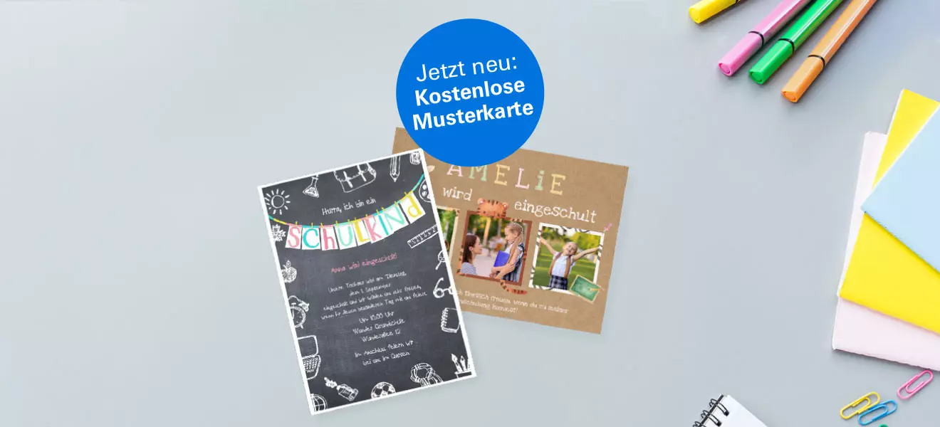 Ihr Kartendesign wird von unserem Kunden Service überprüft und in einer Druckerei in Deutschland auf FSC zertifiziertem Papier gedruckt. In 3-5 Tagen, je nach Versandaufkommen, erhalten Sie die Einladungskarten in plastikfreier Verpackung. So steht dem Schulanfang mit großem Einschulungstag nichts entgegen.