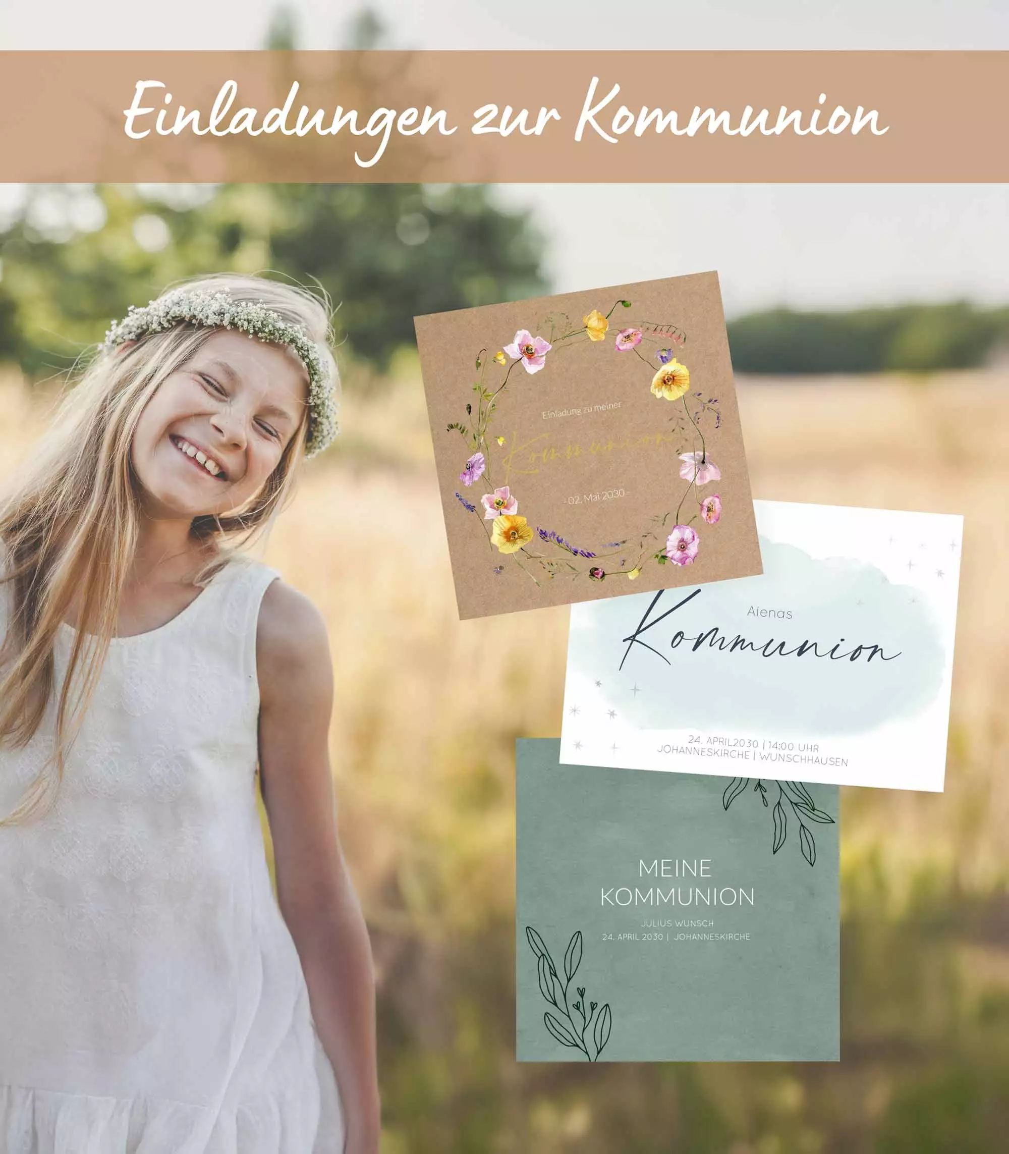 Eine Kommunionseinladung will sorgfältig gewählt sein. Gestalten Sie Ihre Einladungen zur Kommunion bequem und schnell online am PC oder direkt am Handy ganz nach Ihrem Geschmack und Ihren Vorstellungen.