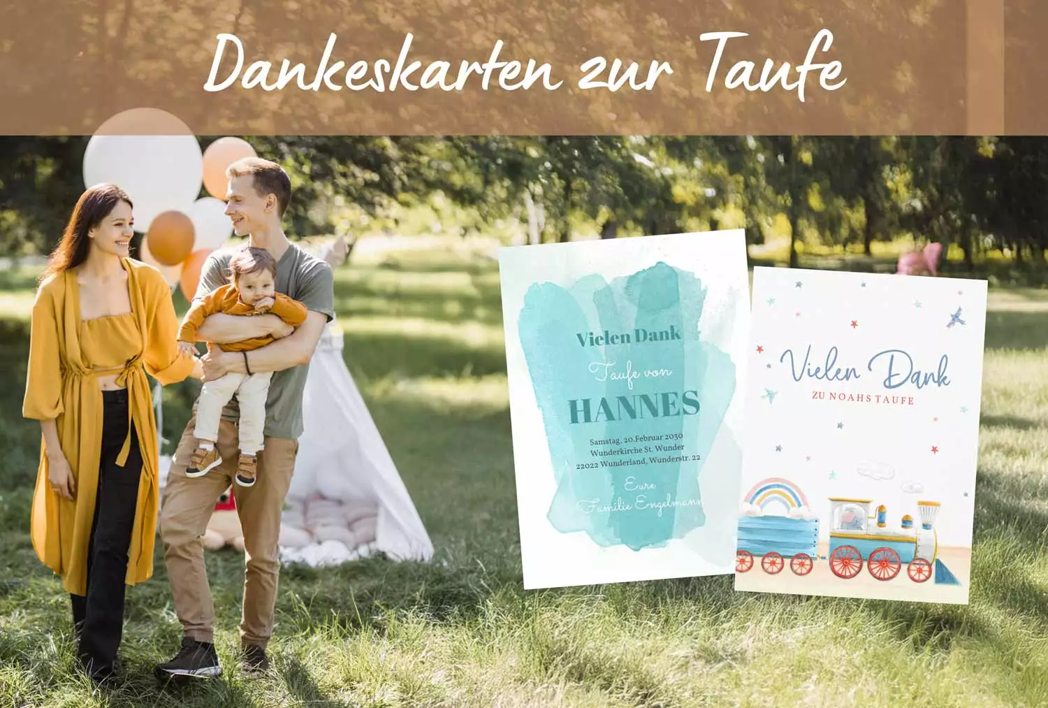 Eine Taufe ist ein ganz besonderer Moment im Leben eines Kindes – emotional, bedeutend und voller Liebe. Ob im kleinen Kreis oder als große Tauffeier: Nach der Tauffeier ist der perfekte Zeitpunkt, um sich herzlich zu bedanken mit einem persönlichen Dankestext. Zeigen Sie Ihre Wertschätzung für die Geschenke, Glückwünsche und die Anwesenheit Ihrer Gäste, Freunde und der Familie mit stilvoll gestalteten Dankeskarten zur Taufe mit einem persönlichen Text.
