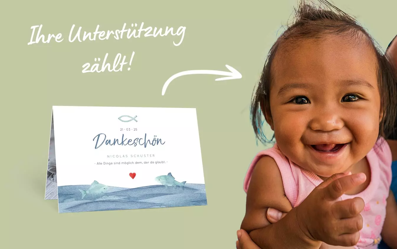 Entdecken Sie jetzt die UNICEF Dankeskarten zur Taufe und helfen Sie mit dem Kauf weltweit Kindern in Not.
