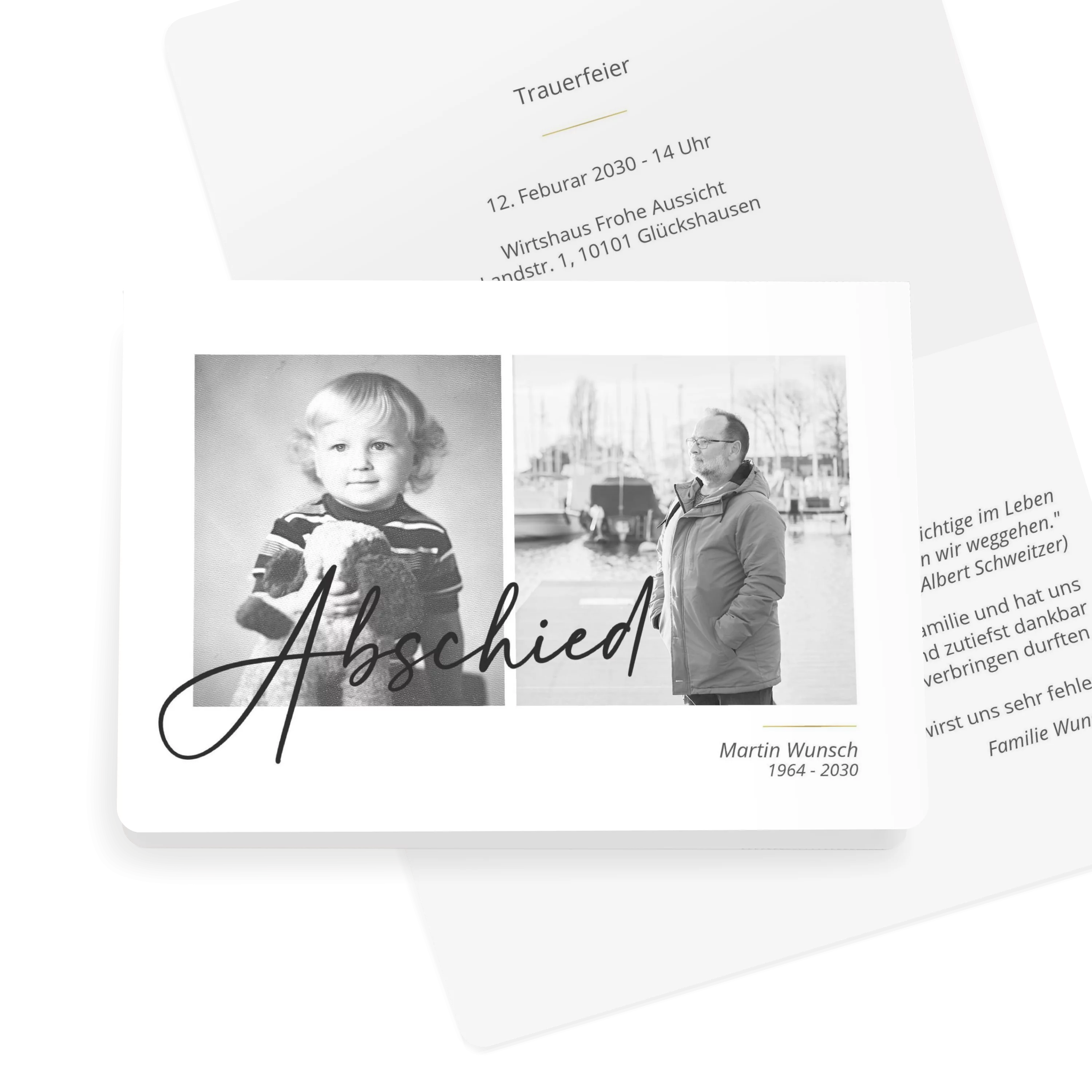 1,10 €: Selbst gestaltete Klappkarte mit Hochglanz- oder mattem Lack sowie Doppelklappkarte mit Umschlag