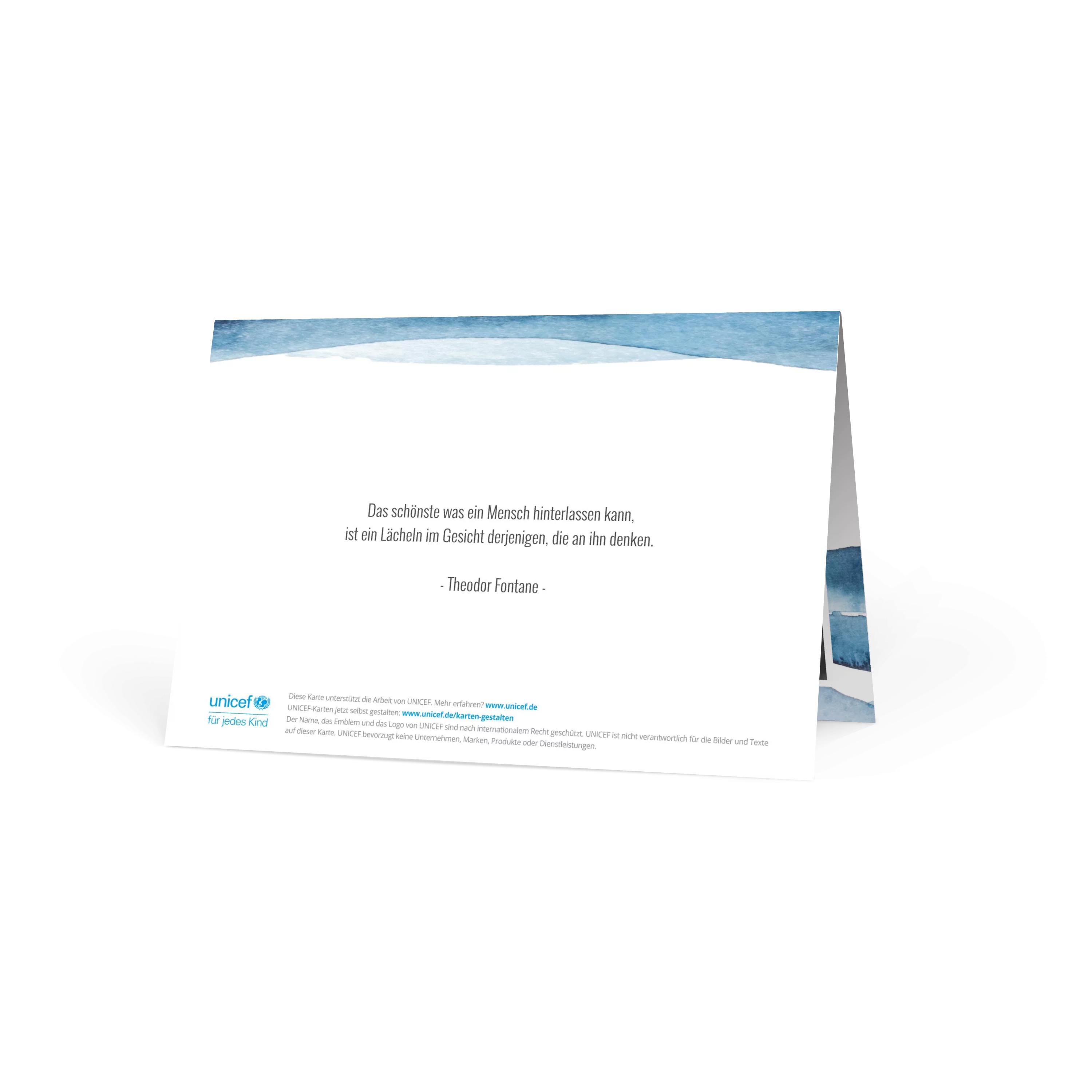 Alle UNICEF-Karten werden unter Einhaltung strenger internationaler Richtlinien hinsichtlich Qualität, Sicherheit, sozialer Verantwortung und Umweltschutz hergestellt. Denn UNICEF ist den Kindern und ihren Familien verpflichtet.
