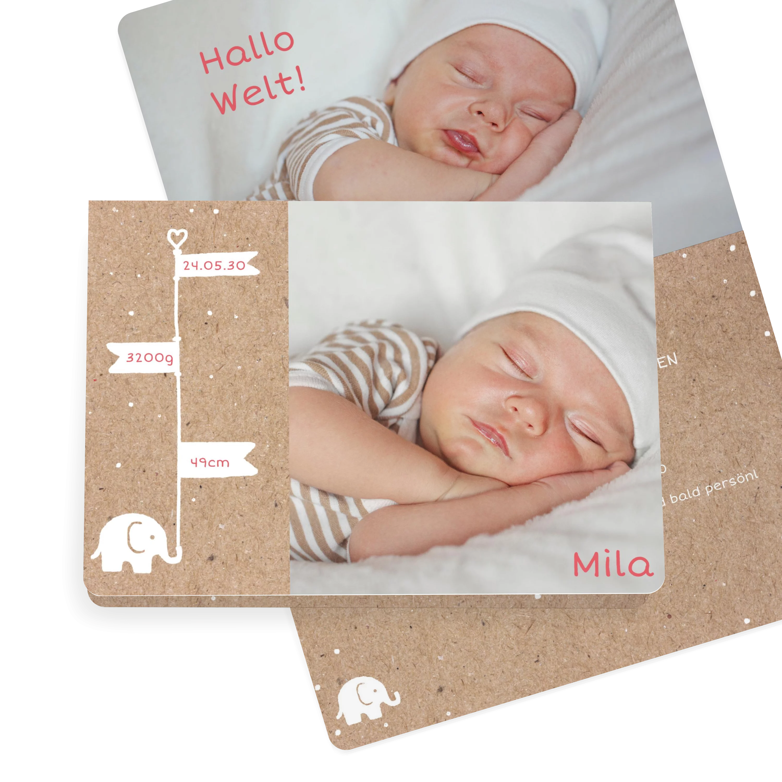 Geburtskarte „Baby Elefant Fahne Kraft“