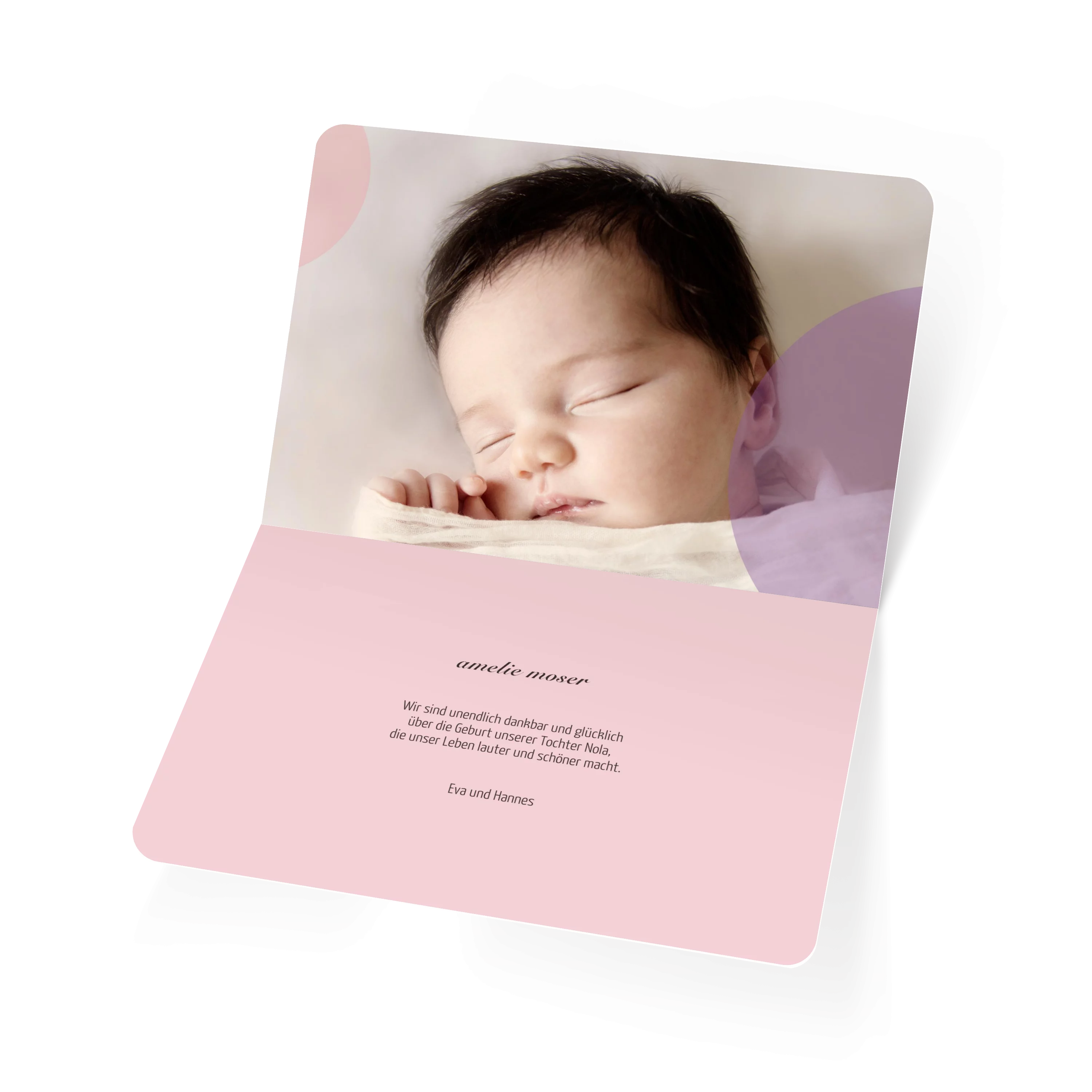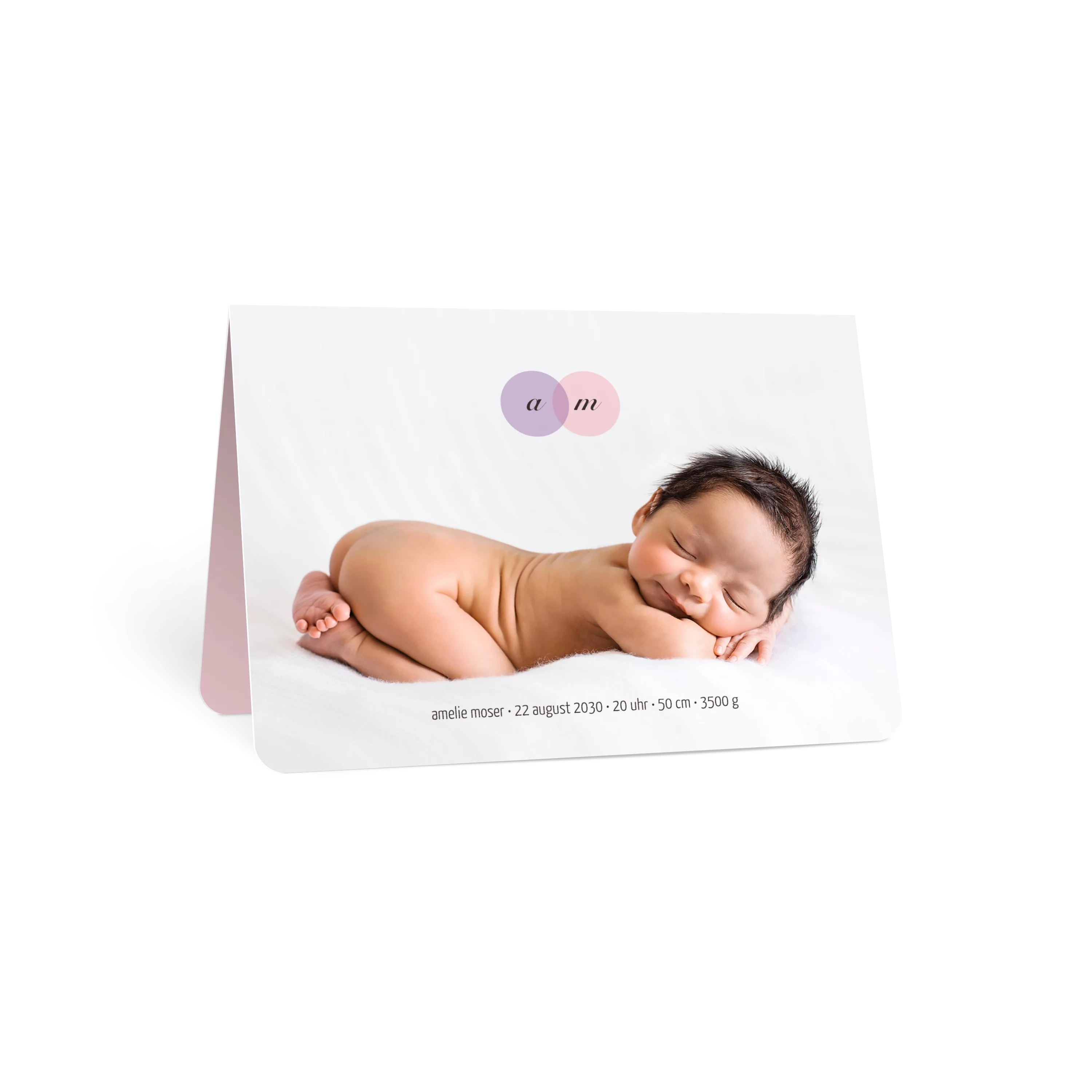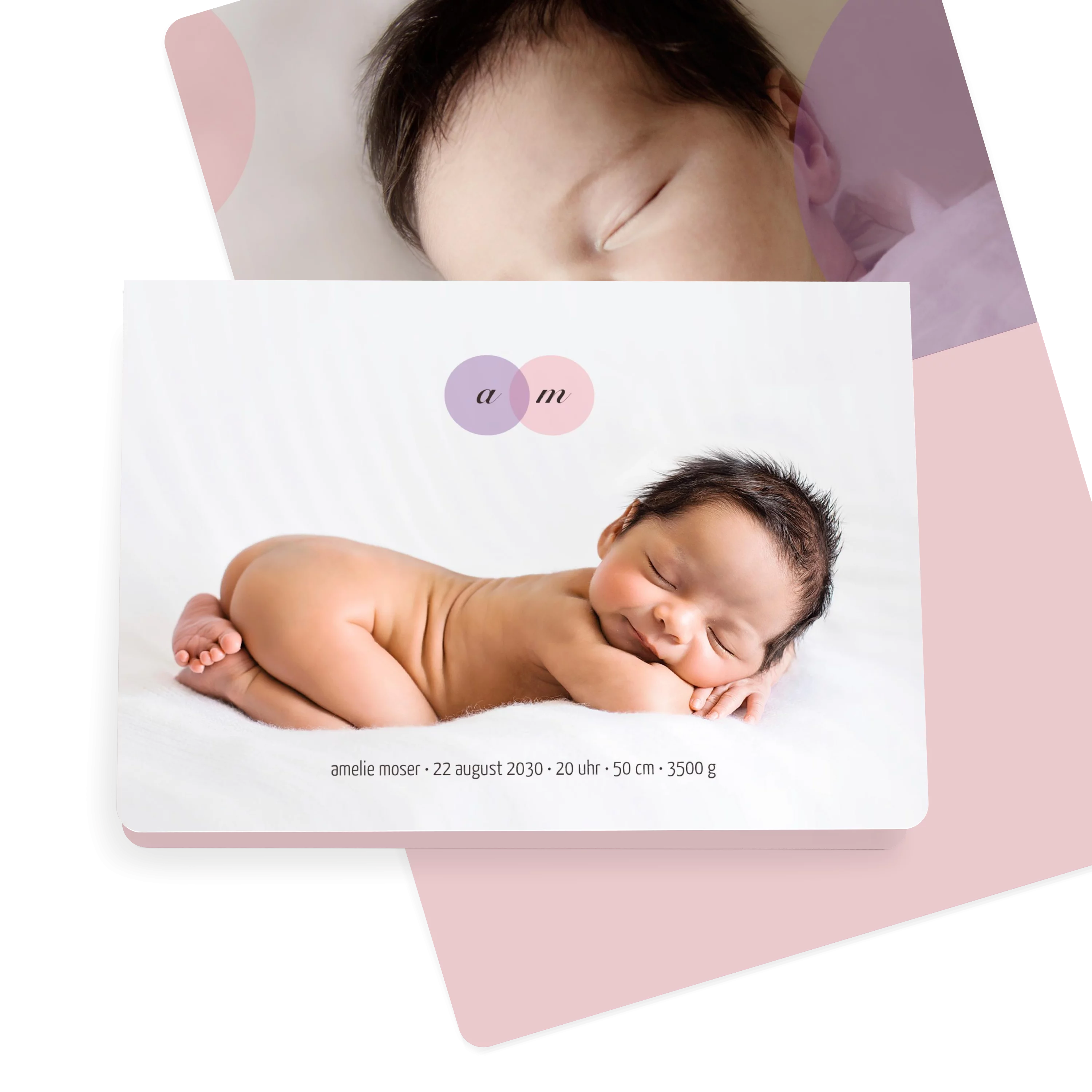 Diese Geburtskarte überzeugt mit minimalistischer Eleganz. Die Initialen als grafisches Element setzen einen sanften Akzent, das großformatige Foto steht klar im Mittelpunkt. Ideal für alle, die ihre Freude schlicht, aber ausdrucksstark teilen möchten.