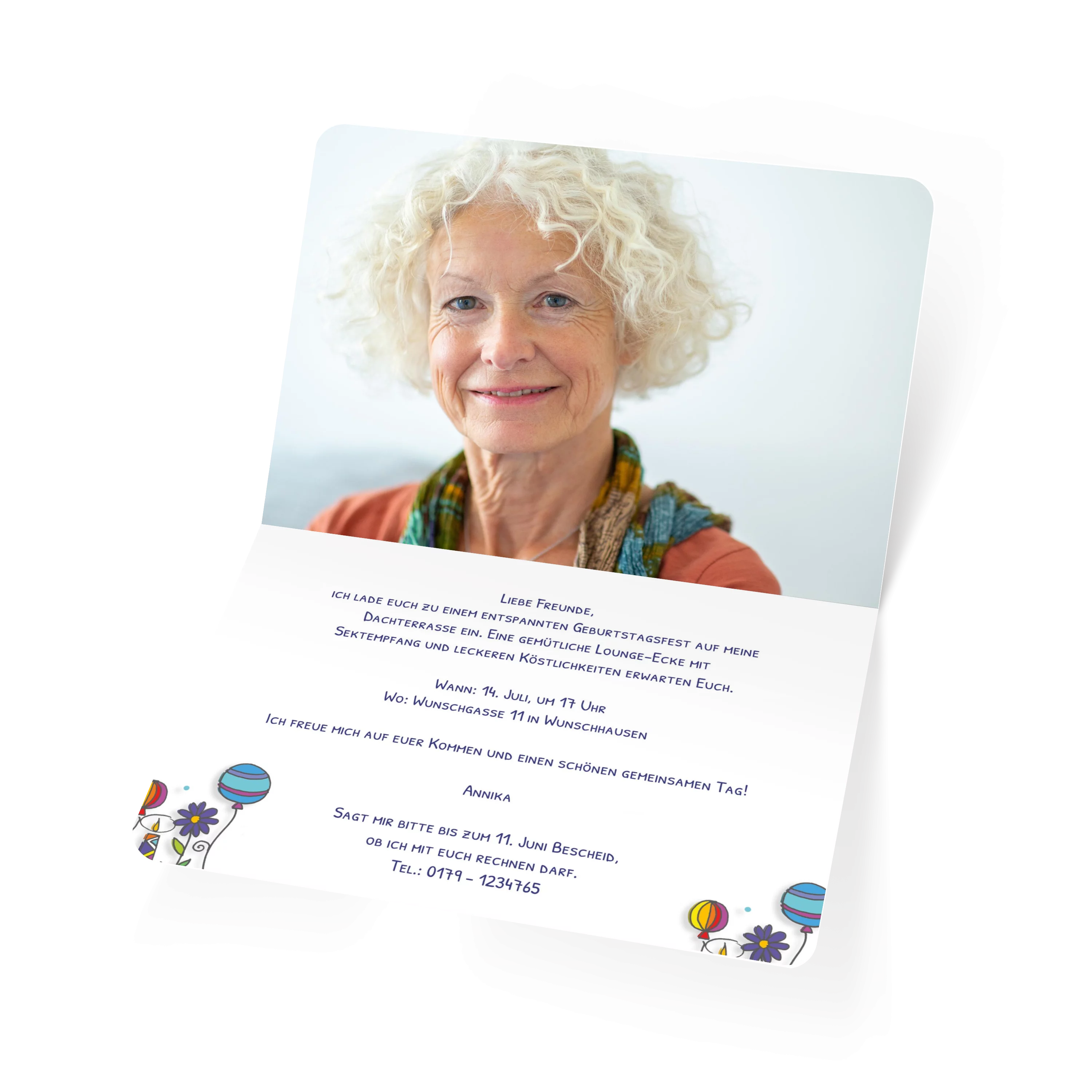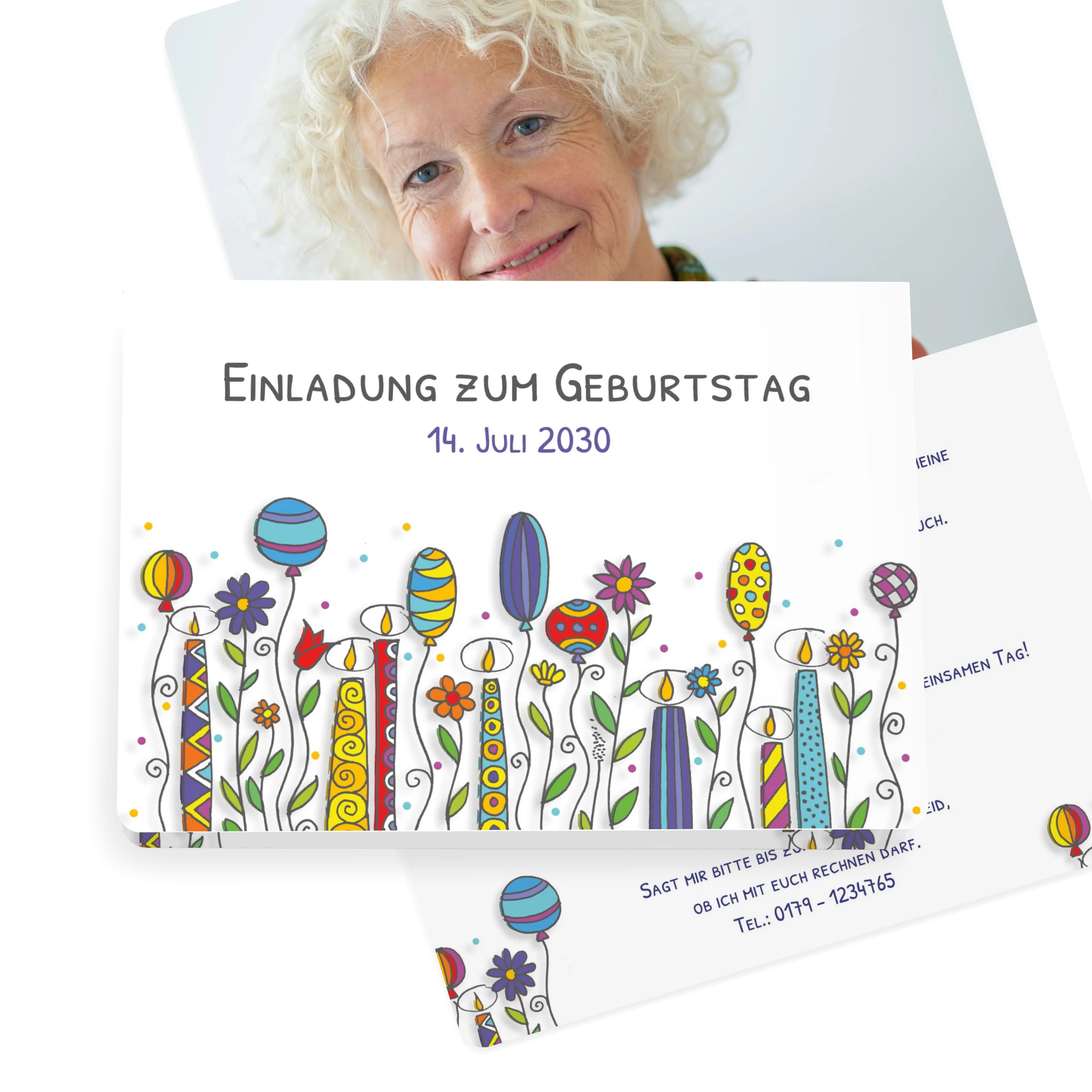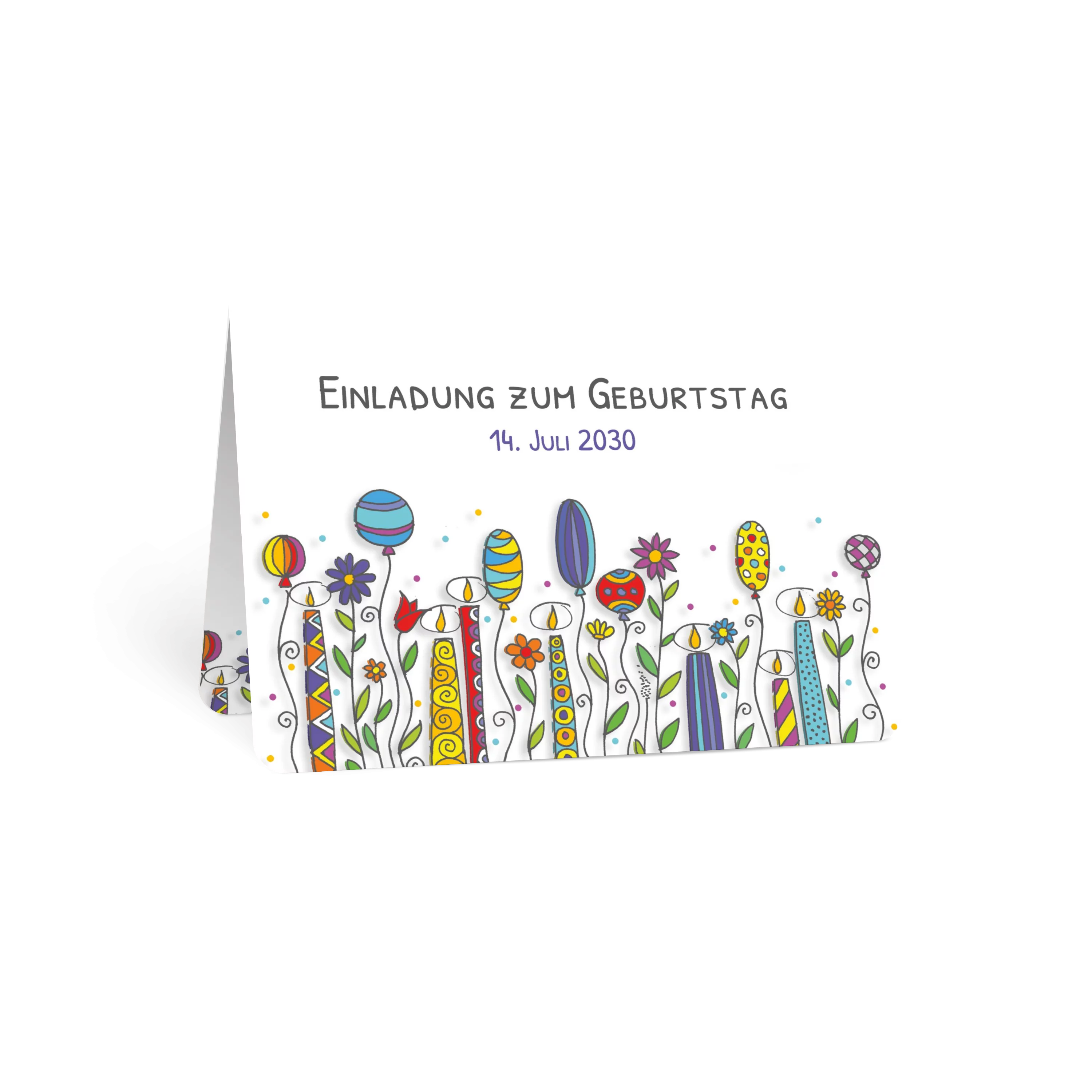 Mit diesen fröhlich gemusterten Blumen kann der Geburtstag nur gut werden. Eine Einladung wie ein Konfettiregen: verspielt, lebendig und voller Vorfreude.
