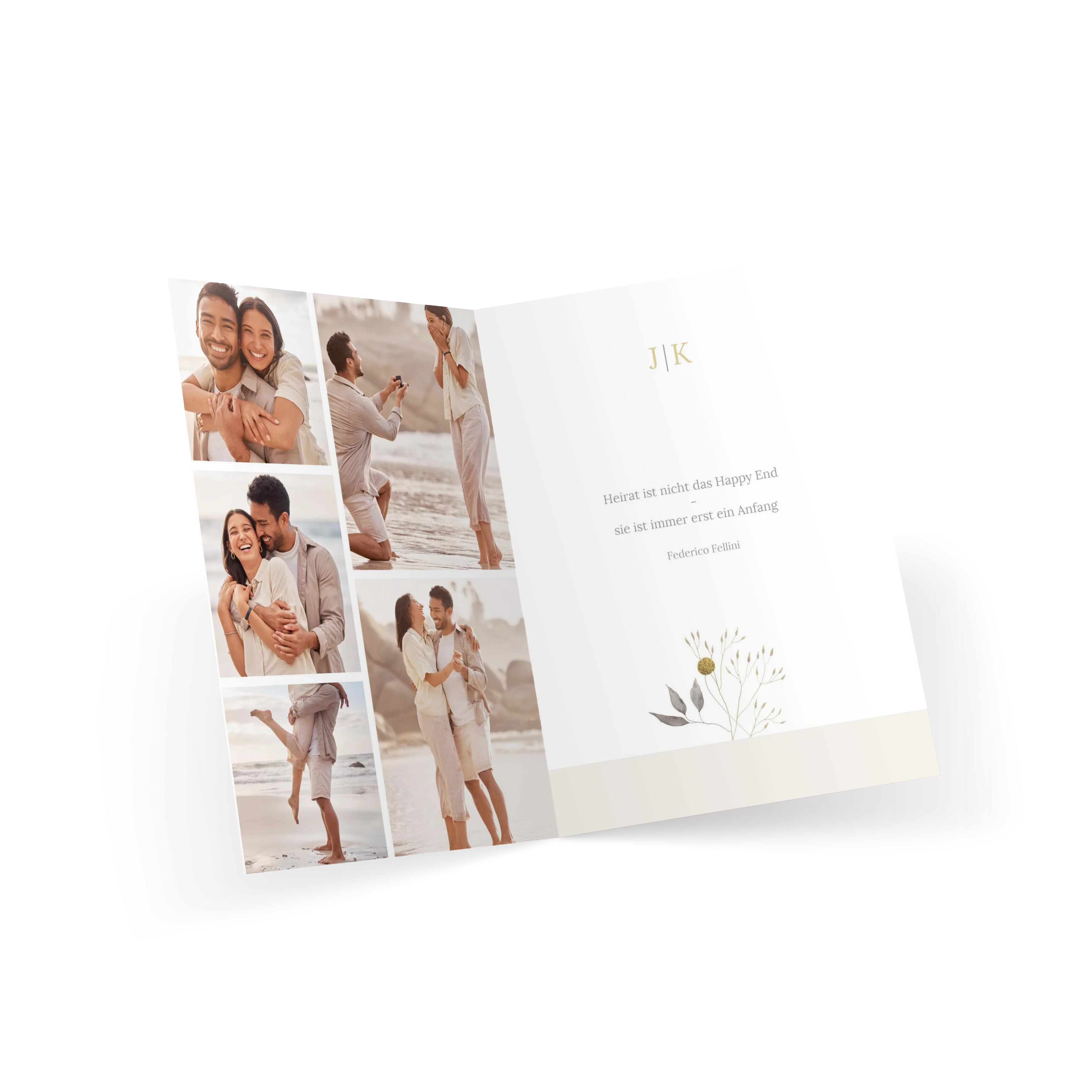 Die Save-the-Date-Karte „Boho Romance“ verbindet zarte Trockenblumen-Illustrationen mit einem klaren Layout in Naturtönen. Ein wunderschöner erster Gruß, der Ihr Hochzeitsdatum auf liebevolle Weise ankündigt. Mit ihrer zurückhaltenden Gestaltung im Boho-Stil ist sie der perfekte Auftakt für ein Fest voller Liebe, Leichtigkeit und Vorfreude.
