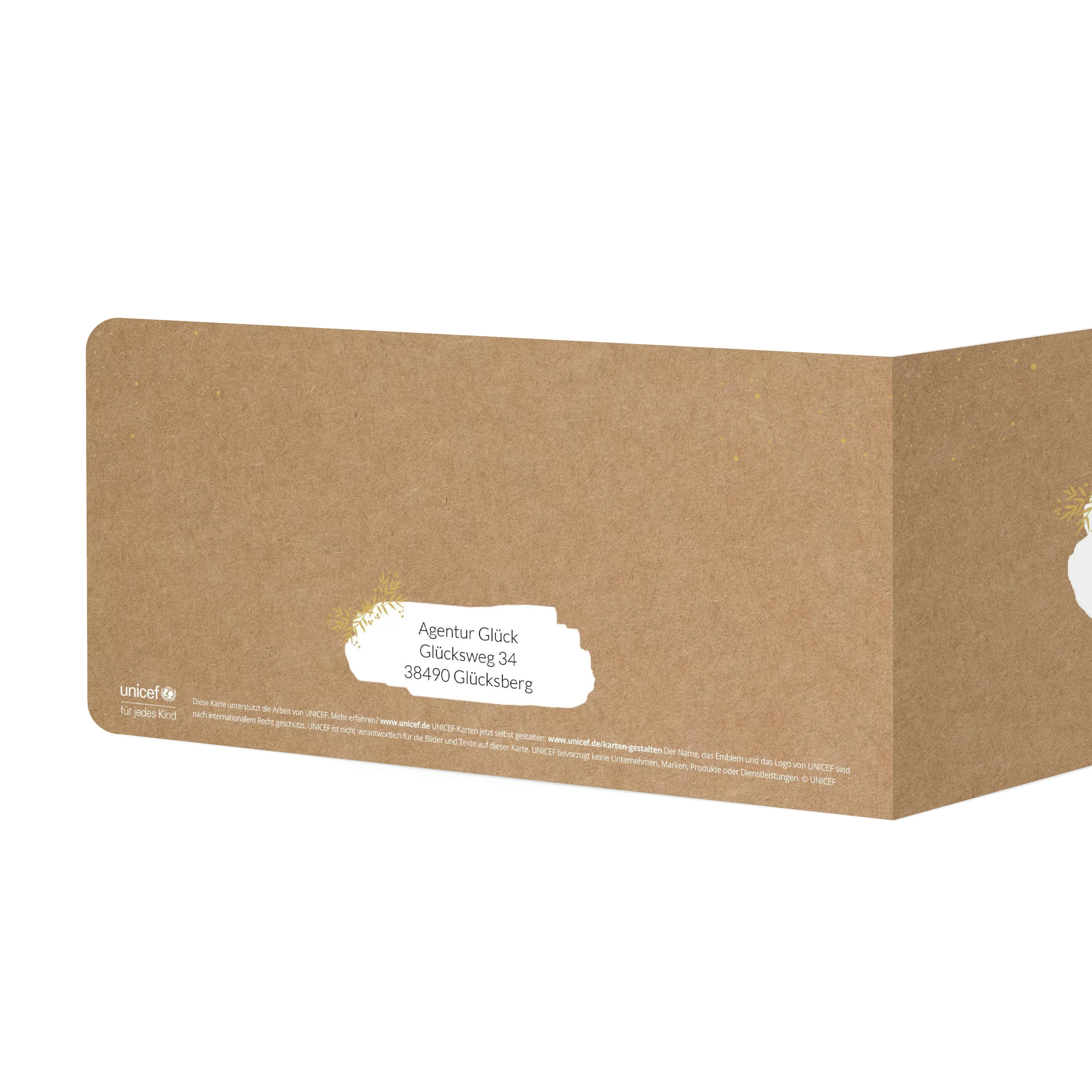 Wir nutzen Papier aus nachhaltiger Forstwirtschaft und eine plastikfreie Verpackung. Mit dem Kauf von UNICEF Weihnachtskarten helfen Sie Kindern in Not.