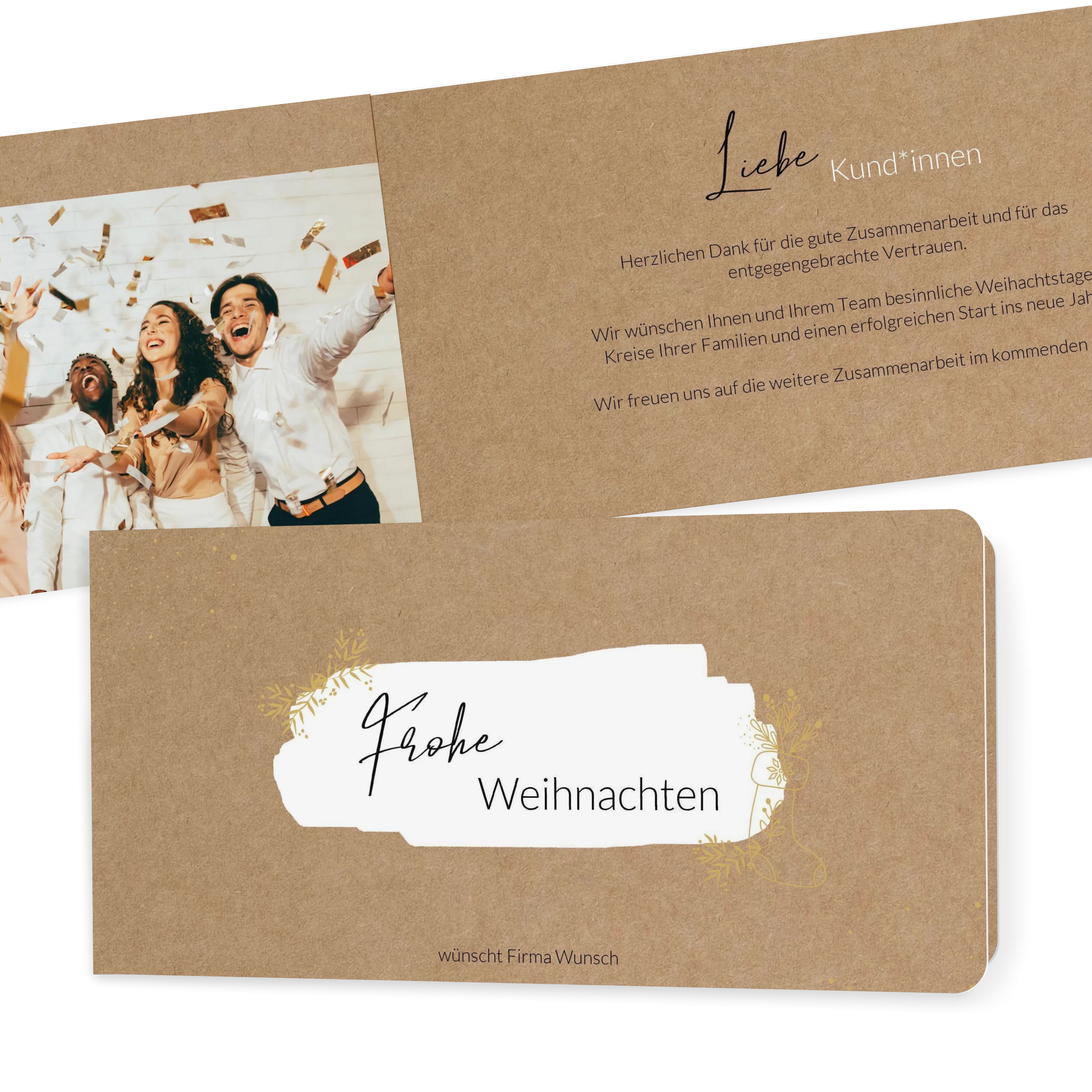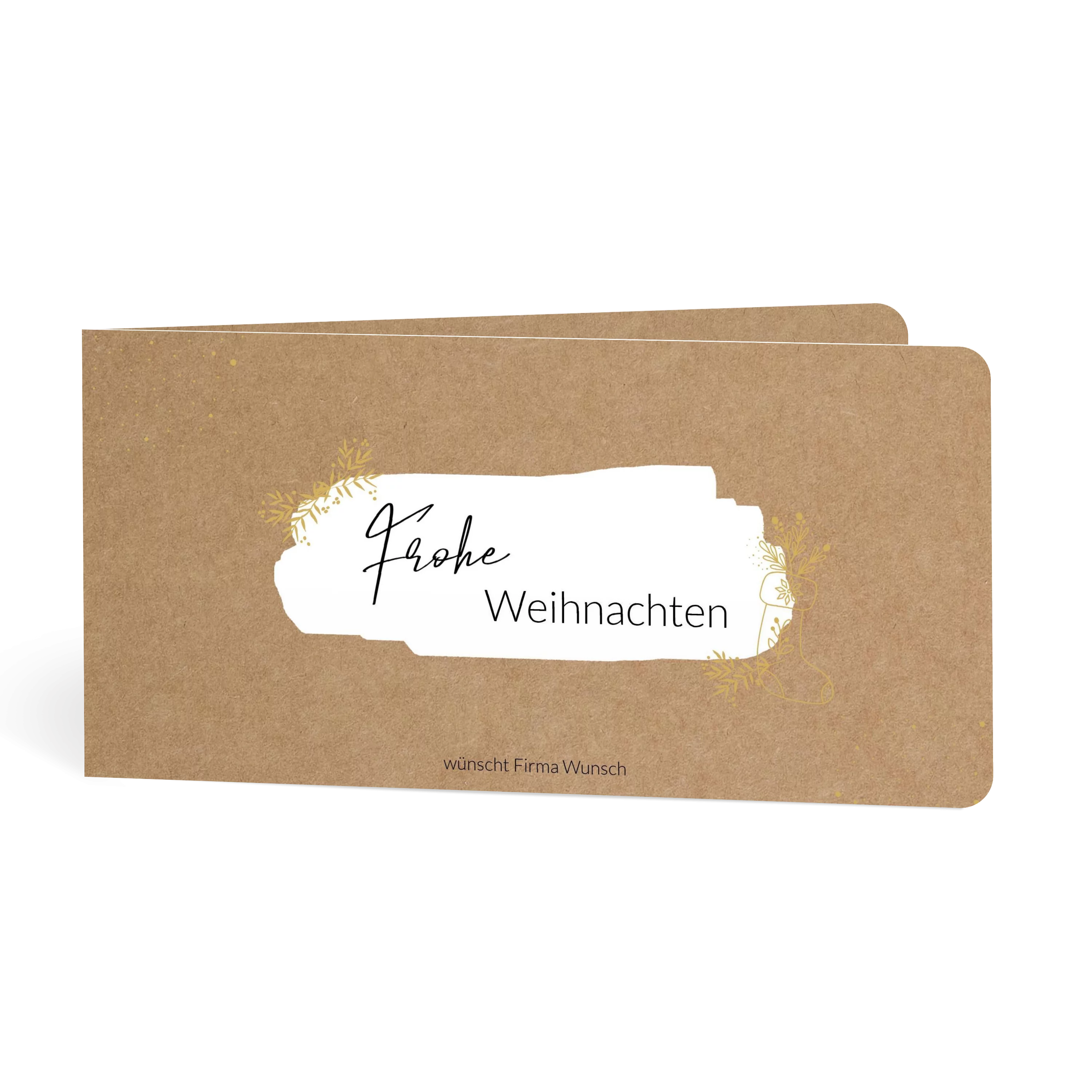 Mit dem Motiv „Brush“ jetzt Firmenweihnachtskarten online gestalten! Ein weihnachtlich verzierter Pinselstrich untermalt die eleganten Weihnachtswünsche ideal. Weihnachtskarten für Geschäftspartner im Format 21 x 10,5 cm, erhältlich als flache Karte oder Klappkarte. Geschäftliche Weihnachtskarten gestalten mit Fotos im Innenteil und persönlichem Text.