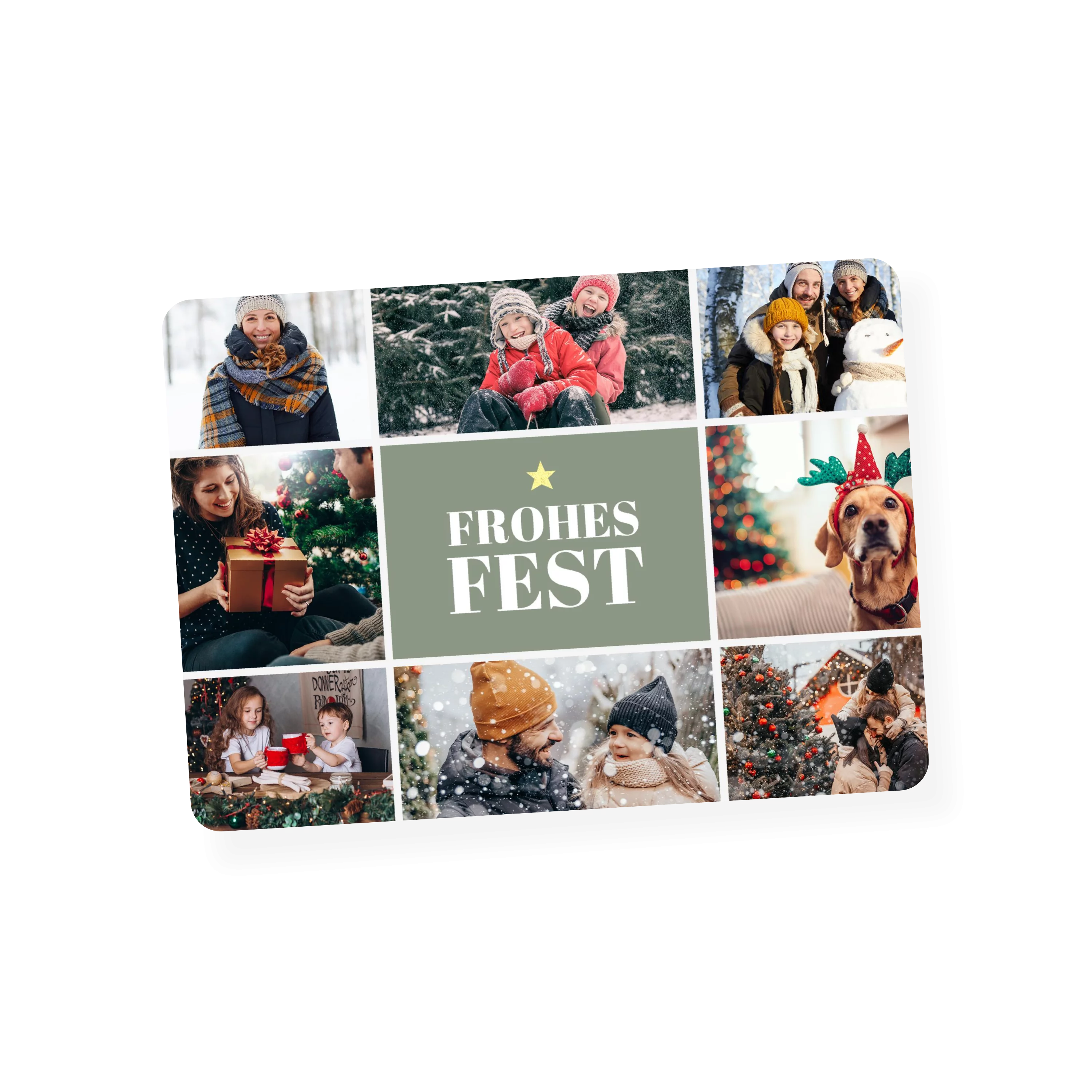 Weihnachtskarten gestalten mit dem Motiv „Christmas Time Collage“. Diese Collagekarte lässt Raum für viele persönliche Lieblingsmomente. Weihnachtskarte mit Foto im Format 16,6 x 11,8 cm, auch erhältlich als flache Karte. Gestalten Sie Ihre Karten zu Weihnachten mit eigenen Fotos und persönlichem Text. Wir nutzen Papier aus nachhaltiger Forstwirtschaft und eine plastikfreie Verpackung. Mit dem Kauf von UNICEF Weihnachtskarten helfen Sie Kindern in Not. Jetzt Weihnachtskarten bestellen!