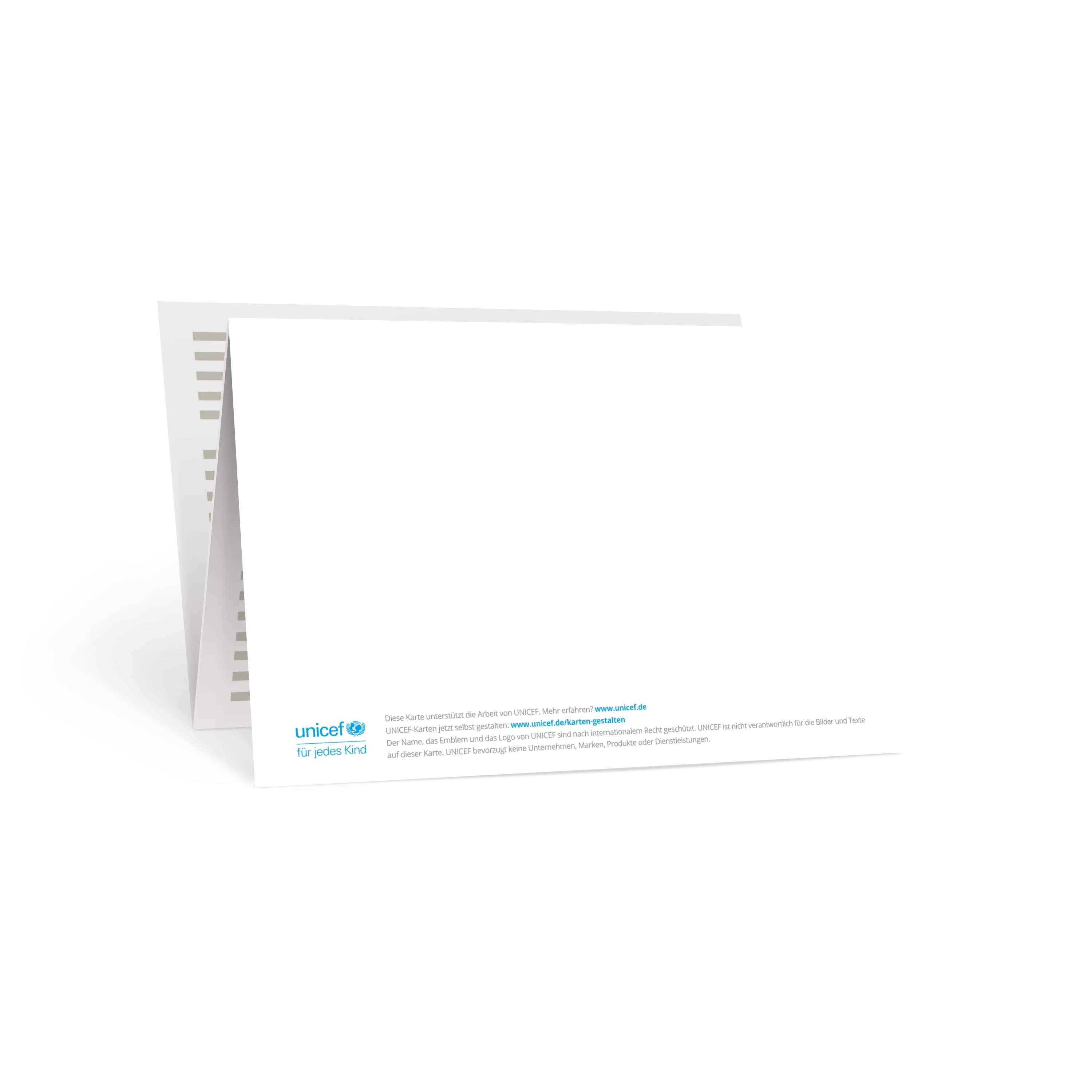 Alle UNICEF-Karten werden unter Einhaltung strenger internationaler Richtlinien hinsichtlich Qualität, Sicherheit, sozialer Verantwortung und Umweltschutz hergestellt. Denn UNICEF ist den Kindern und ihren Familien verpflichtet.