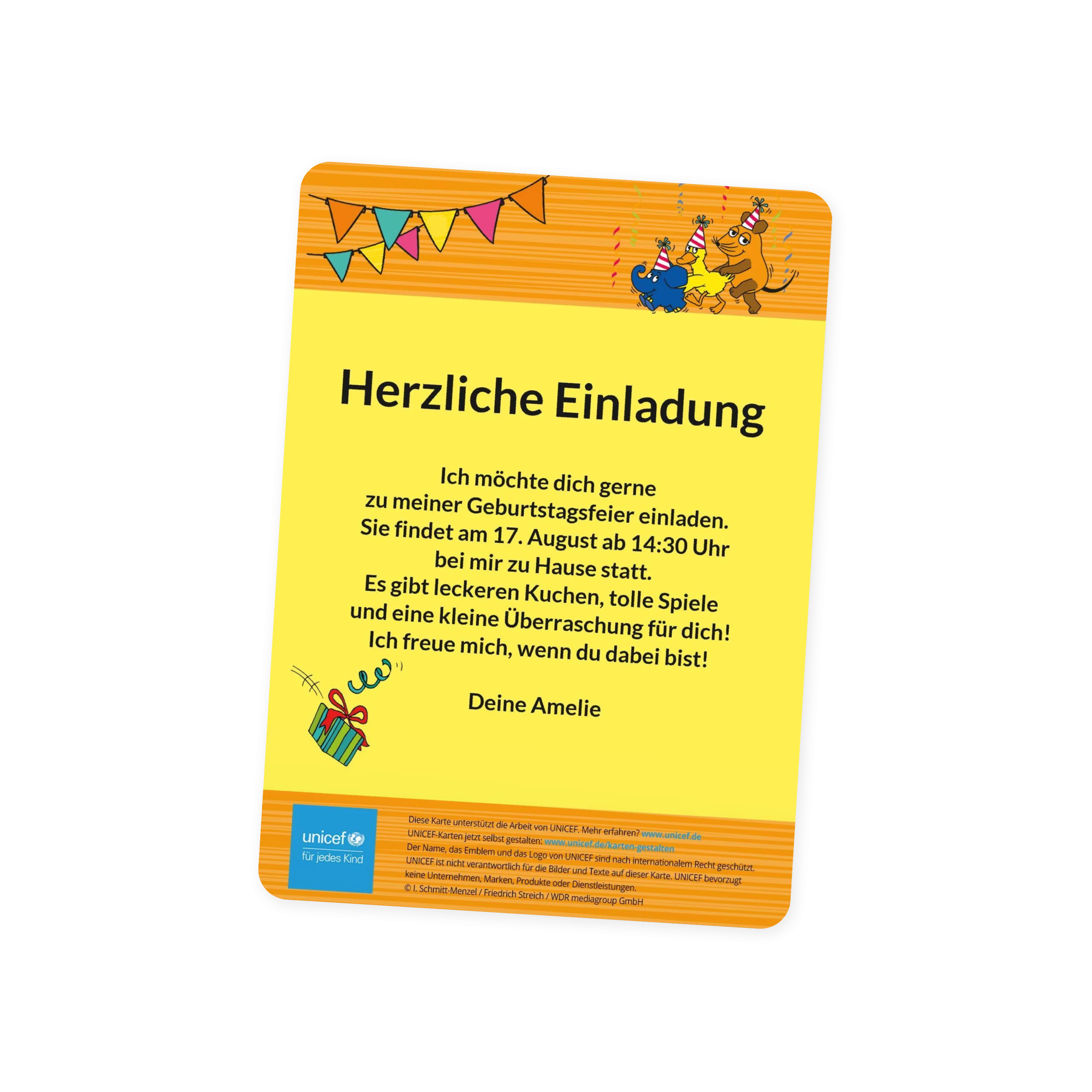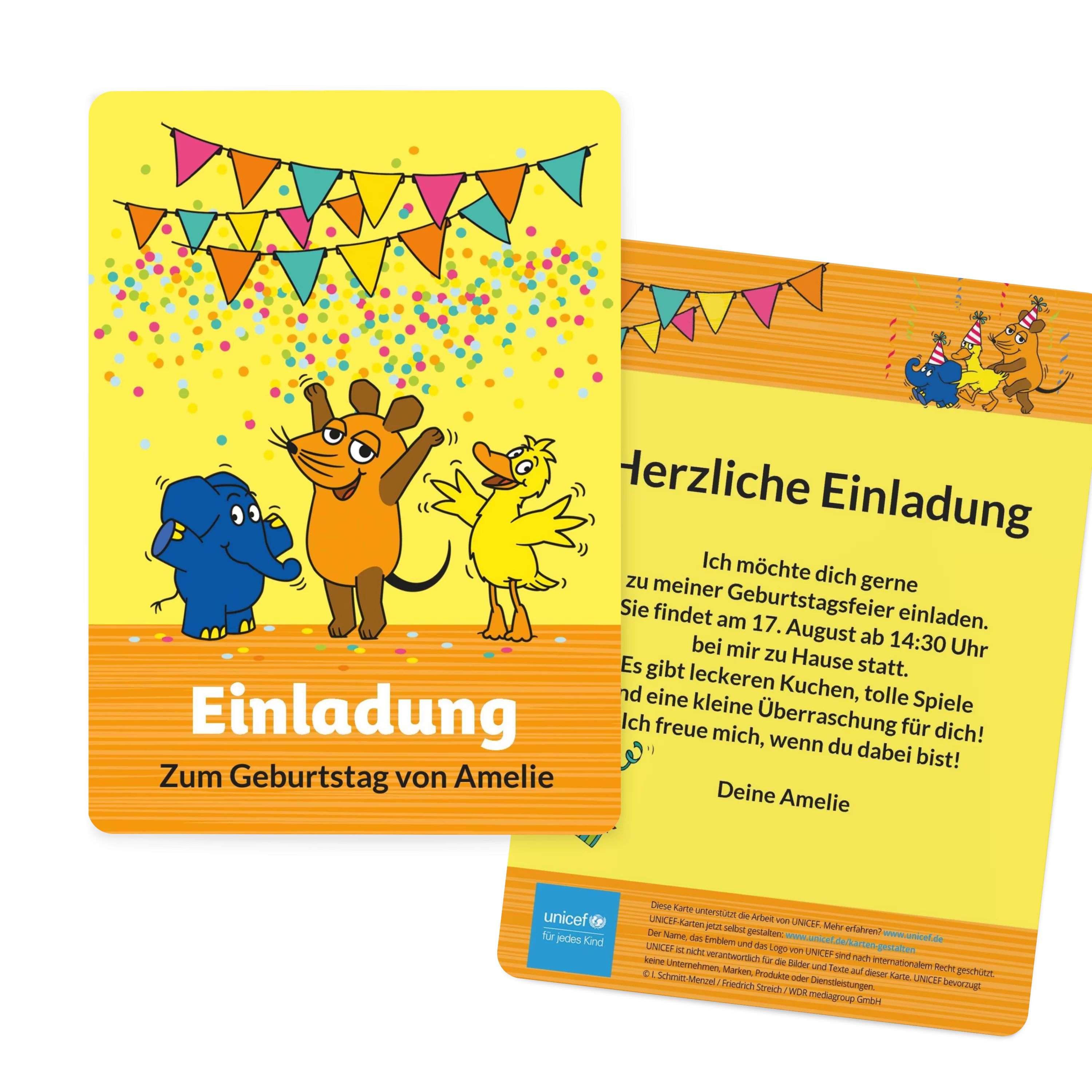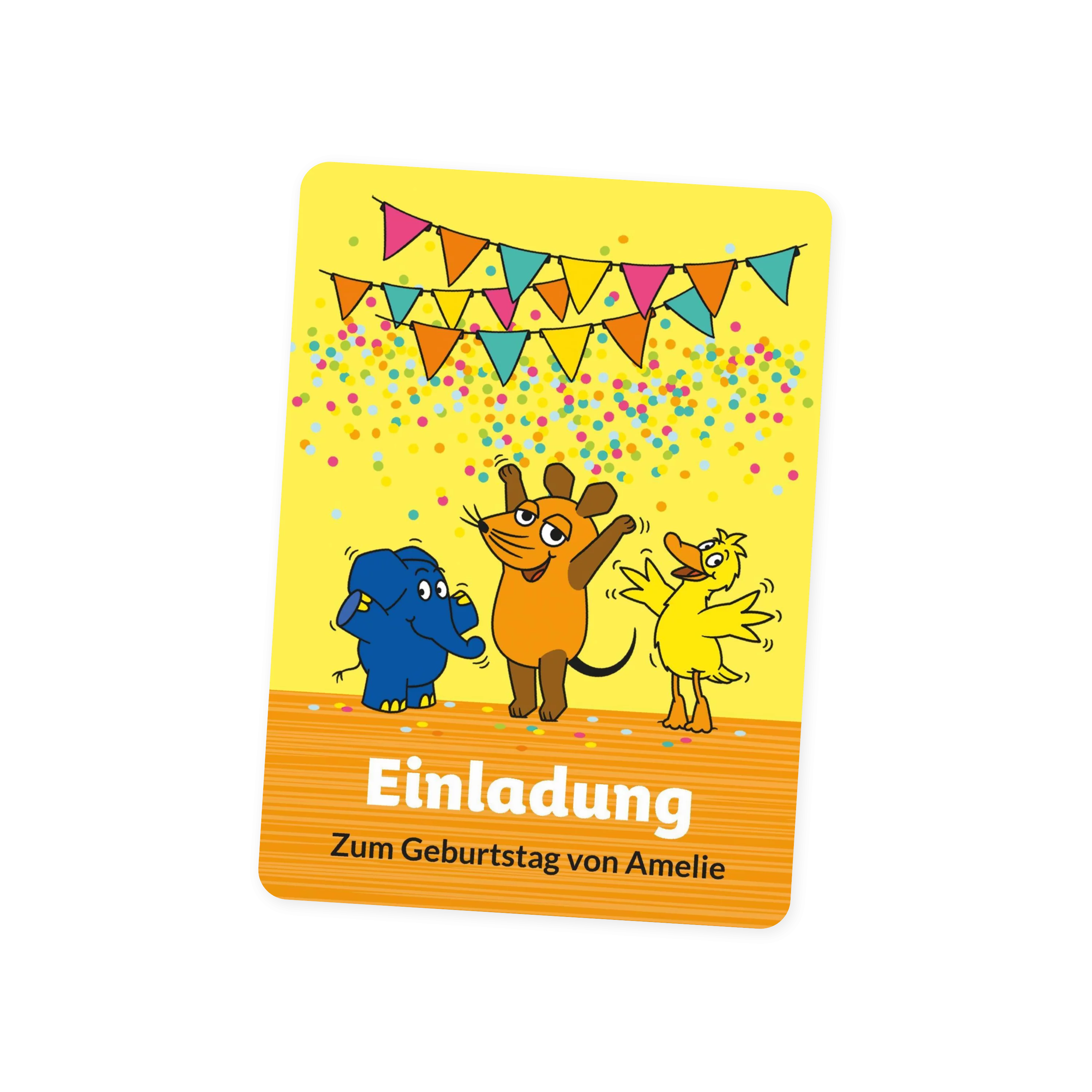 Bunte Wimpel, fröhliches Konfetti und beste Laune: Diese Einladung bringt sofort Geburtstagsstimmung ins Haus. Mit Maus, Elefant und Ente wird der große Tag garantiert ein voller Erfolg. Perfekt für kleine Fans und große Feste.