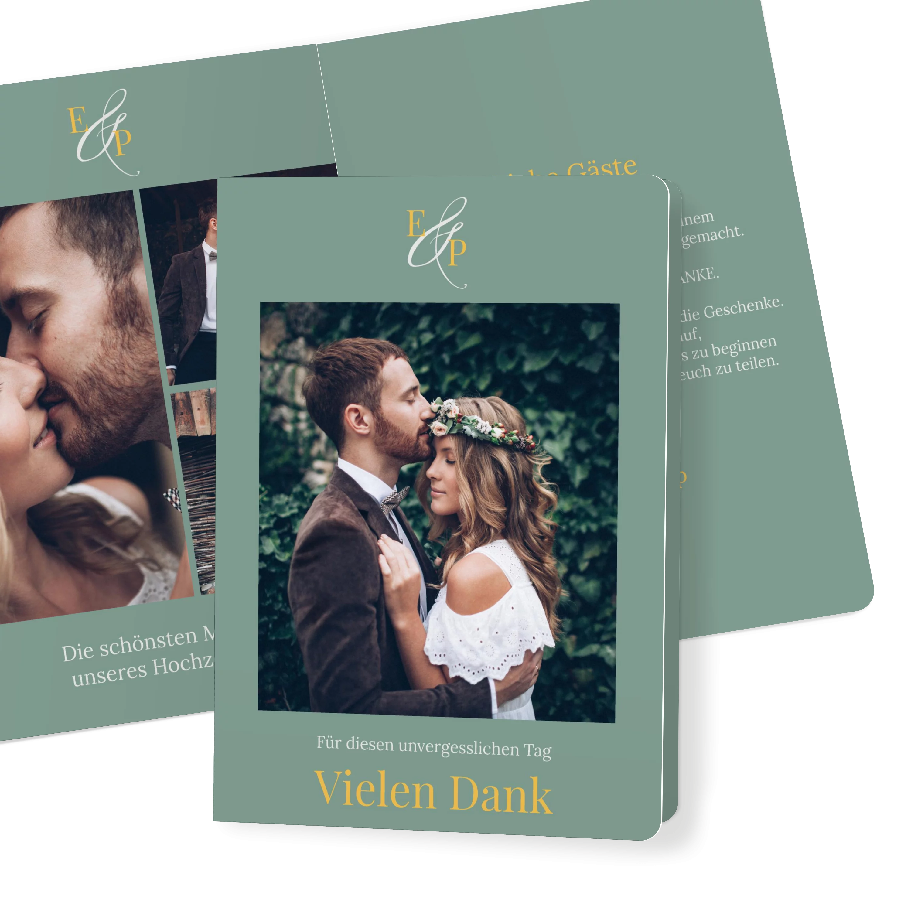 Mit ihrem natürlichen Creme-Ton und dem liebevoll gewählten Foto schafft diese Karte einen sanften Rahmen für Ihr Dankeschön. Ideal, um Ihren Liebsten für all die schönen Momente und herzlichen Gesten an Ihrem großen Tag zu danken – persönlich, authentisch und von Herzen.