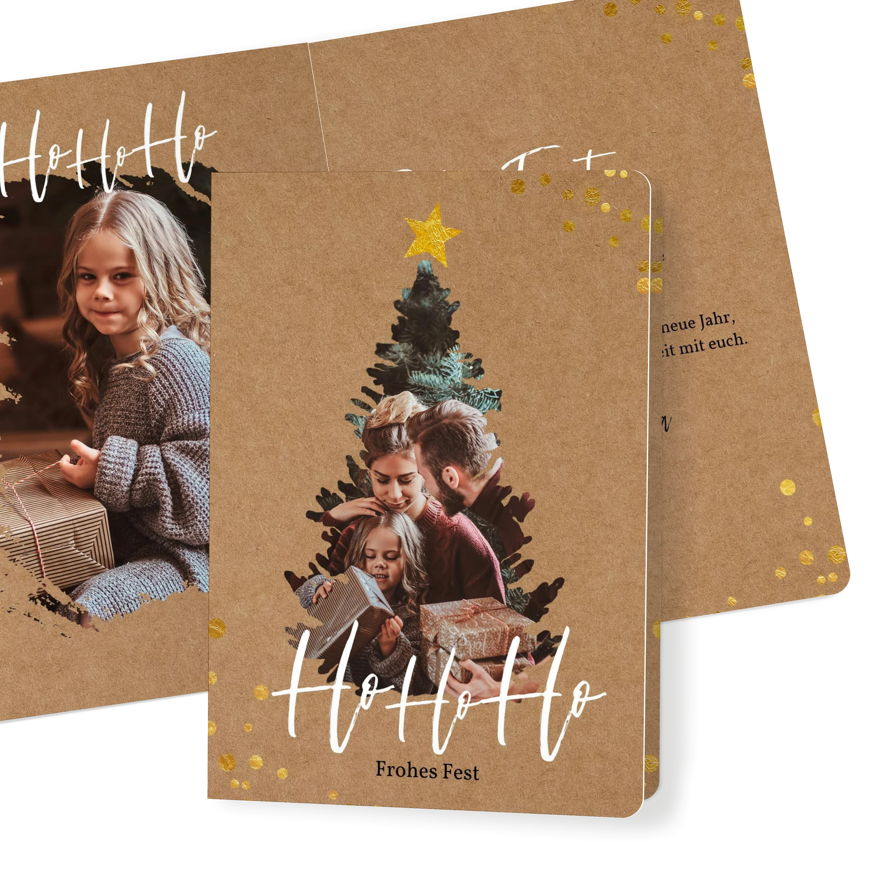1,10 €: Selbst gestaltete Klappkarte mit Hochglanz- oder mattem Lack sowie Doppelklappkarte mit Umschlag