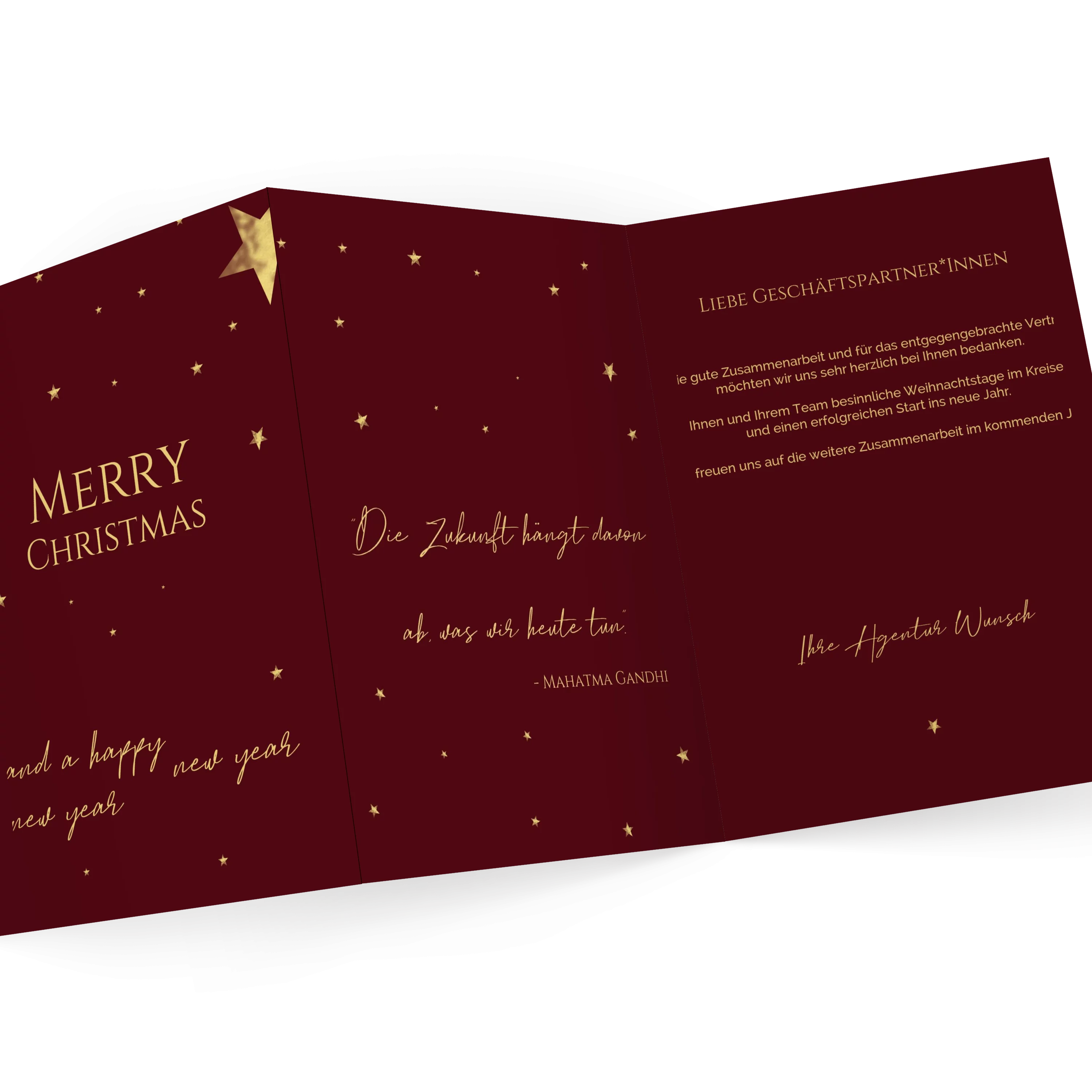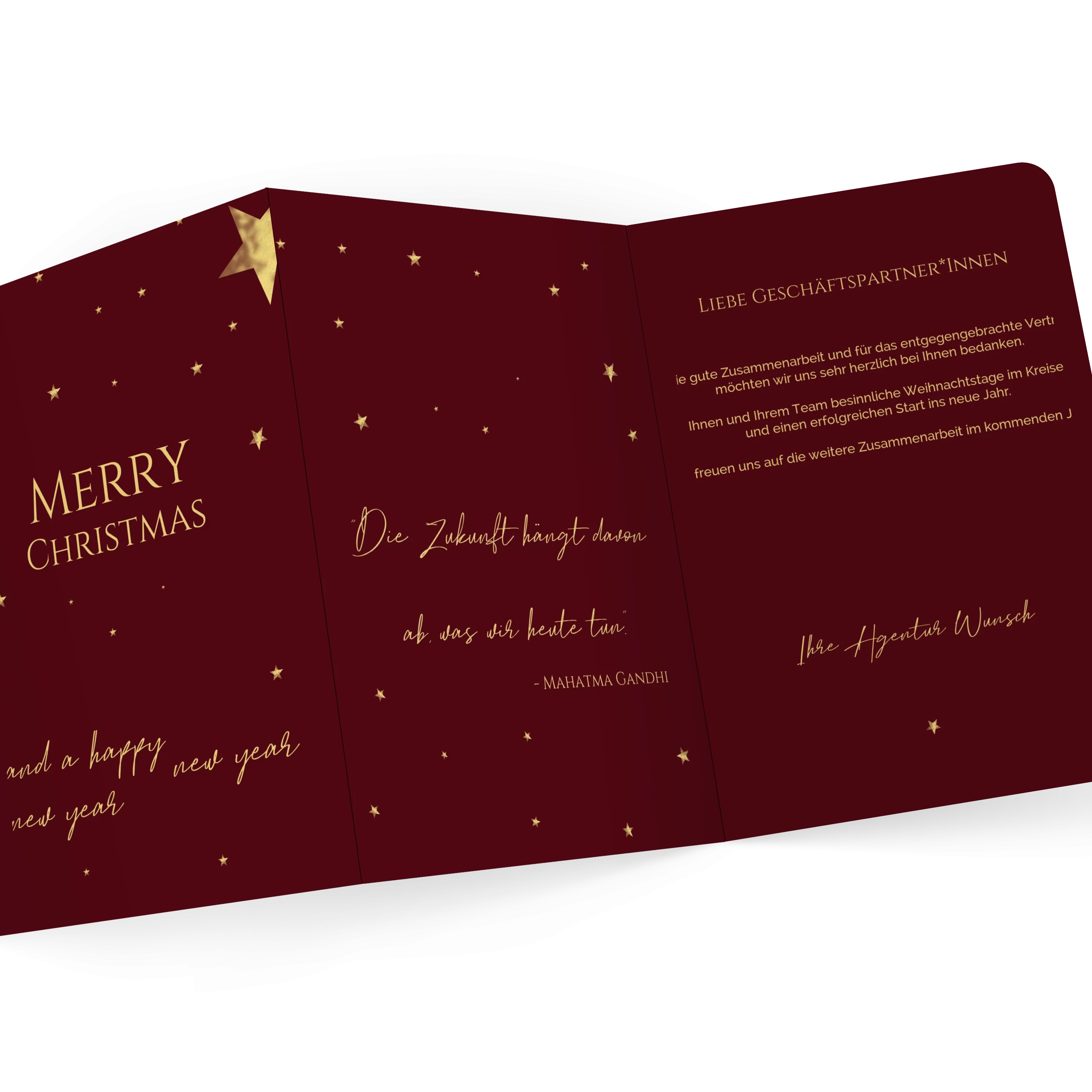 In vielen bunten Weihnachtsfarben glänzt der Weihnachtsgruß mit Sternen um die Wette. Leise klingt der Gruß aus