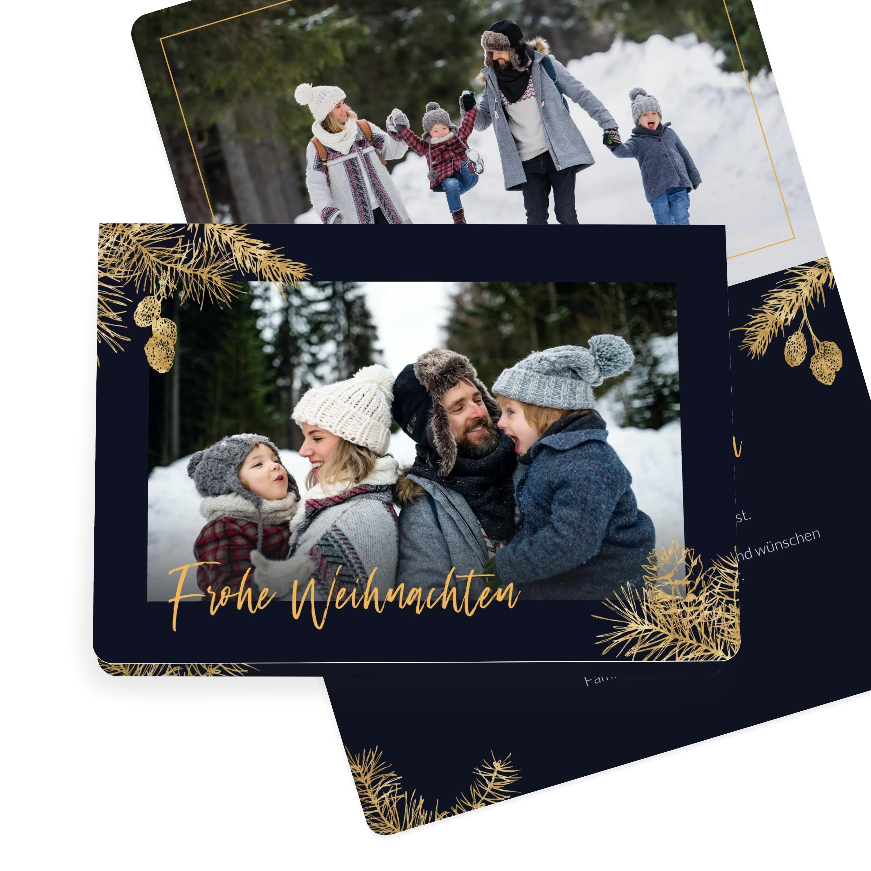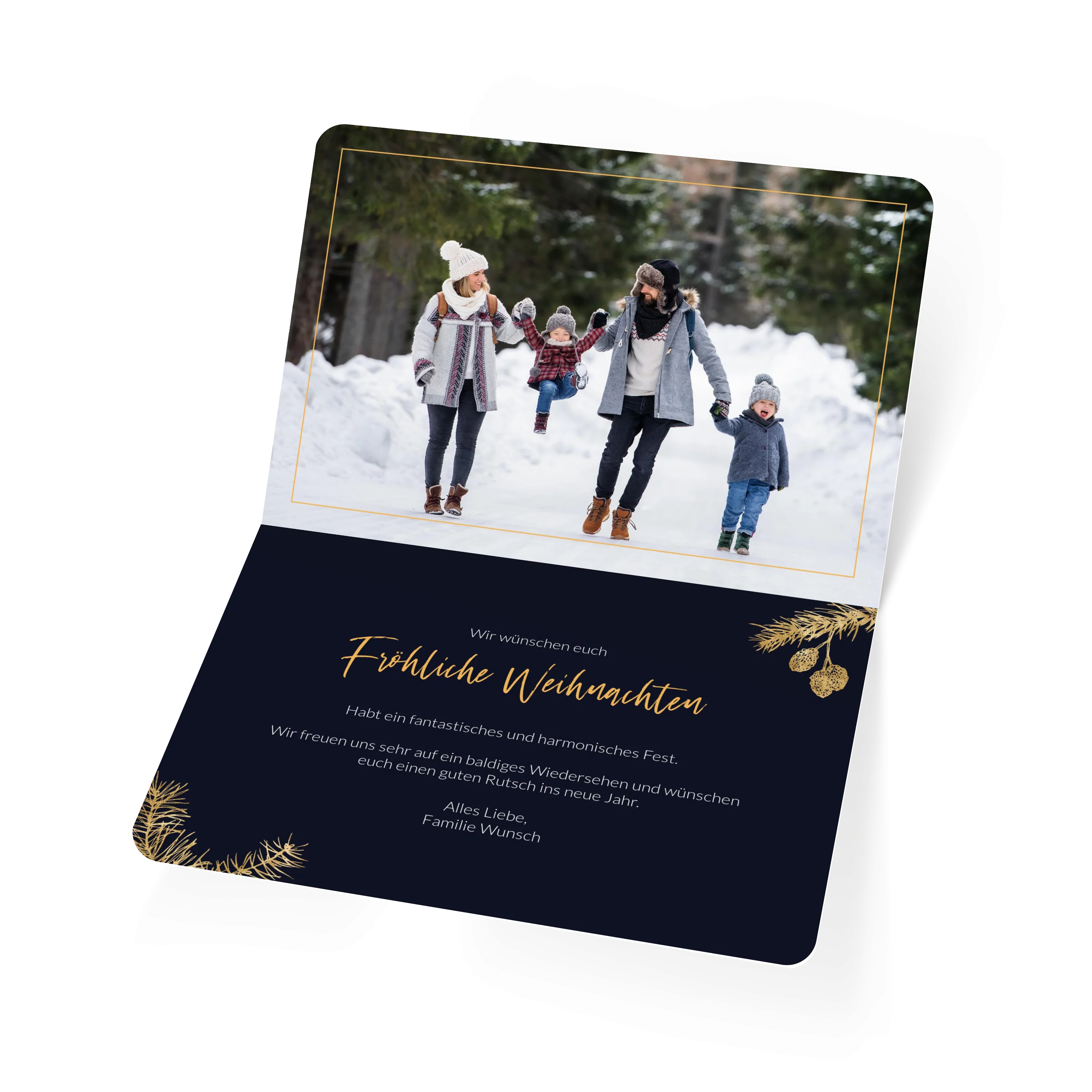 1,10 €: Selbst gestaltete Klappkarte mit Hochglanz- oder mattem Lack sowie Doppelklappkarte mit Umschlag