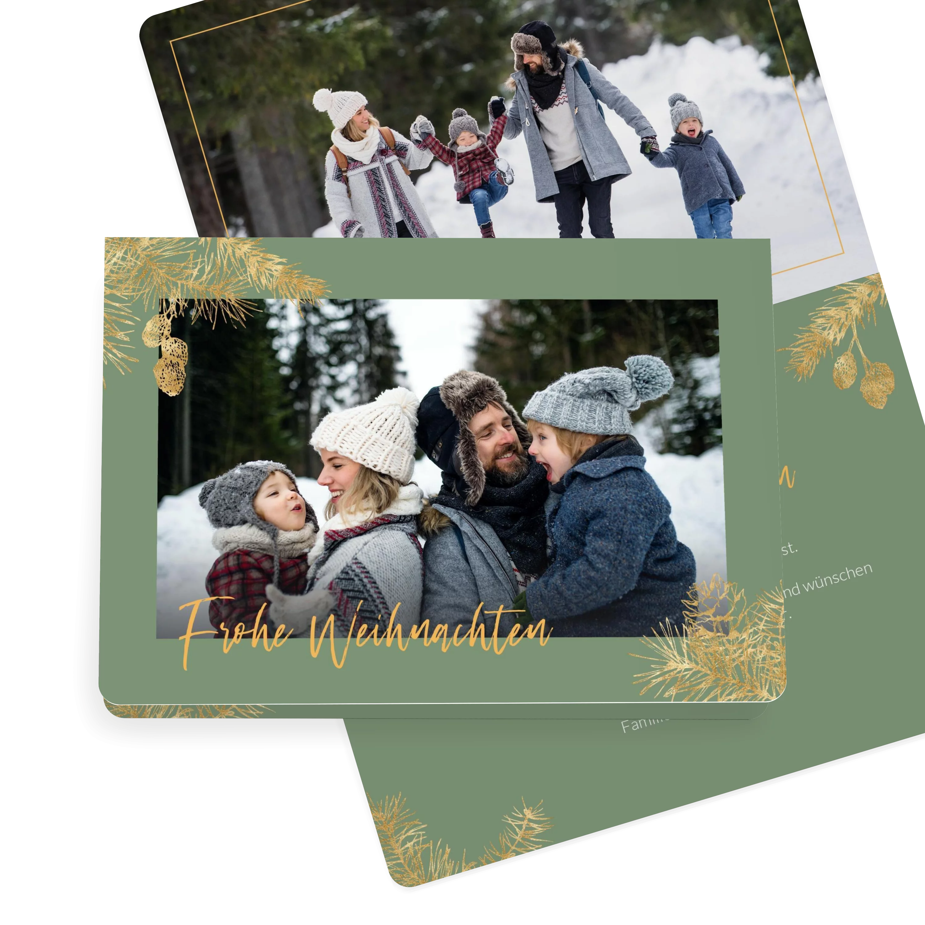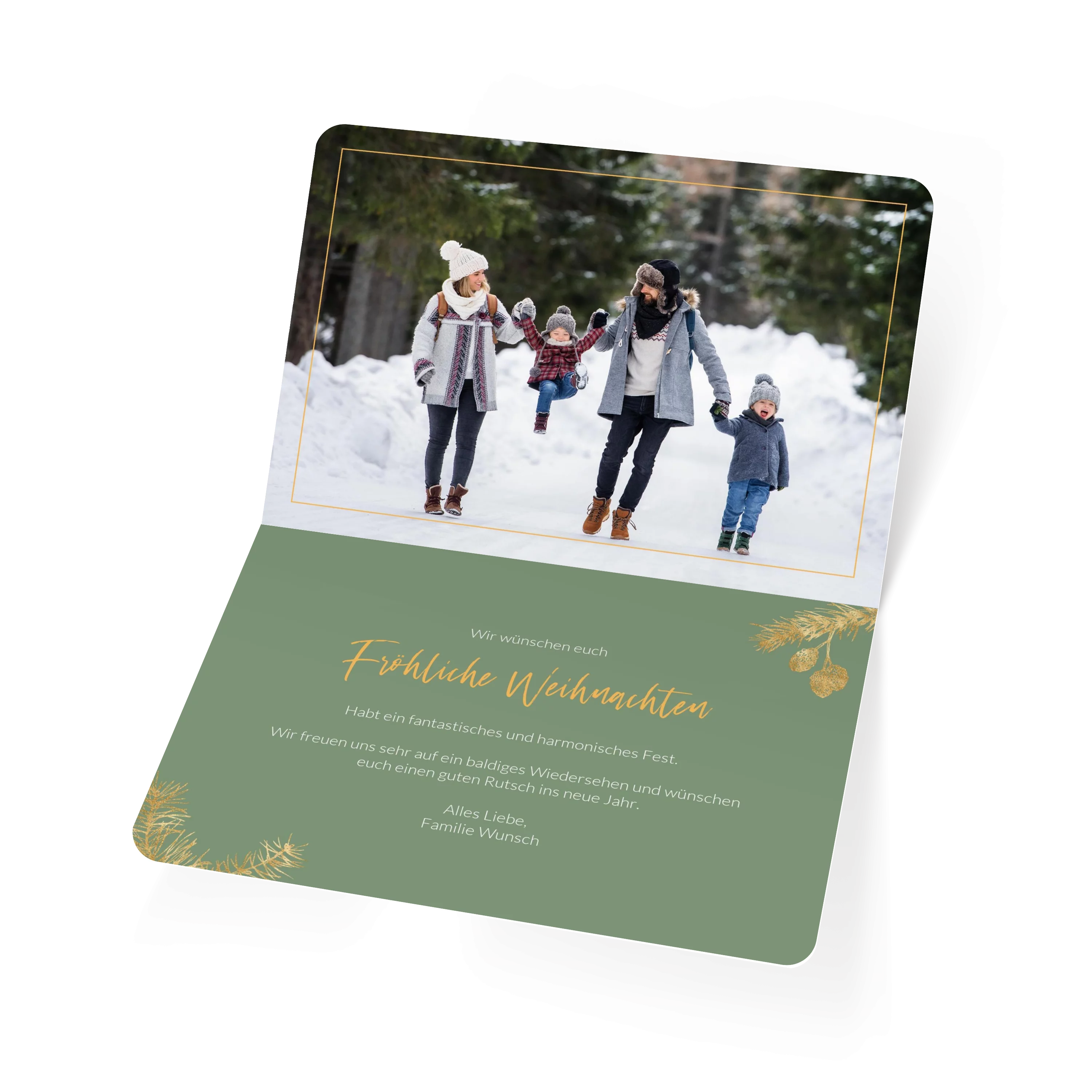 1,10 €: Selbst gestaltete Klappkarte mit Hochglanz- oder mattem Lack sowie Doppelklappkarte mit Umschlag