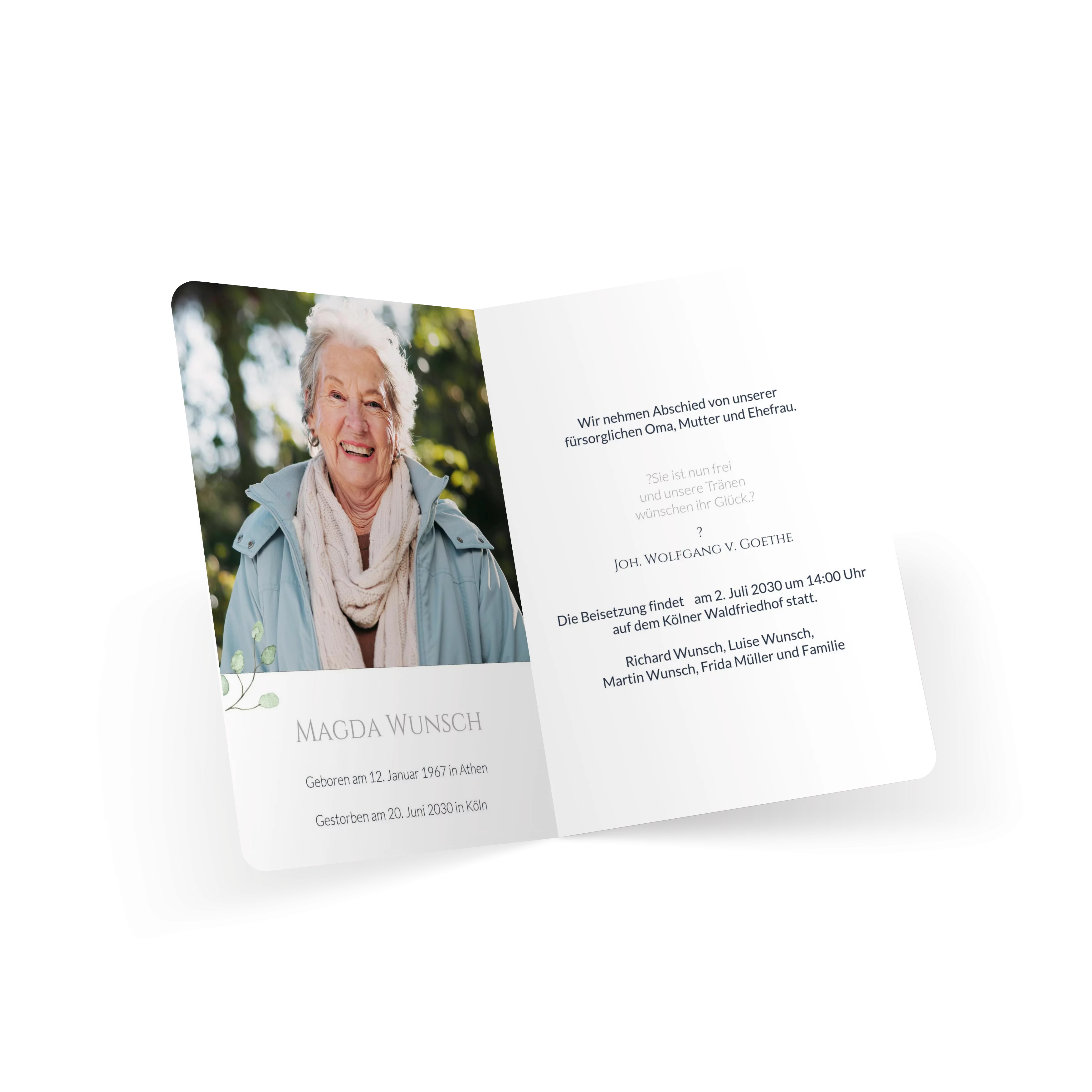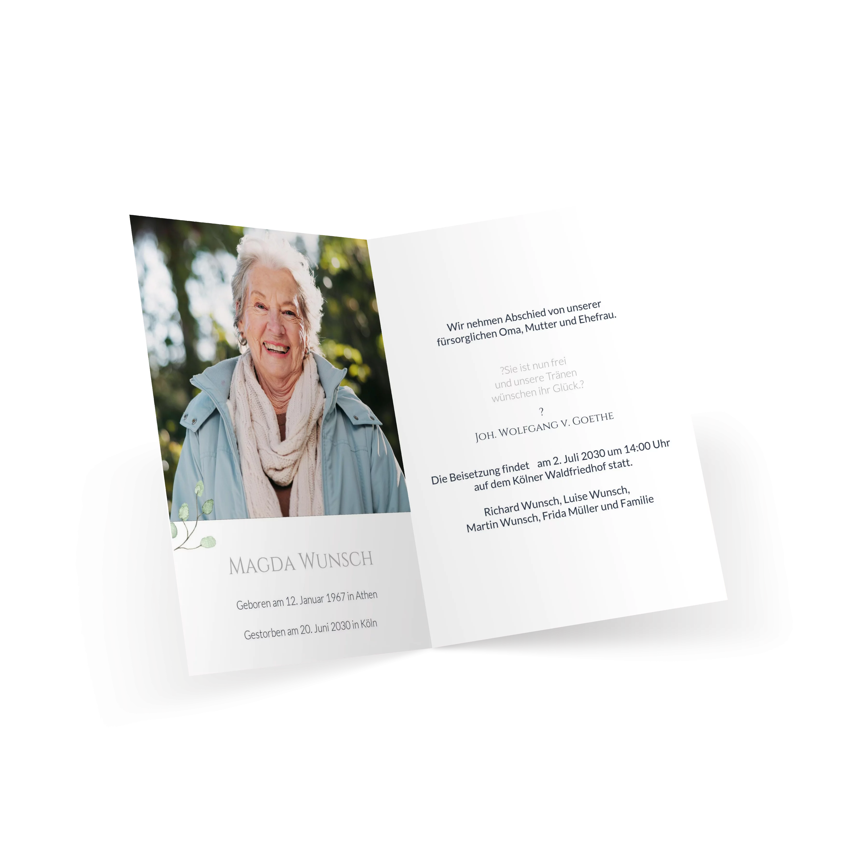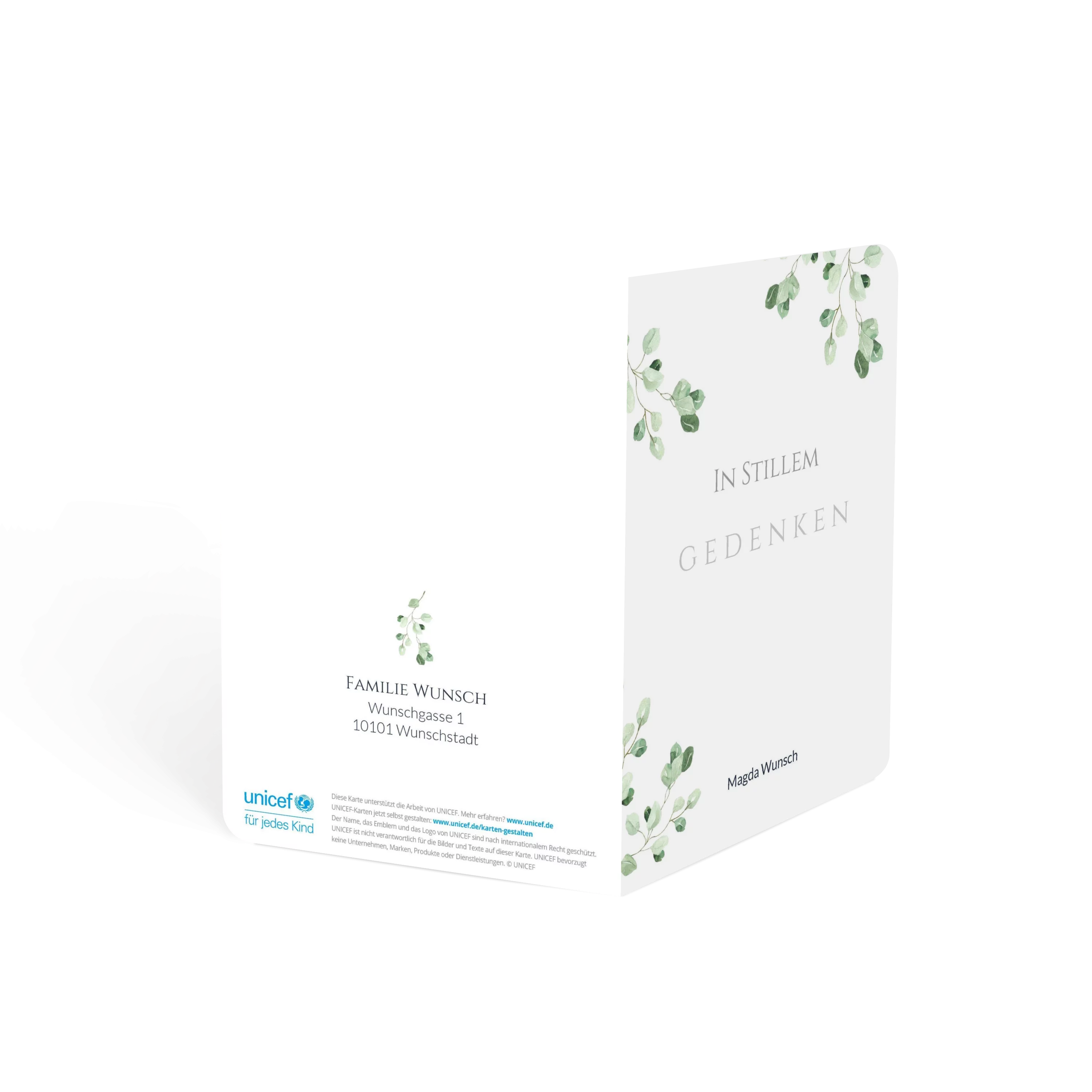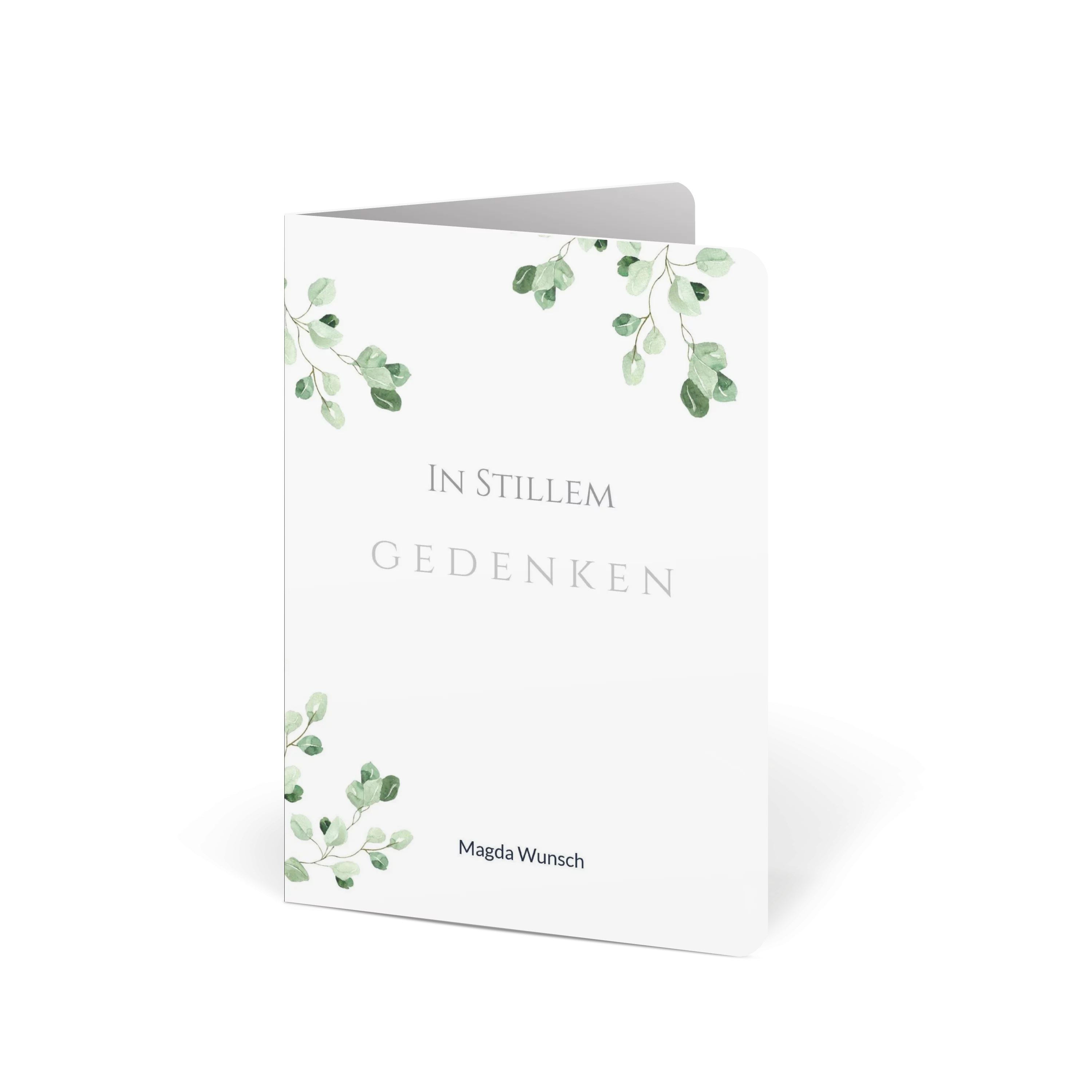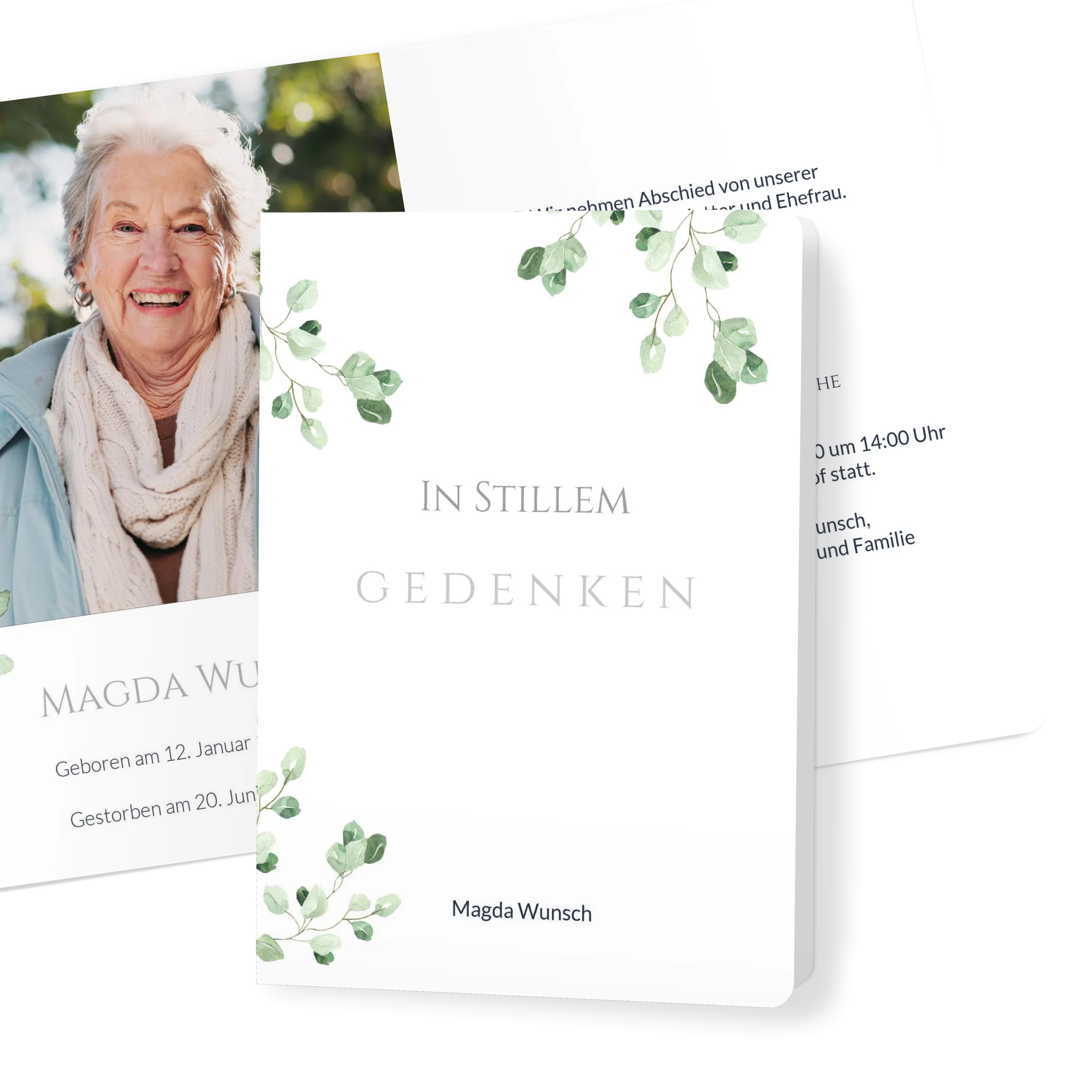 Einladung Trauerfeier „Grüne Blätter Wasserfarben“