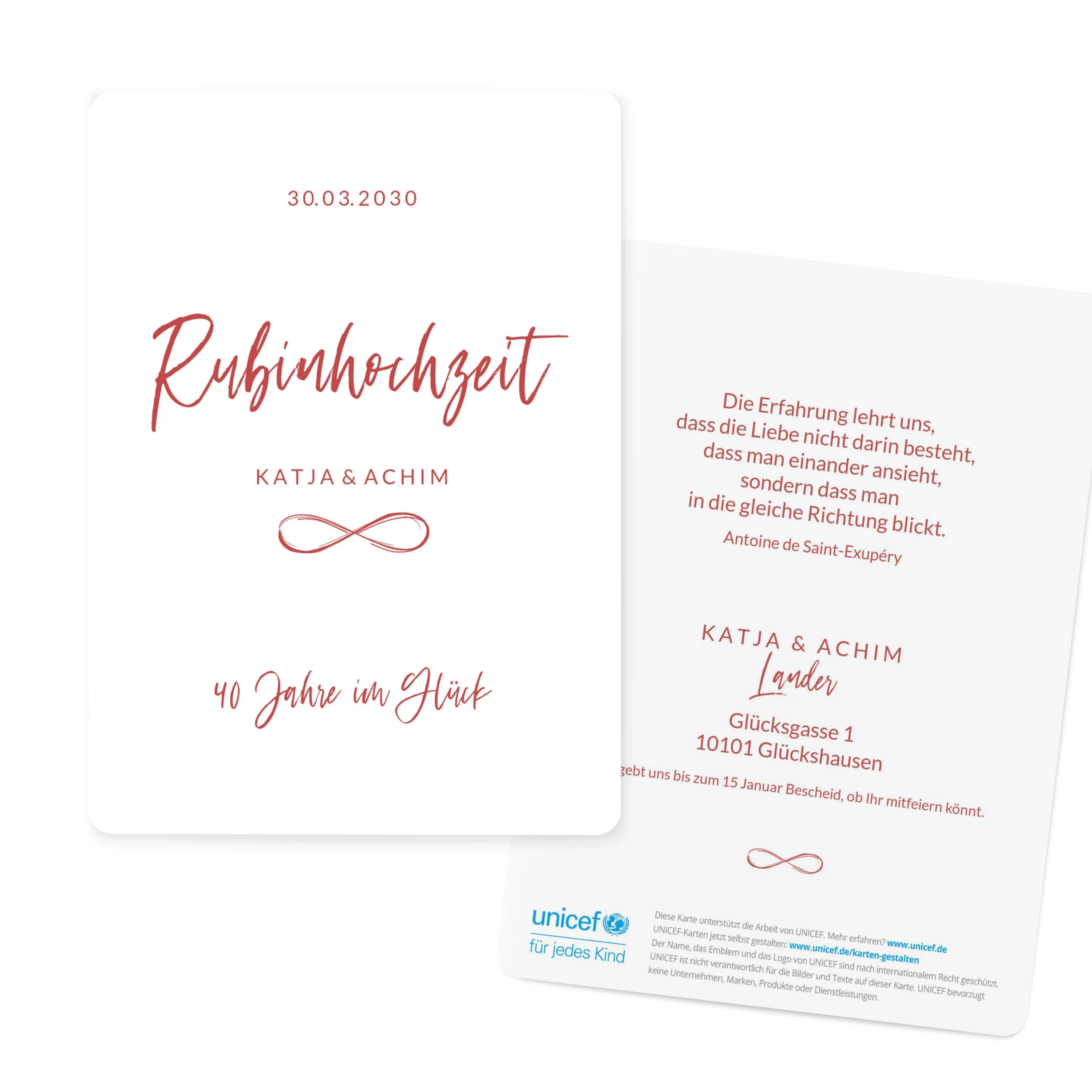 Einladungskarte Rubinhochzeit „Infinity Rubinhochzeit“