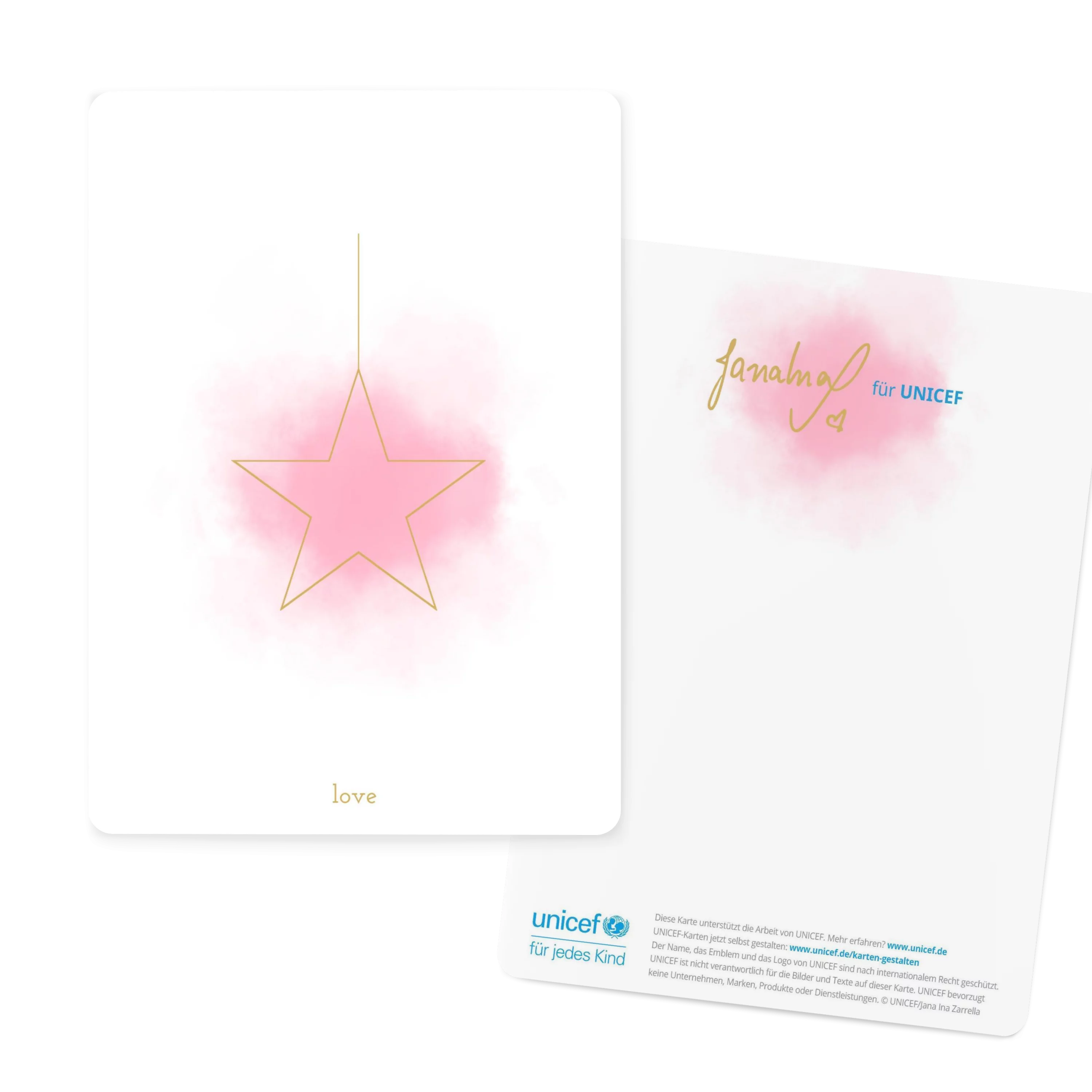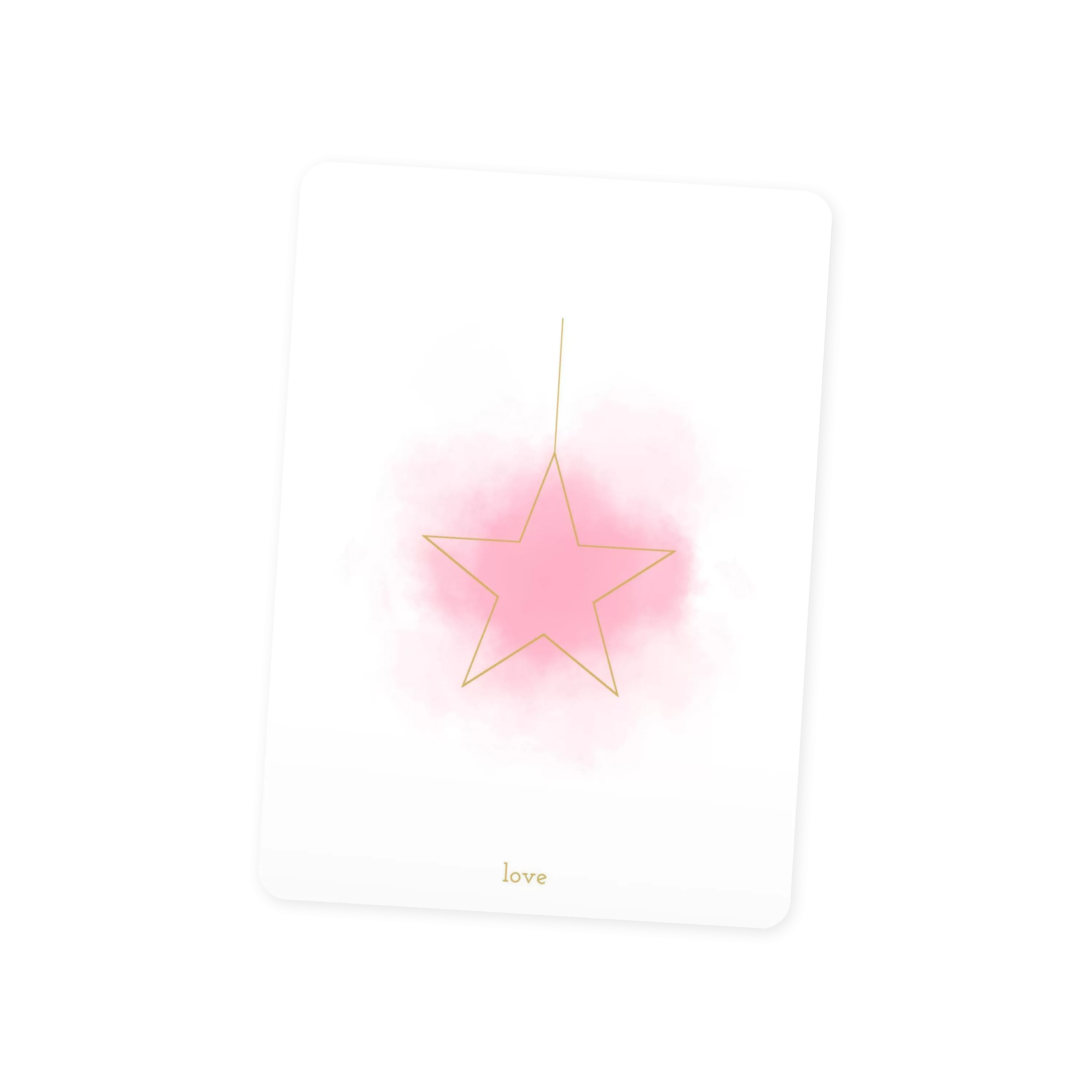 Ein zarter Stern von goldenem Glanz, umrahmt von sanftem Rosa, steht auf dieser Karte für Liebe und Geborgenheit. Love fängt das Strahlen des Weihnachtsfestes ein und erinnert daran, dass wahre Freude dort beginnt, wo Herzen sich verbinden.