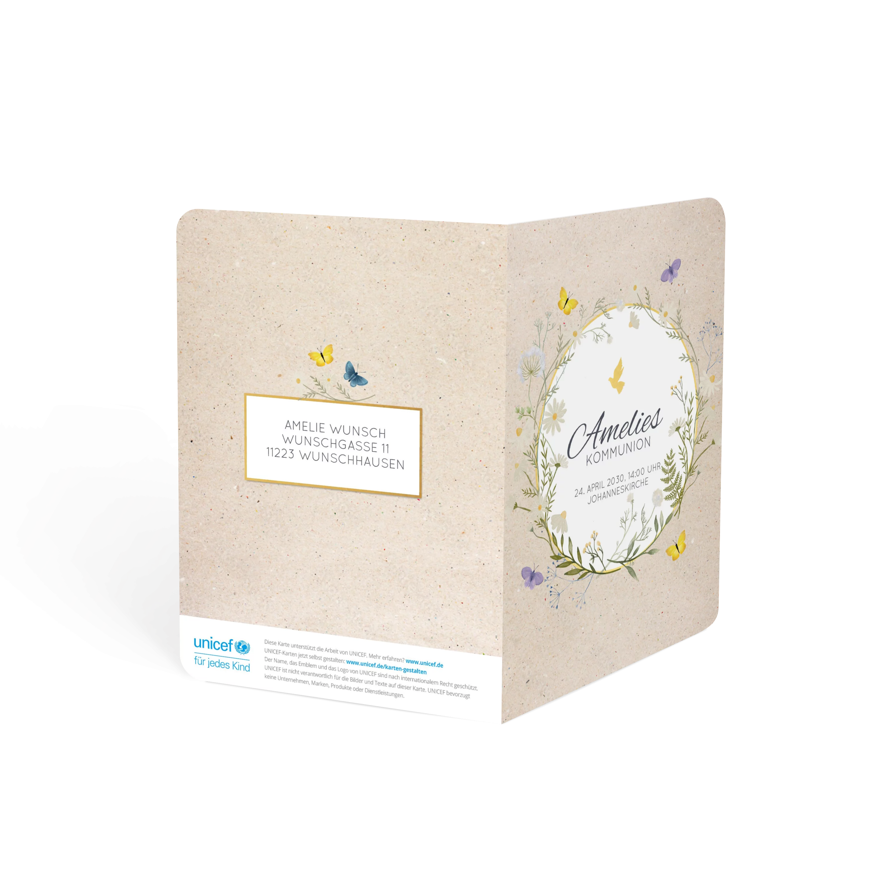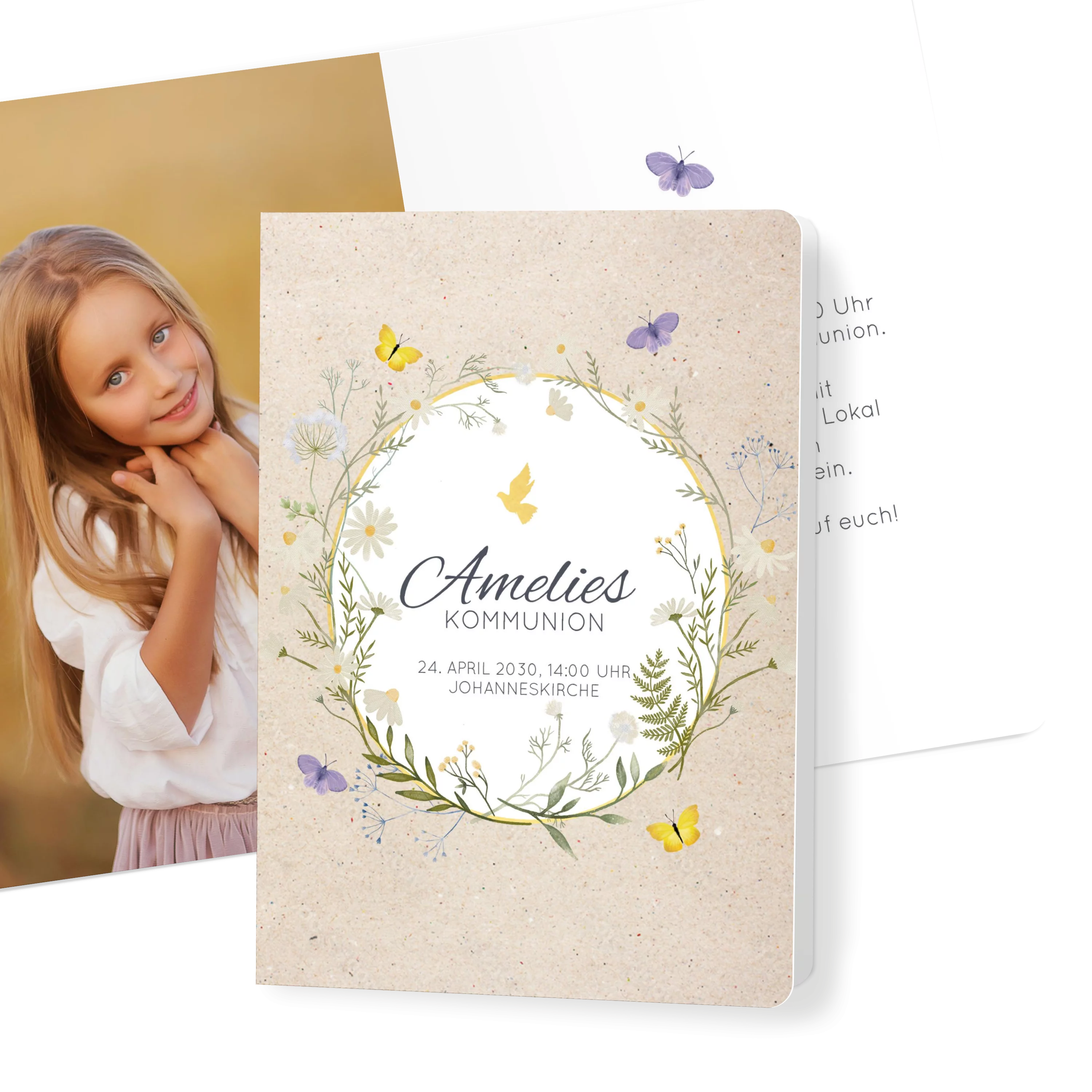 Einladungskarte Kommunion „Kommunion Blumenkranz“