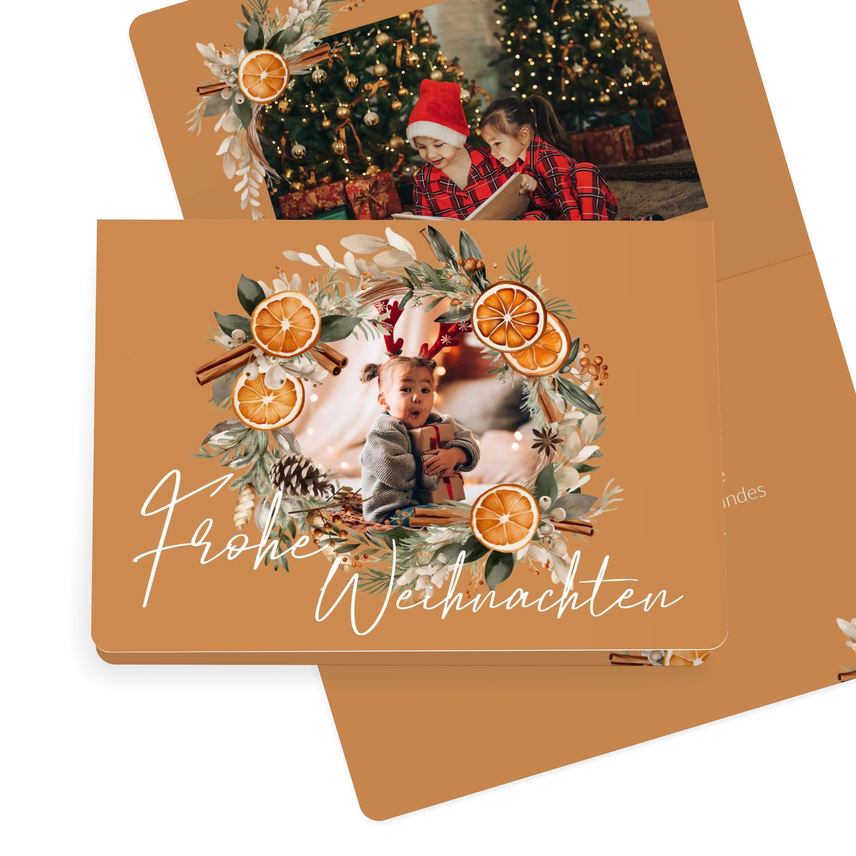 1,10 €: Selbst gestaltete Klappkarte mit Hochglanz- oder mattem Lack sowie Doppelklappkarte mit Umschlag