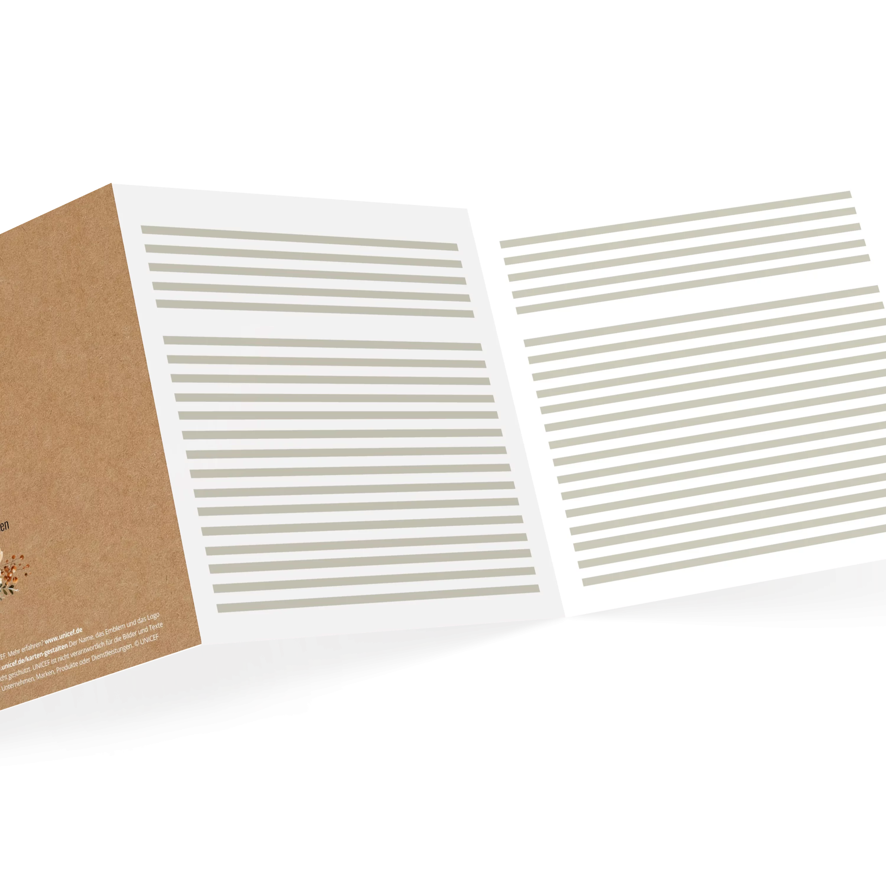 Wir verwenden ausschließlich Papier aus nachhaltiger Forstwirtschaft und die selbst gestalteten Karten sind plastikfrei verpackt.