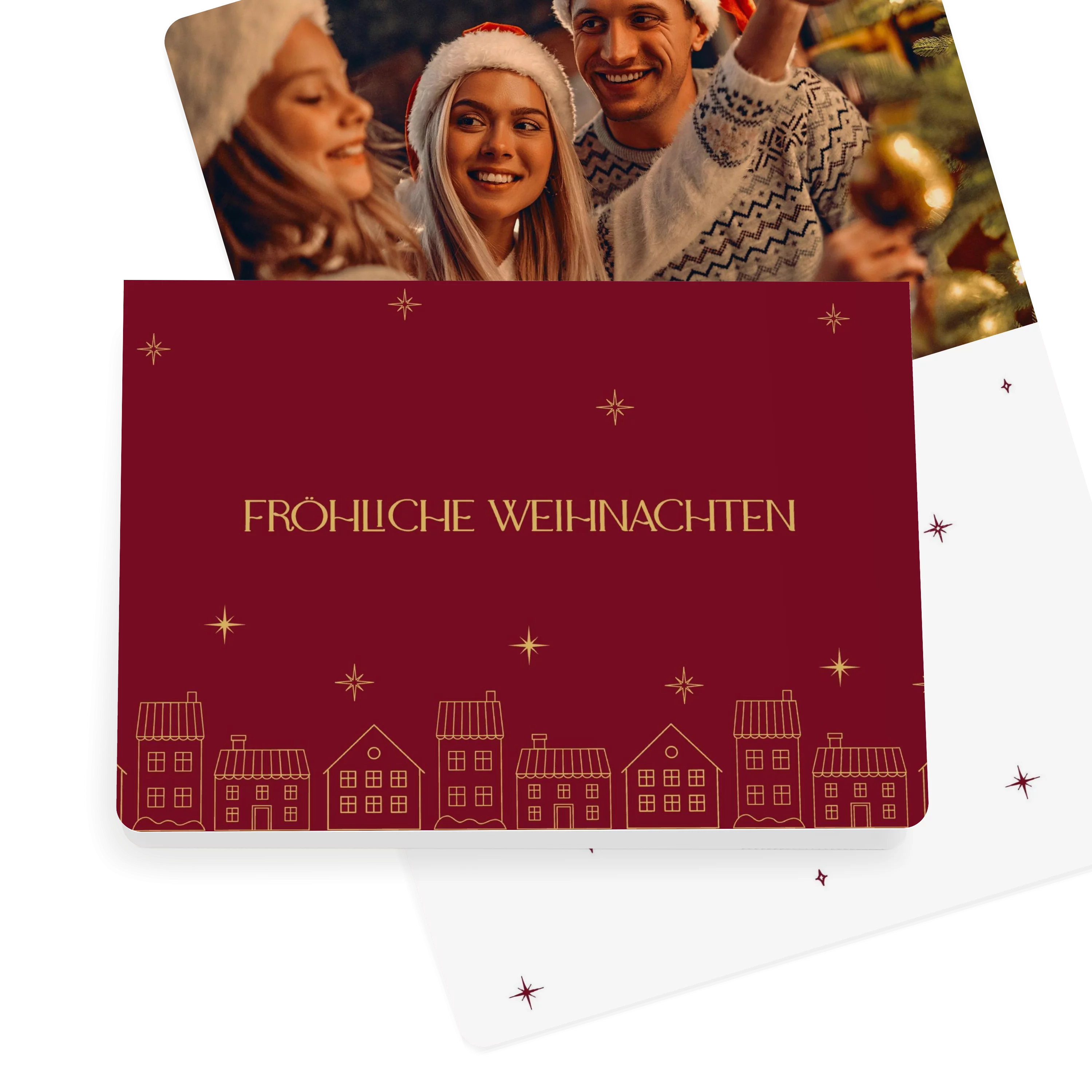 1,10 €: Selbst gestaltete Klappkarte mit Hochglanz- oder mattem Lack sowie Doppelklappkarte mit Umschlag