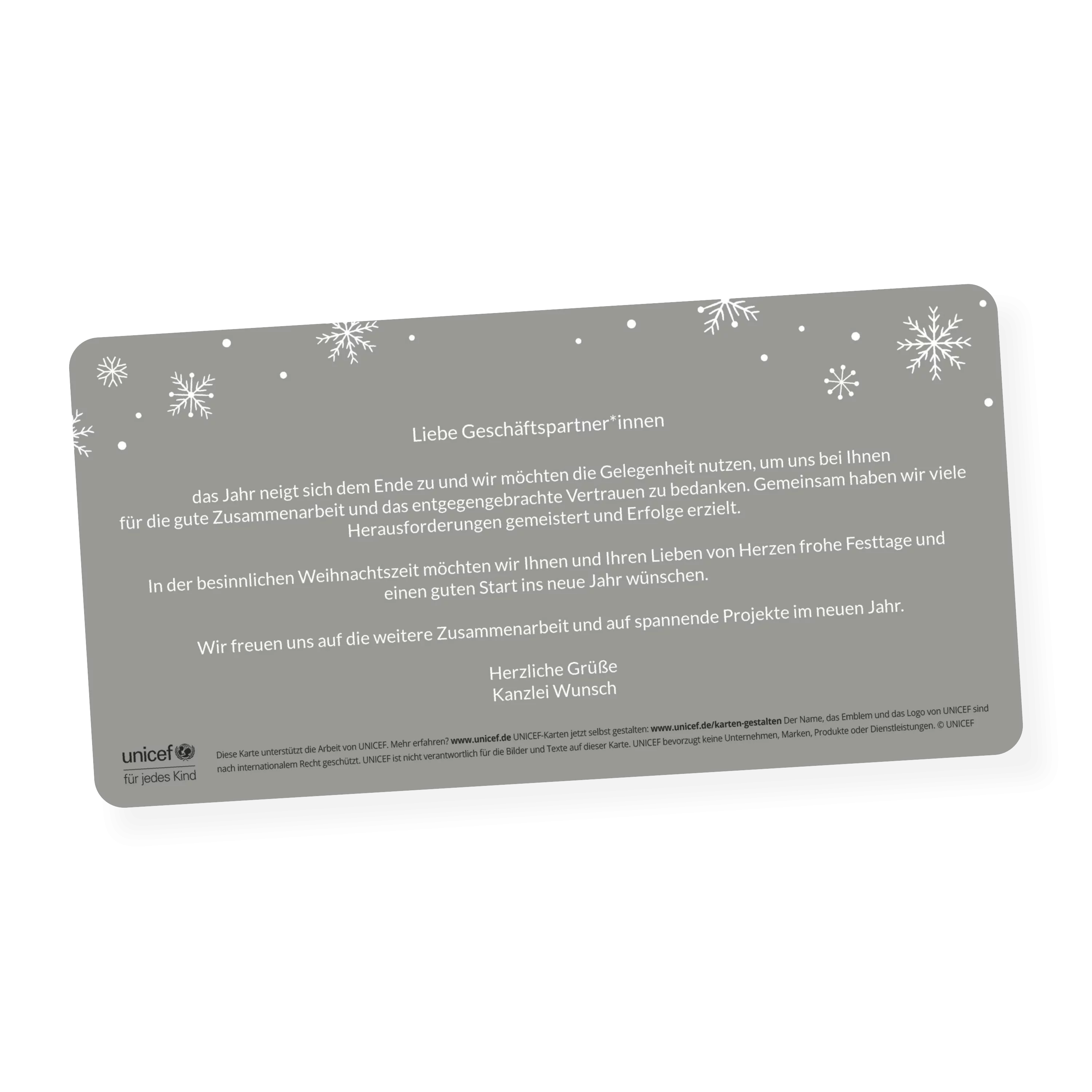 Alle UNICEF-Karten werden unter Einhaltung strenger internationaler Richtlinien hinsichtlich Qualität, Sicherheit, sozialer Verantwortung und Umweltschutz hergestellt. Denn UNICEF ist den Kindern und ihren Familien verpflichtet.