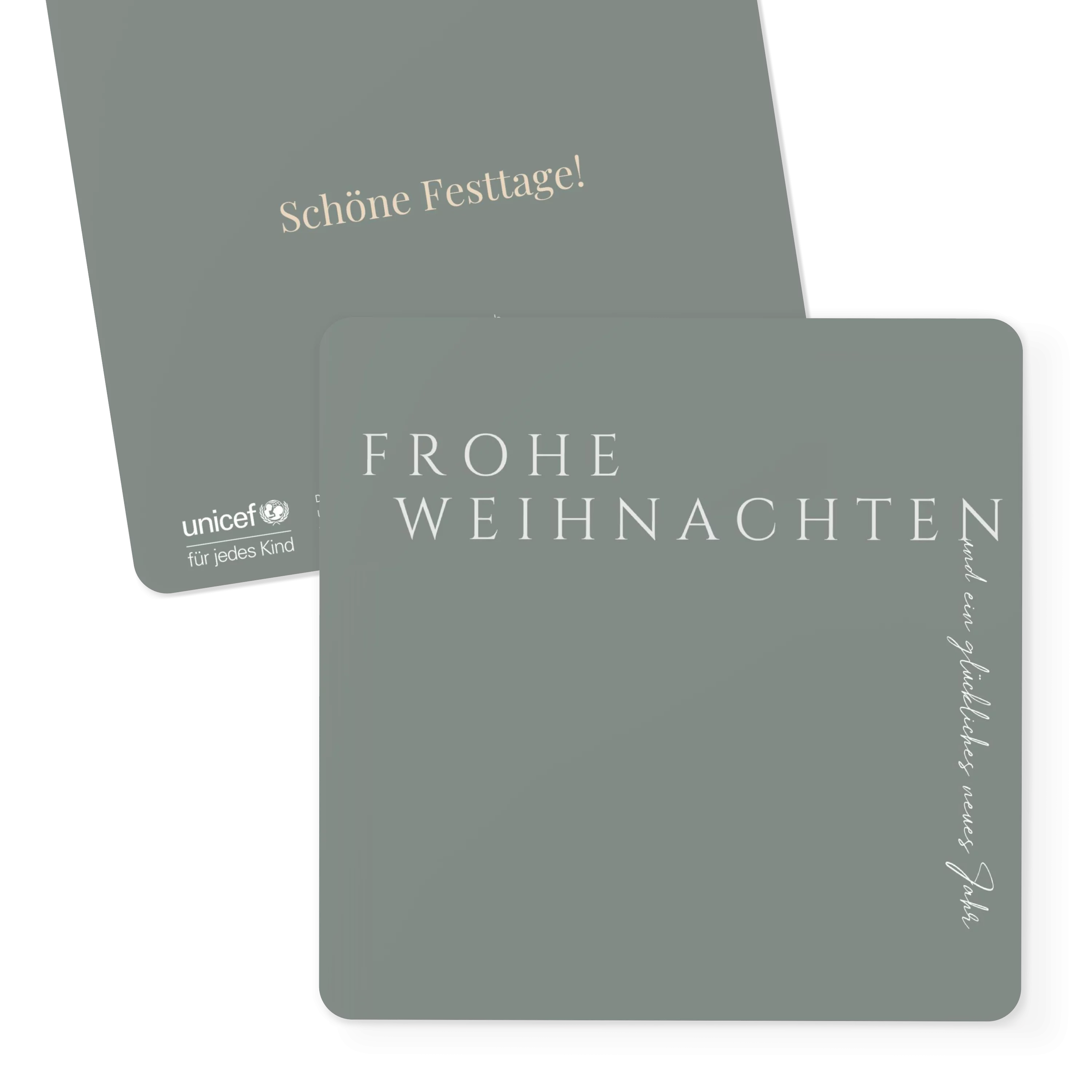 Weihnachtskarten gestalten mit dem reduzierten Motiv „Minimalistic Christmas“ auf modernem Grün. Klappkarte 11,8 cm x 16,6 cm, auch erhältlich als flache Karte oder Doppelklappkarte. Gestalten Sie Ihre Karten zu Weihnachten mit eigenen Fotos im Innenteil und persönlichem Text. Wir nutzen Papier aus nachhaltiger Forstwirtschaft und eine plastikfreie Verpackung. Mit dem Kauf von UNICEF Weihnachtskarten helfen Sie Kindern in Not. Jetzt Weihnachtskarten bestellen!