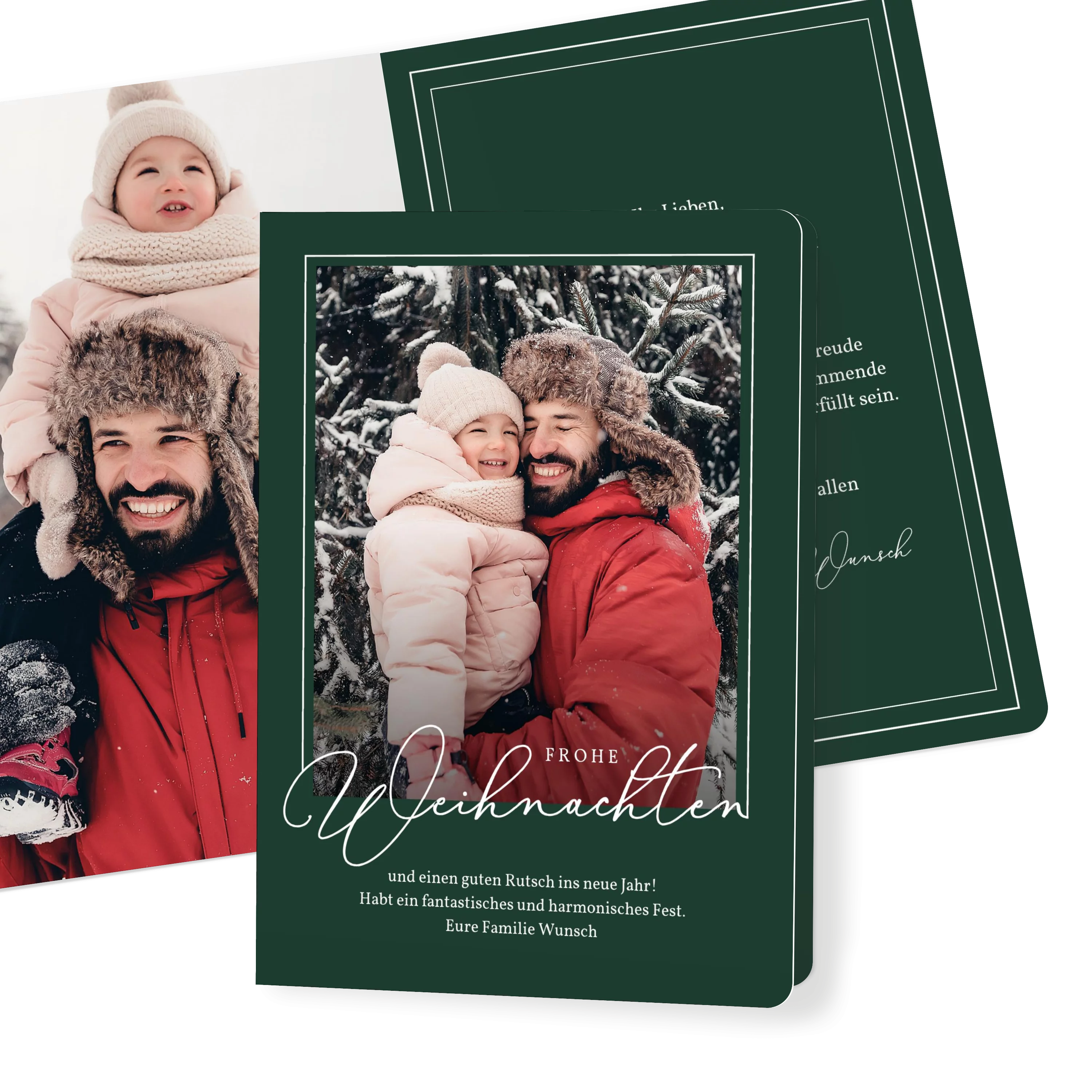 1,10 €: Selbst gestaltete Klappkarte mit Hochglanz- oder mattem Lack sowie Doppelklappkarte mit Umschlag