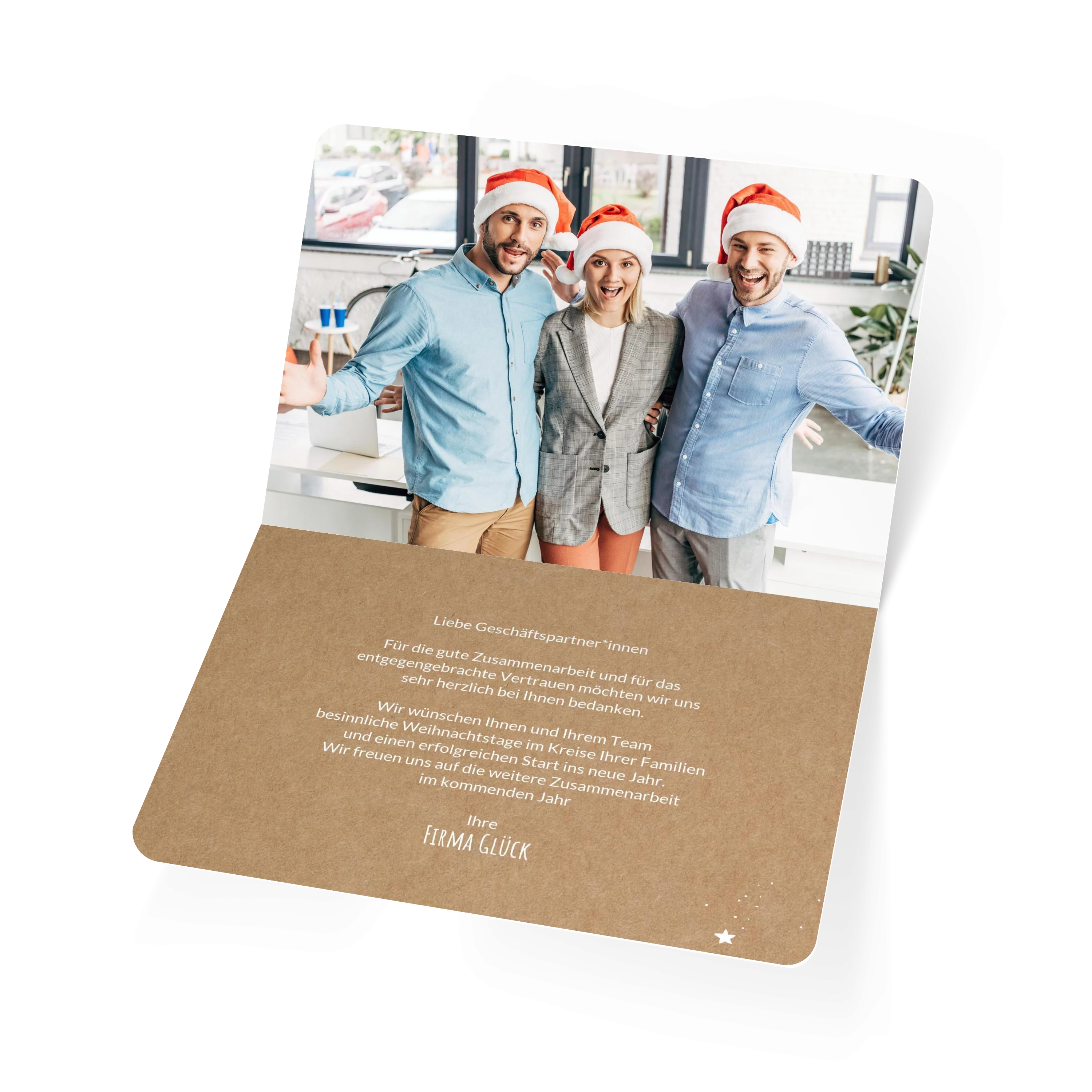 Sie benötigen Farbanpassungen, Fotobearbeitungen, einen Sprachersatz z.B. von einer nicht-lateinischen Sprache oder die Verwendung Ihrer eigenen Druckdaten? Wir passen Ihre Karte an Ihre Corporate Identity an.