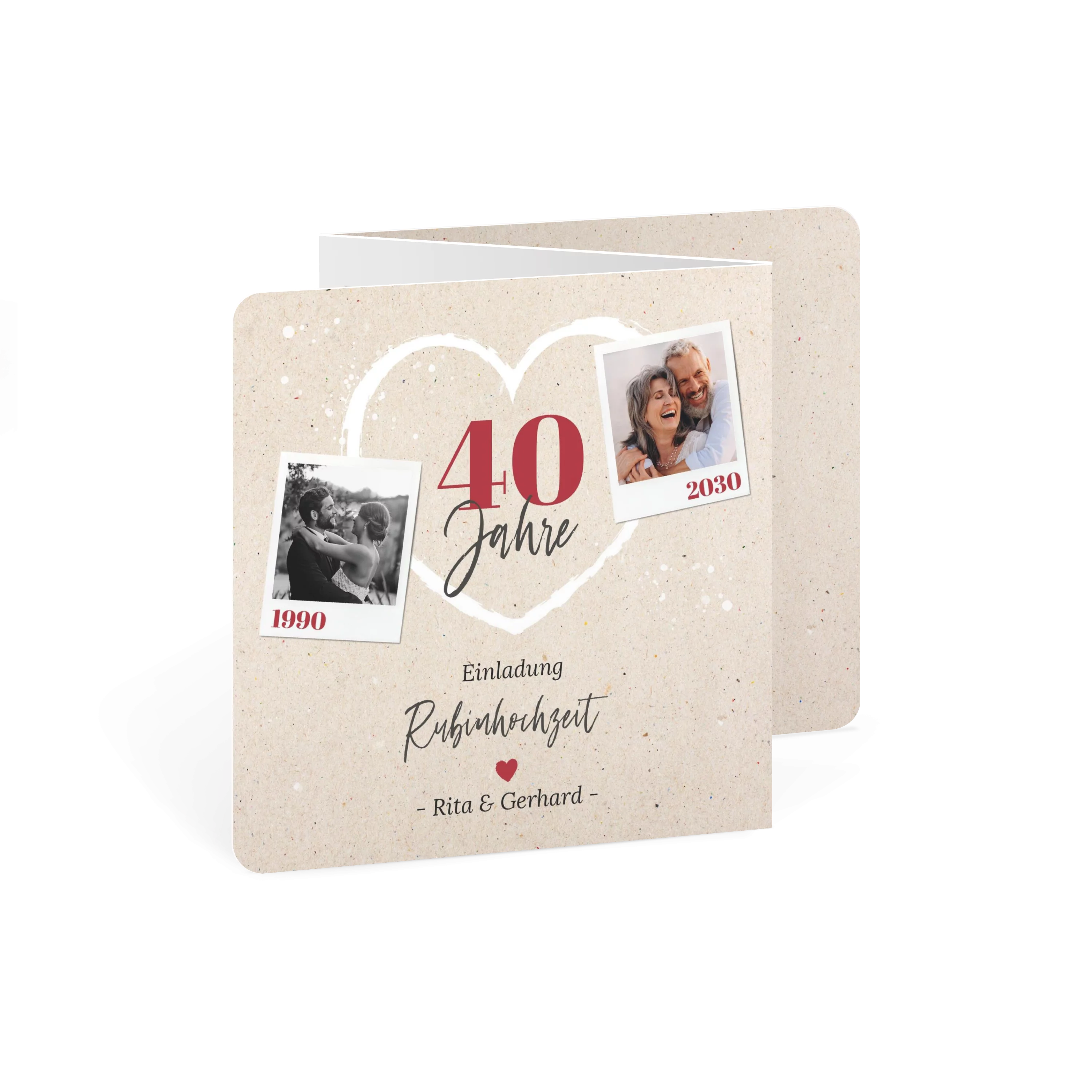 Einladungskarte Rubinhochzeit „Now and Then Rubin“