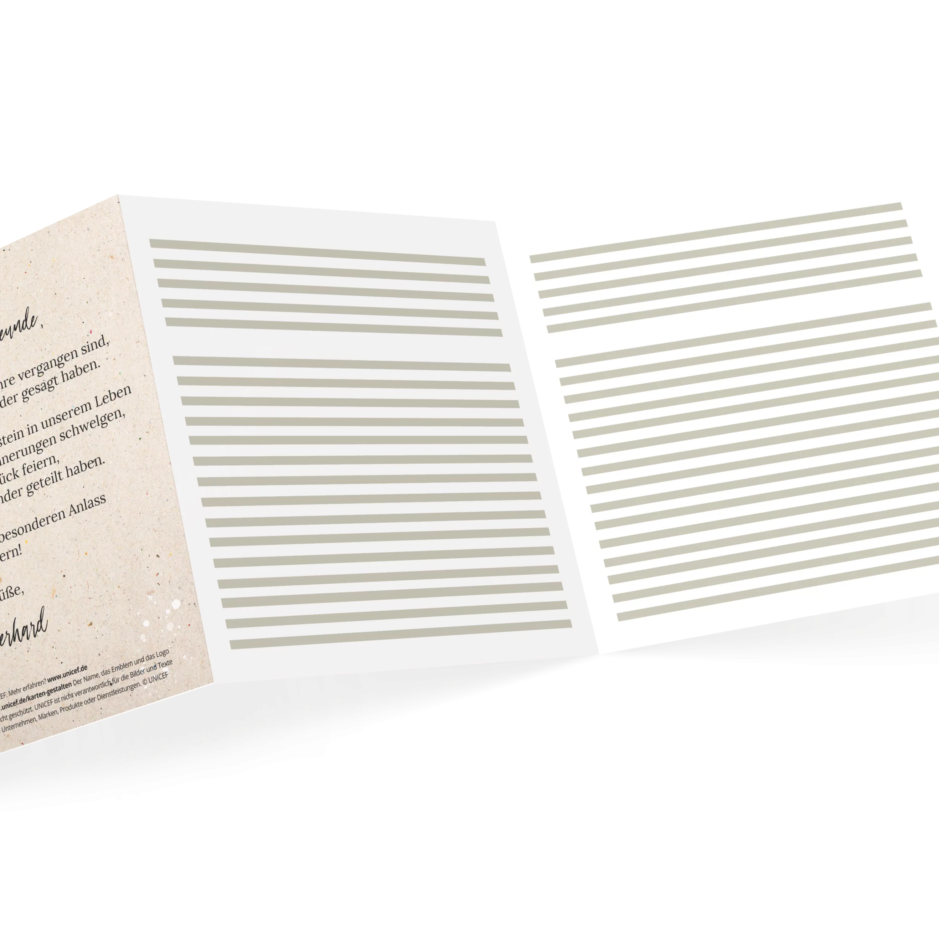 Wir verwenden ausschließlich Papier aus nachhaltiger Forstwirtschaft und die selbst gestalteten Karten sind plastikfrei verpackt.
