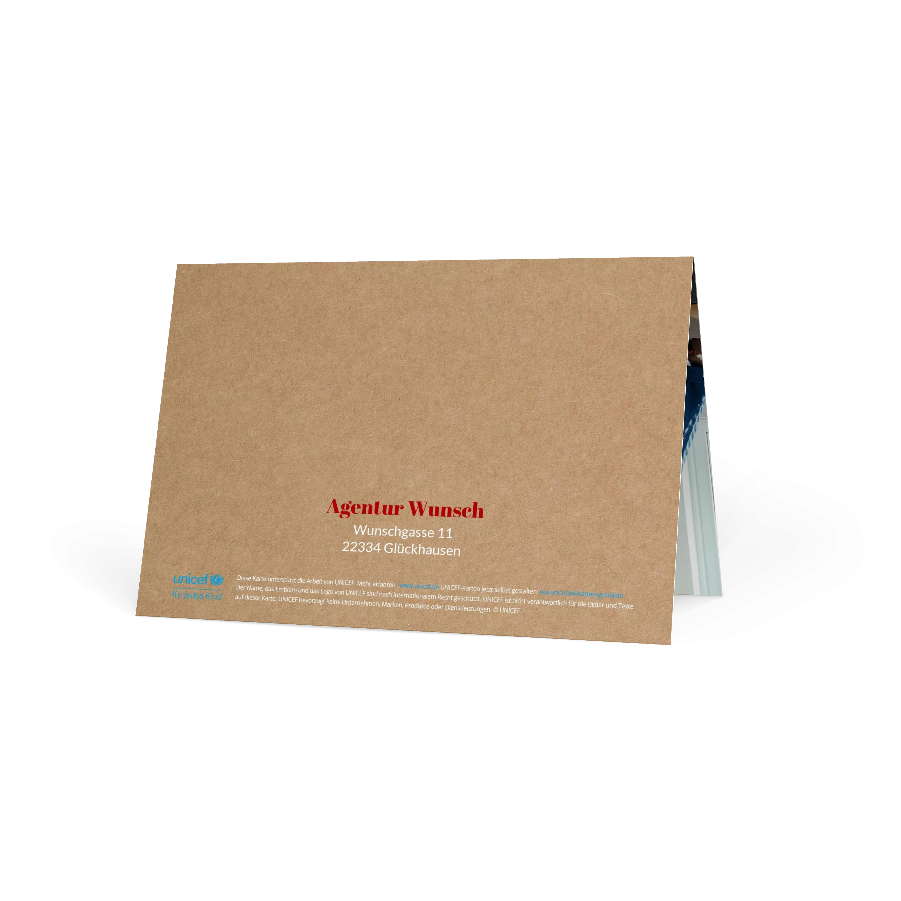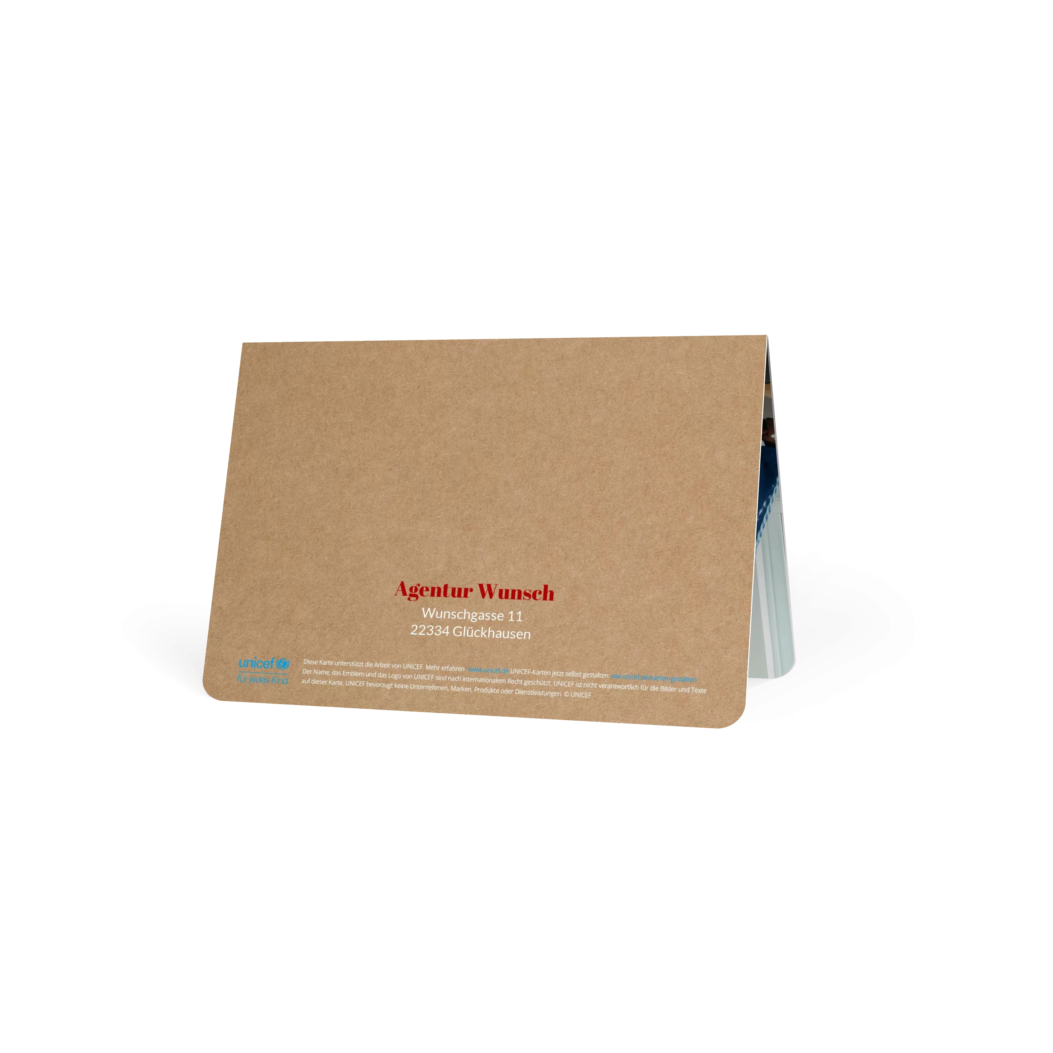 Alle UNICEF-Karten werden unter Einhaltung strenger internationaler Richtlinien hinsichtlich Qualität, Sicherheit, sozialer Verantwortung und Umweltschutz hergestellt. Denn UNICEF ist den Kindern und ihren Familien verpflichtet.