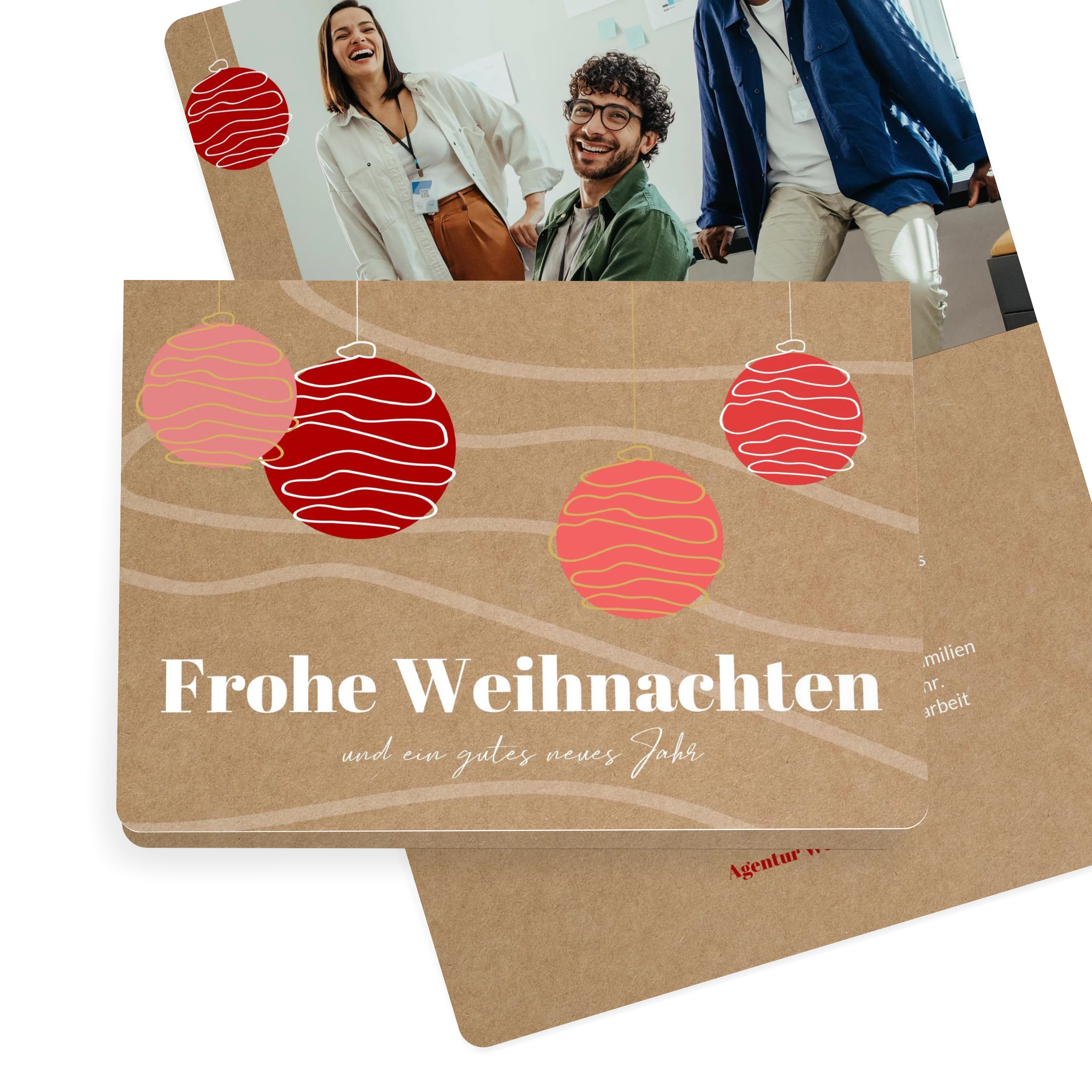 Sie benötigen Farbanpassungen, Fotobearbeitungen, einen Sprachersatz z.B. von einer nicht-lateinischen Sprache oder die Verwendung Ihrer eigenen Druckdaten? Wir passen Ihre Karte an Ihre Corporate Identity an.