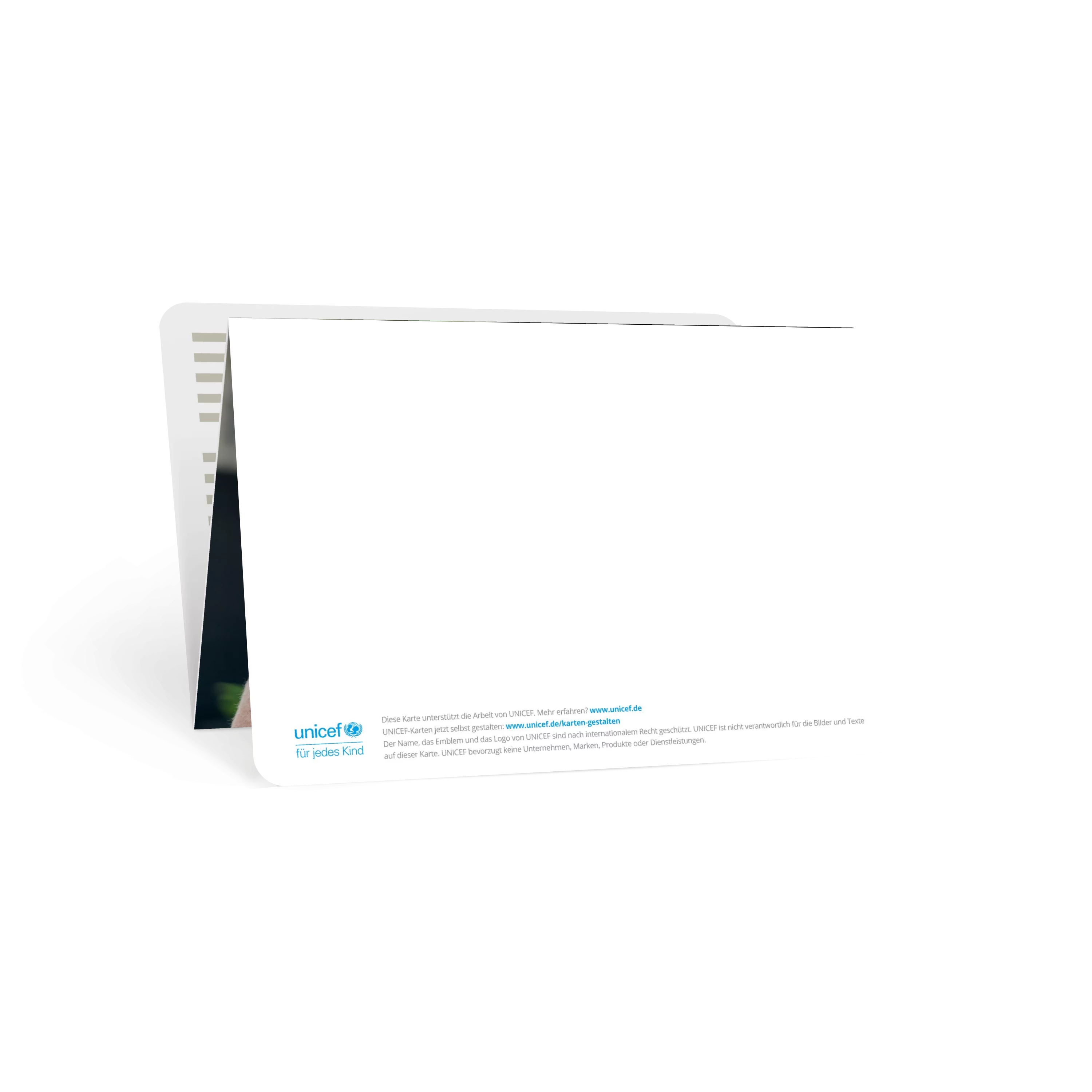 Alle UNICEF-Karten werden unter Einhaltung strenger internationaler Richtlinien hinsichtlich Qualität, Sicherheit, sozialer Verantwortung und Umweltschutz hergestellt. Denn UNICEF ist den Kindern und ihren Familien verpflichtet.
