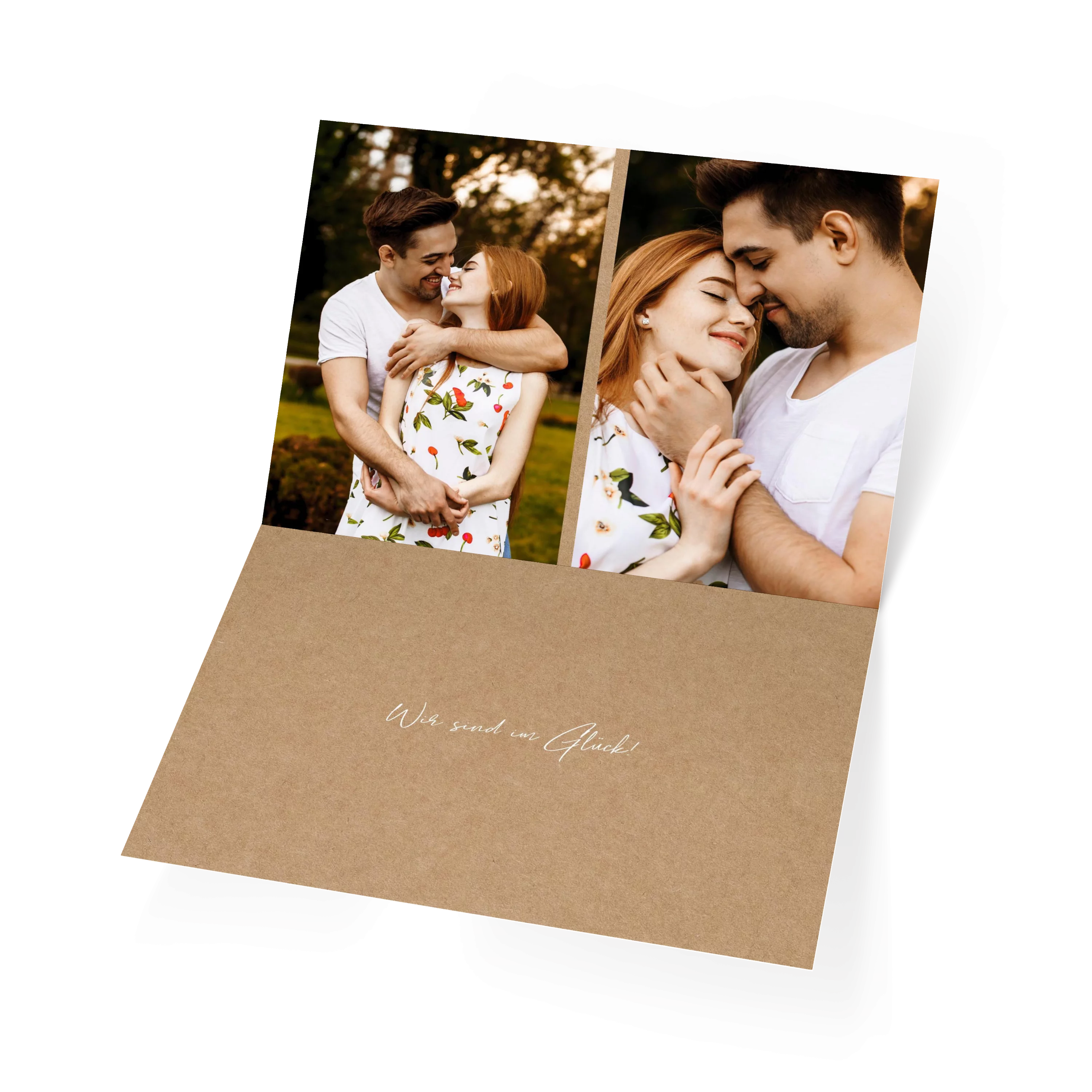 1,10 €: Selbst gestaltete Klappkarte mit Hochglanz- oder mattem Lack sowie Doppelklappkarte mit Umschlag