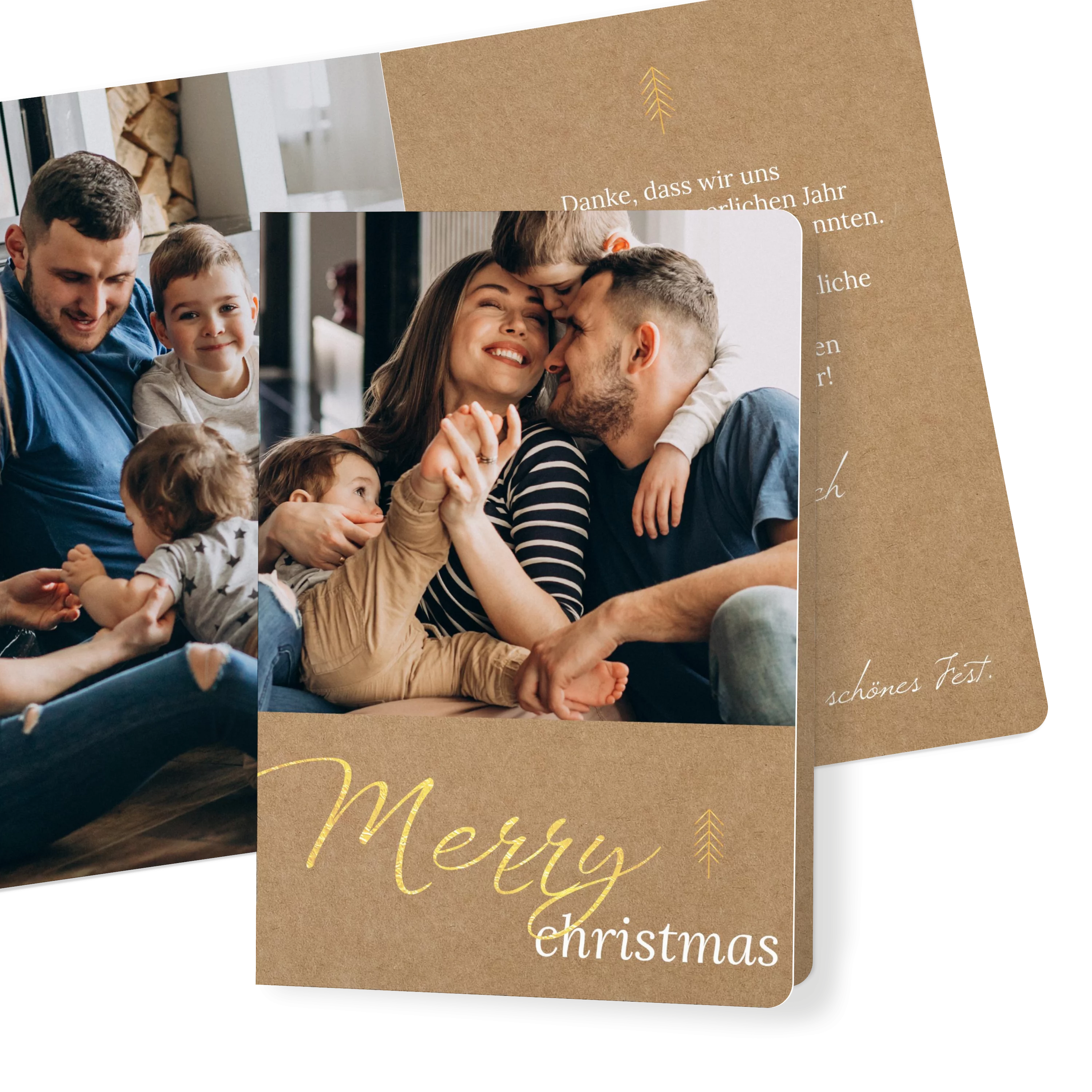 1,10 €: Selbst gestaltete Klappkarte mit Hochglanz- oder mattem Lack sowie Doppelklappkarte mit Umschlag