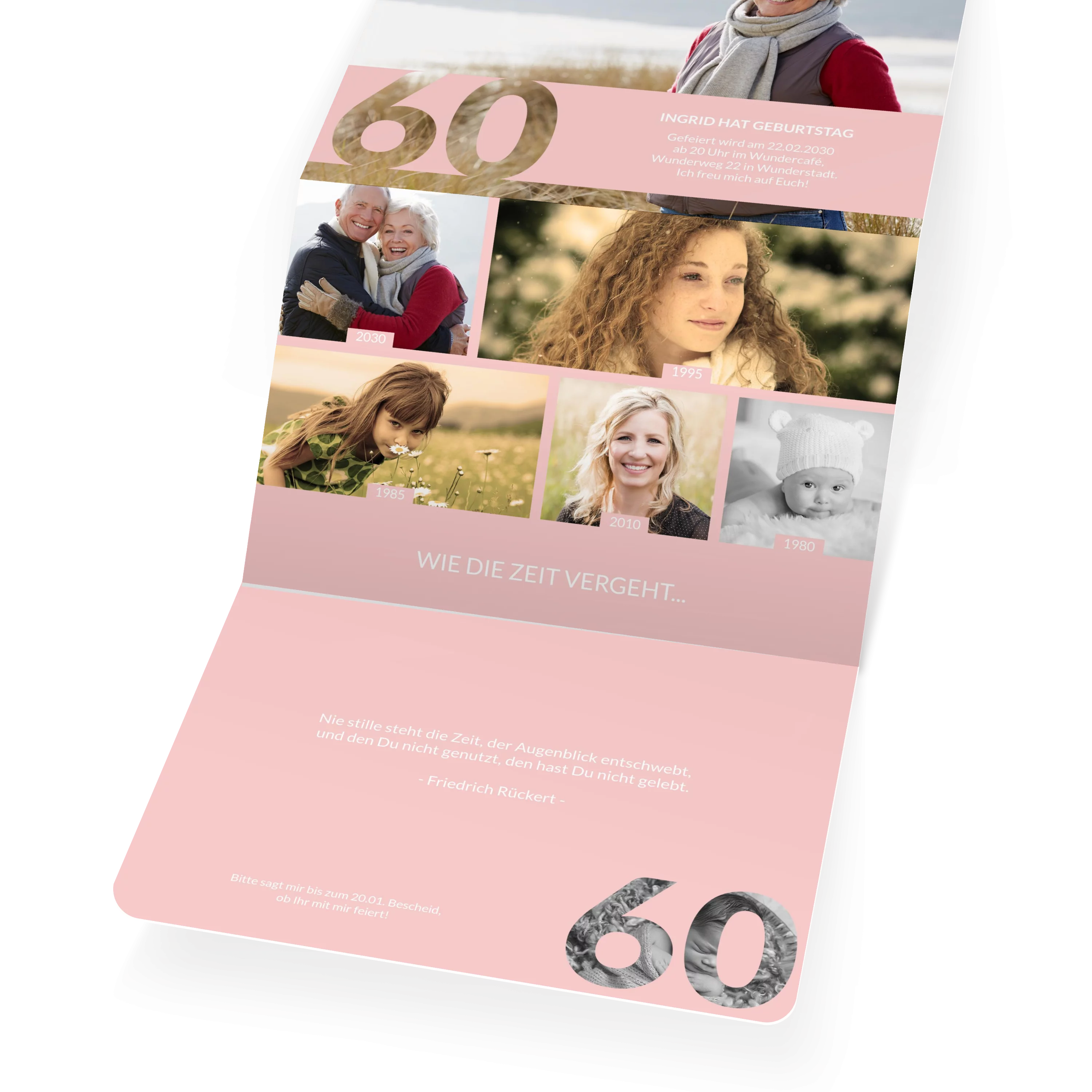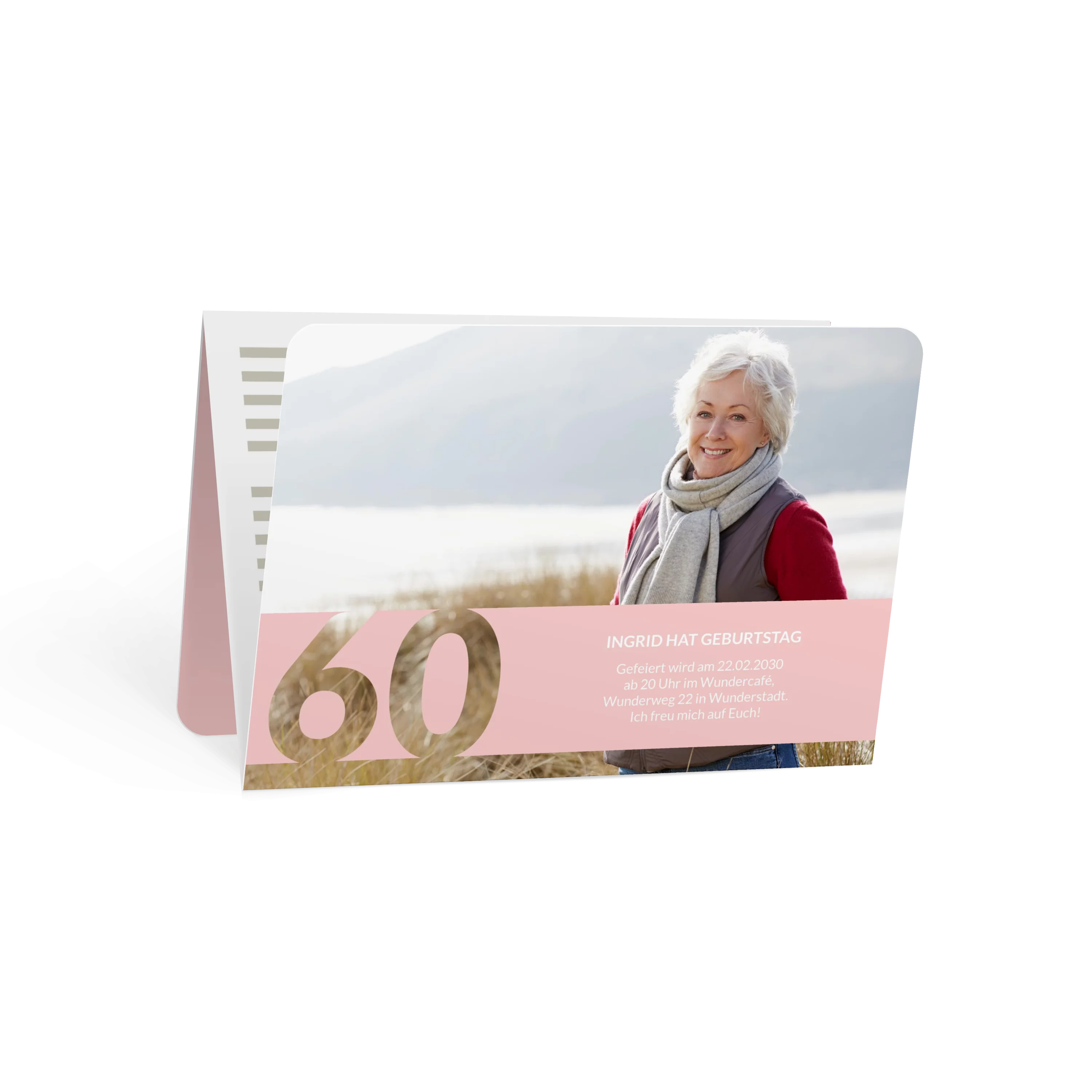 Mit sanften Blautönen, großem Foto und goldschimmernder Zahl wird herzlich zum runden Geburtstag eingeladen. Eine persönliche Karte, die Ruhe und Wärme ausstrahlt.