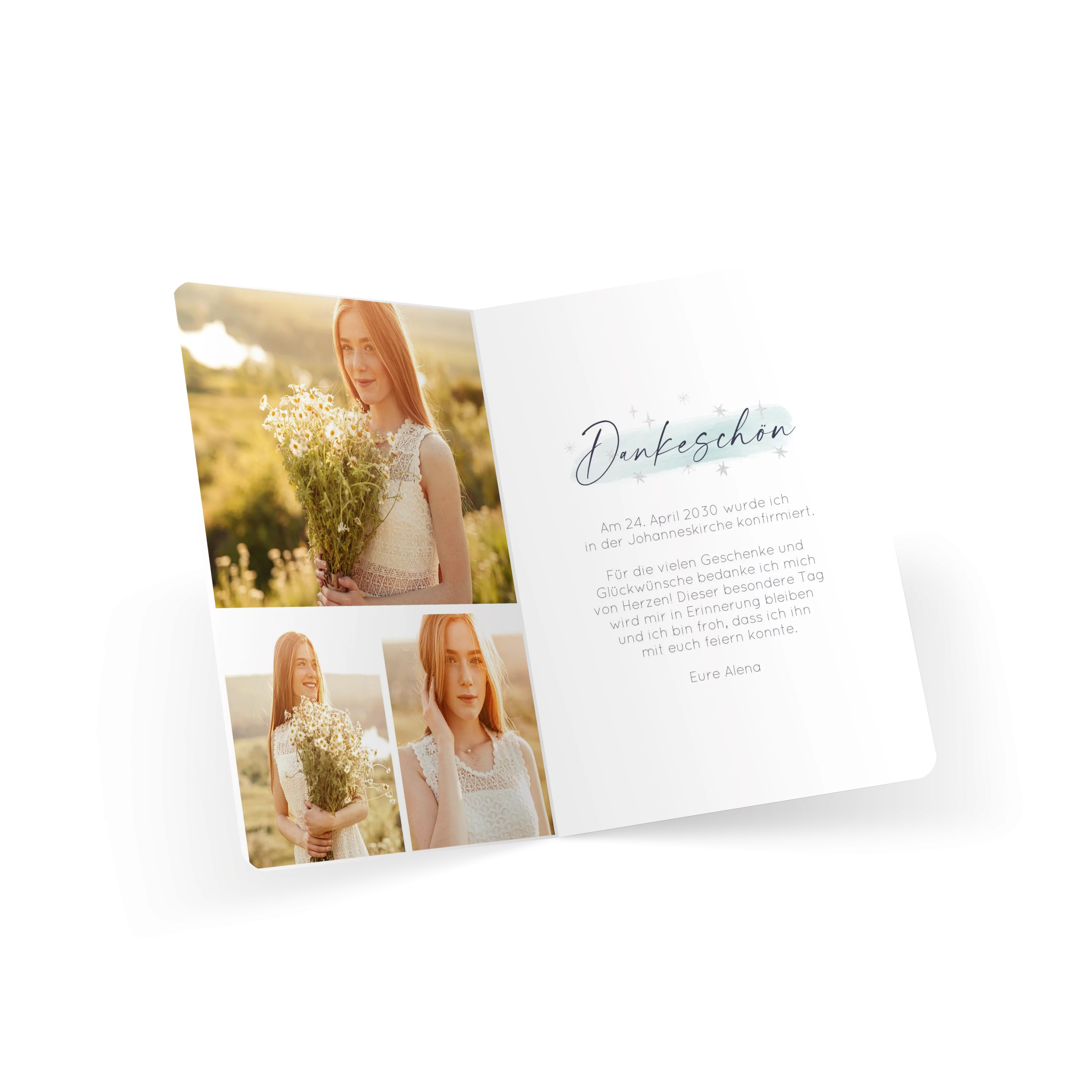 1,10 €: Selbst gestaltete Klappkarte mit Hochglanz- oder mattem Lack sowie Doppelklappkarte mit Umschlag