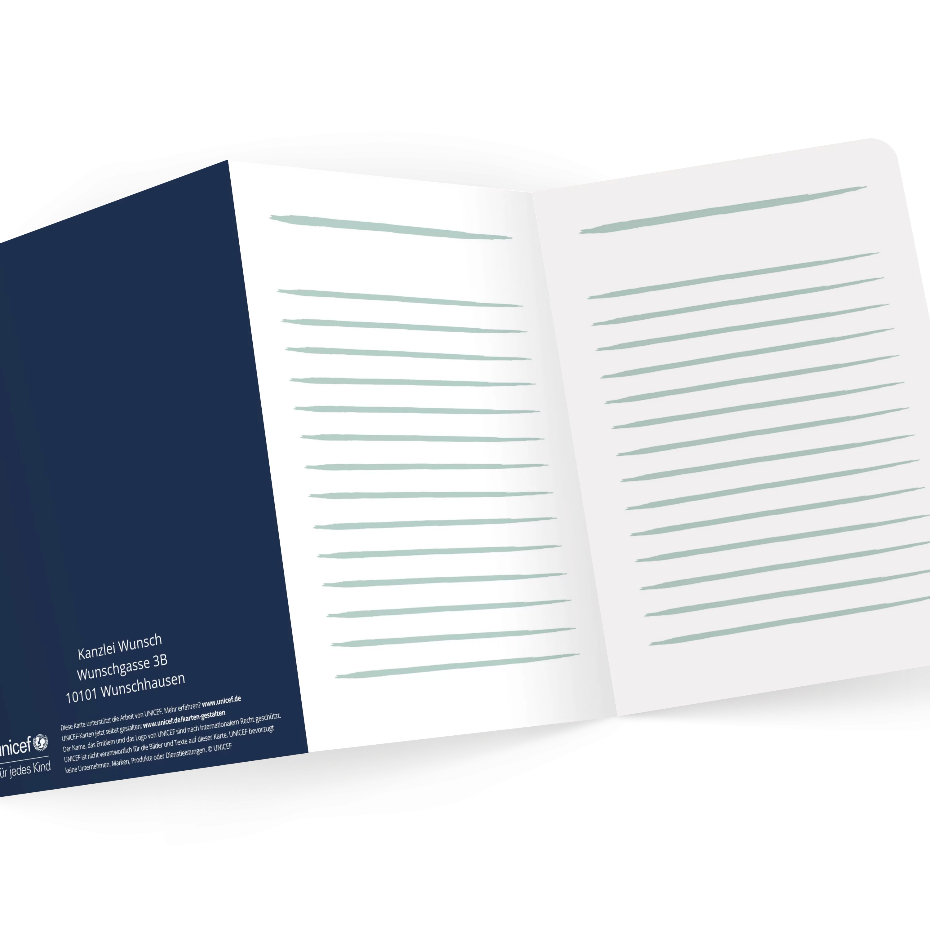 Alle UNICEF-Karten werden unter Einhaltung strenger internationaler Richtlinien hinsichtlich Qualität, Sicherheit, sozialer Verantwortung und Umweltschutz hergestellt. Denn UNICEF ist den Kindern und ihren Familien verpflichtet.
