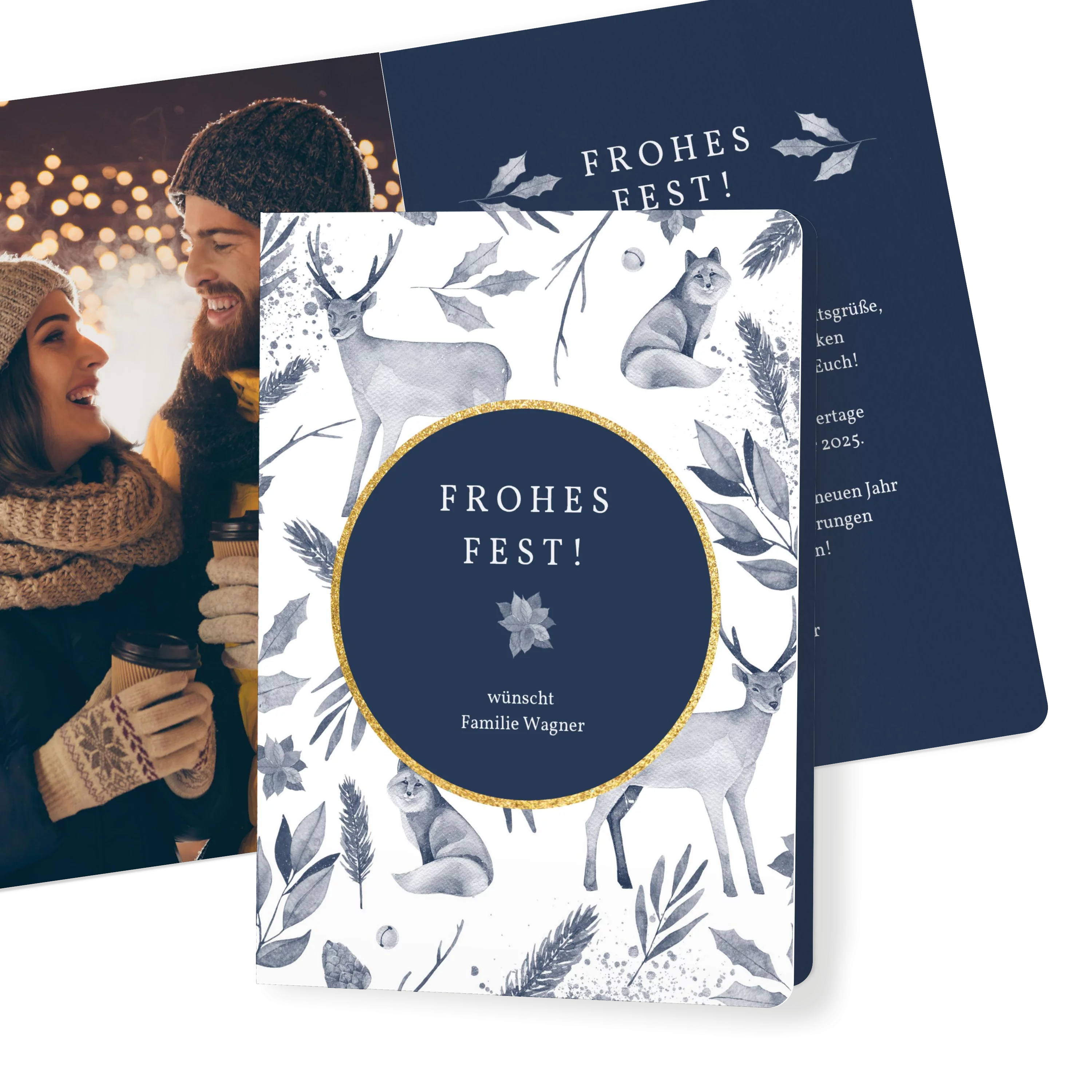 1,10 €: Selbst gestaltete Klappkarte mit Hochglanz- oder mattem Lack sowie Doppelklappkarte mit Umschlag