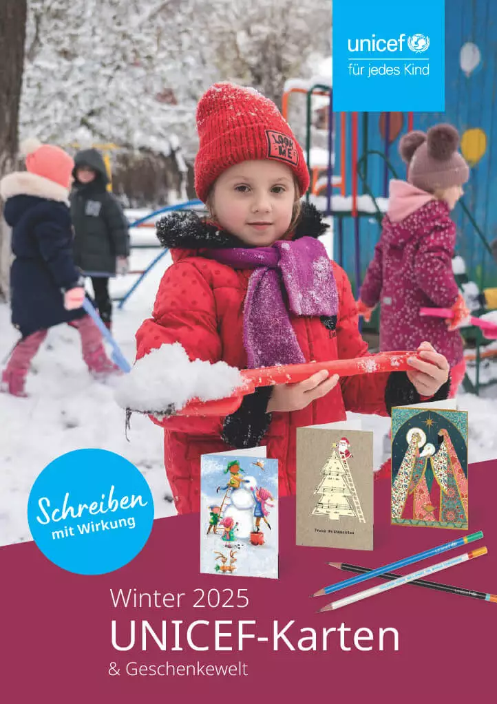 Die UNICEF-Karten sind ein wahrer Blickfang. Sie verbreiten festliche Stimmung und gleichzeitig eine Botschaft der Hoffnung. Bereiten Sie mit dem Kauf unserer Karten gleich doppelt Freude: den Empfänger*innen und den Kindern, die durch die Arbeit von UNICEF weltweit unterstützt werden.