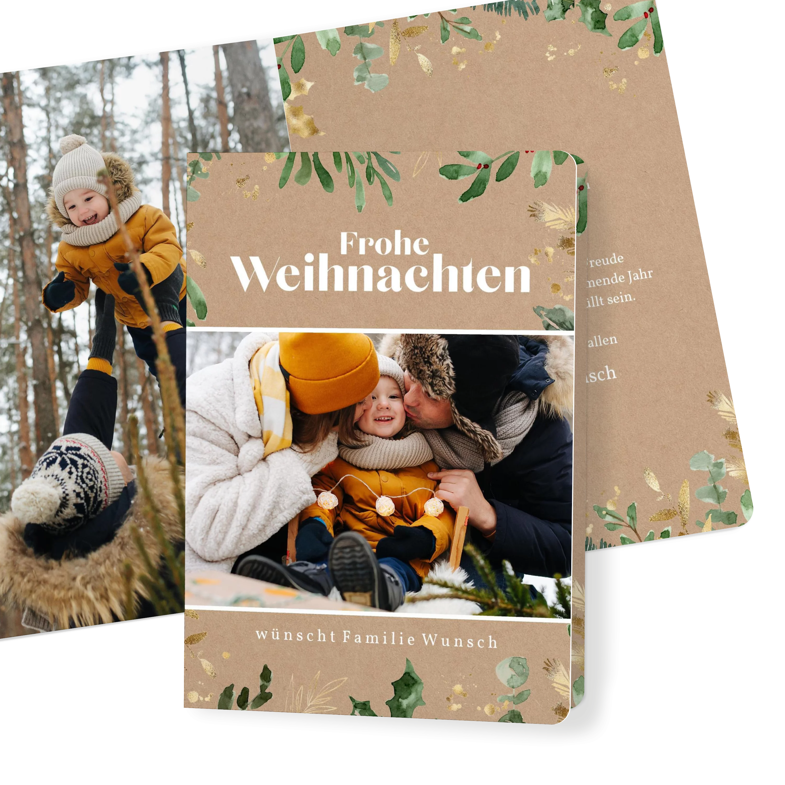 1,10 €: Selbst gestaltete Klappkarte mit Hochglanz- oder mattem Lack sowie Doppelklappkarte mit Umschlag