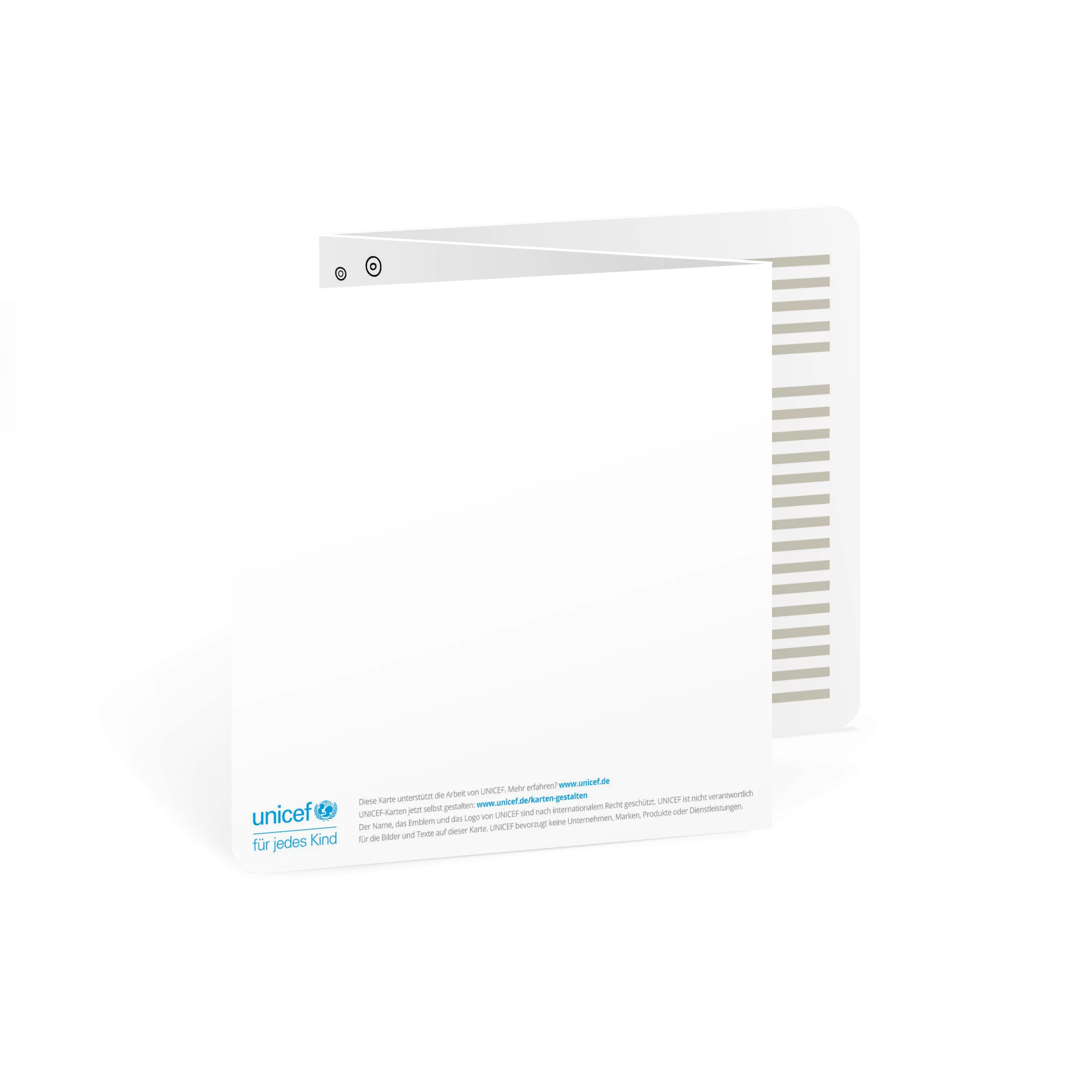 Alle UNICEF-Karten werden unter Einhaltung strenger internationaler Richtlinien hinsichtlich Qualität, Sicherheit, sozialer Verantwortung und Umweltschutz hergestellt. Denn UNICEF ist den Kindern und ihren Familien verpflichtet.