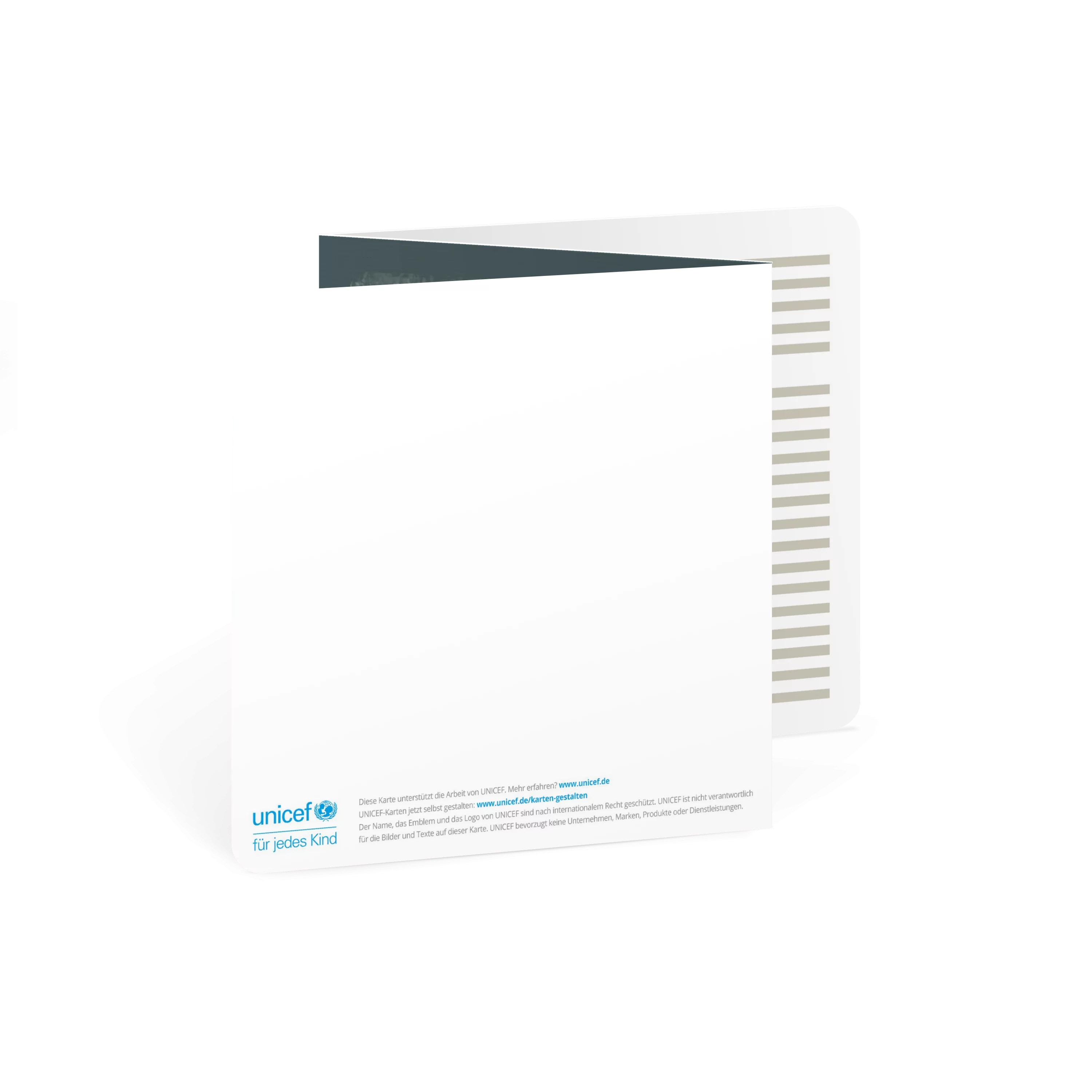 Alle UNICEF-Karten werden unter Einhaltung strenger internationaler Richtlinien hinsichtlich Qualität, Sicherheit, sozialer Verantwortung und Umweltschutz hergestellt. Denn UNICEF ist den Kindern und ihren Familien verpflichtet.