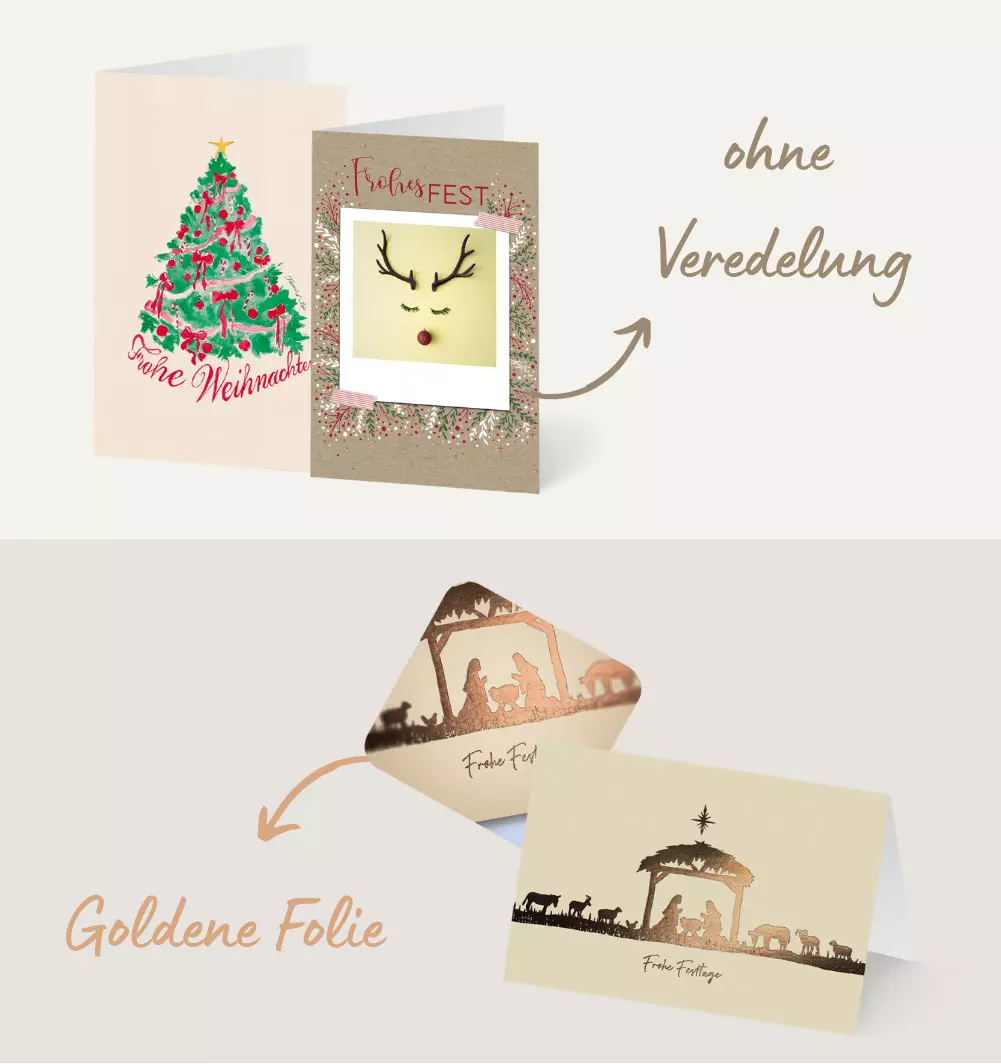 Zu Weihnachten: Karten mit und ohne Veredelung