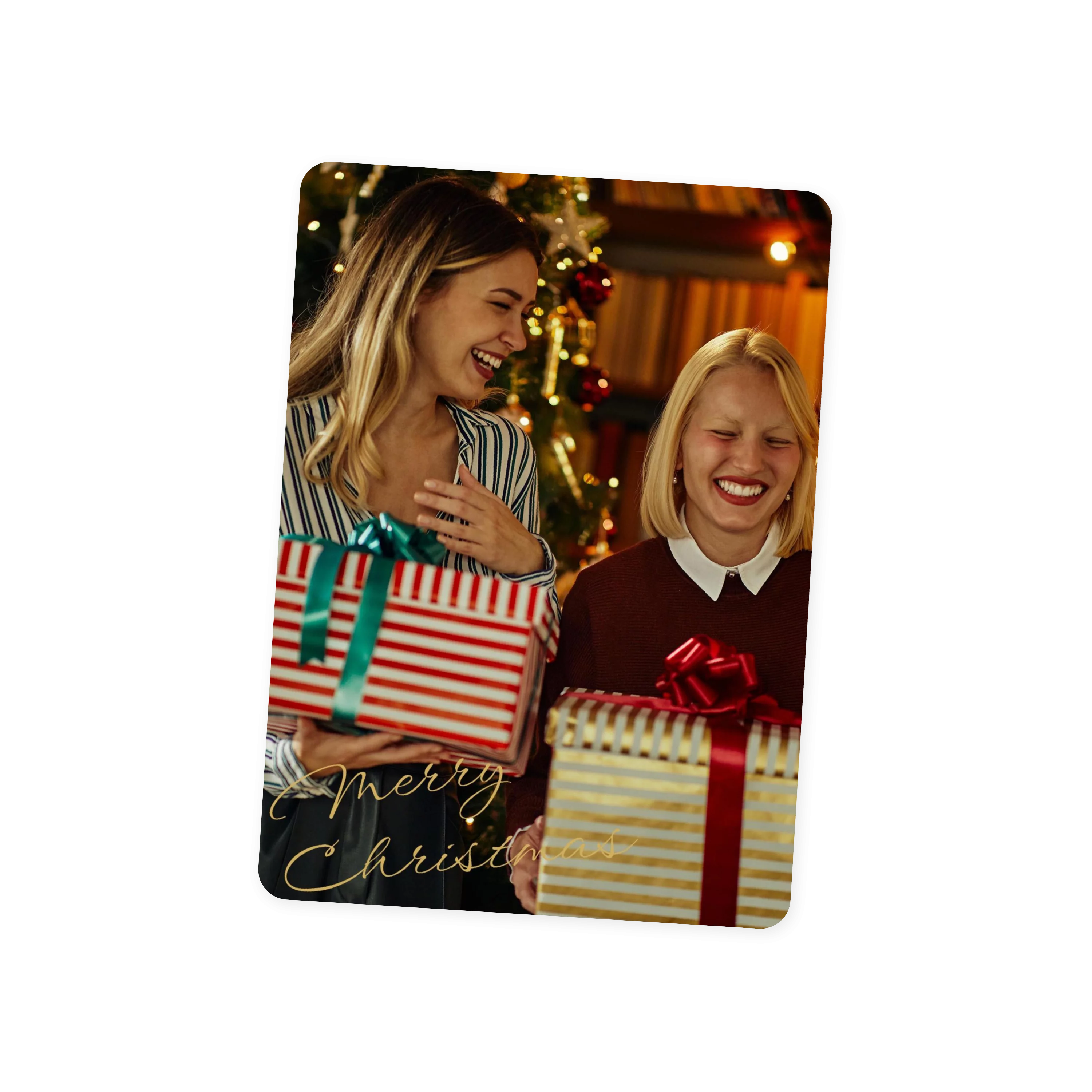 Weihnachtskarten gestalten mit dem Motiv „Weihnachtszauber“: Hier steht das Foto Ihrer Wahl im Mittelpunkt, zurückhaltend geschmückt von einem goldenen eleganten Weihnachtsgruß links unten. Klappkarte 11,8 cm x 16,6 cm, auch erhältlich als flache Karte oder Doppelklappkarte. Gestalten Sie Ihre Karten zu Weihnachten mit eigenen Fotos und persönlichem Text.