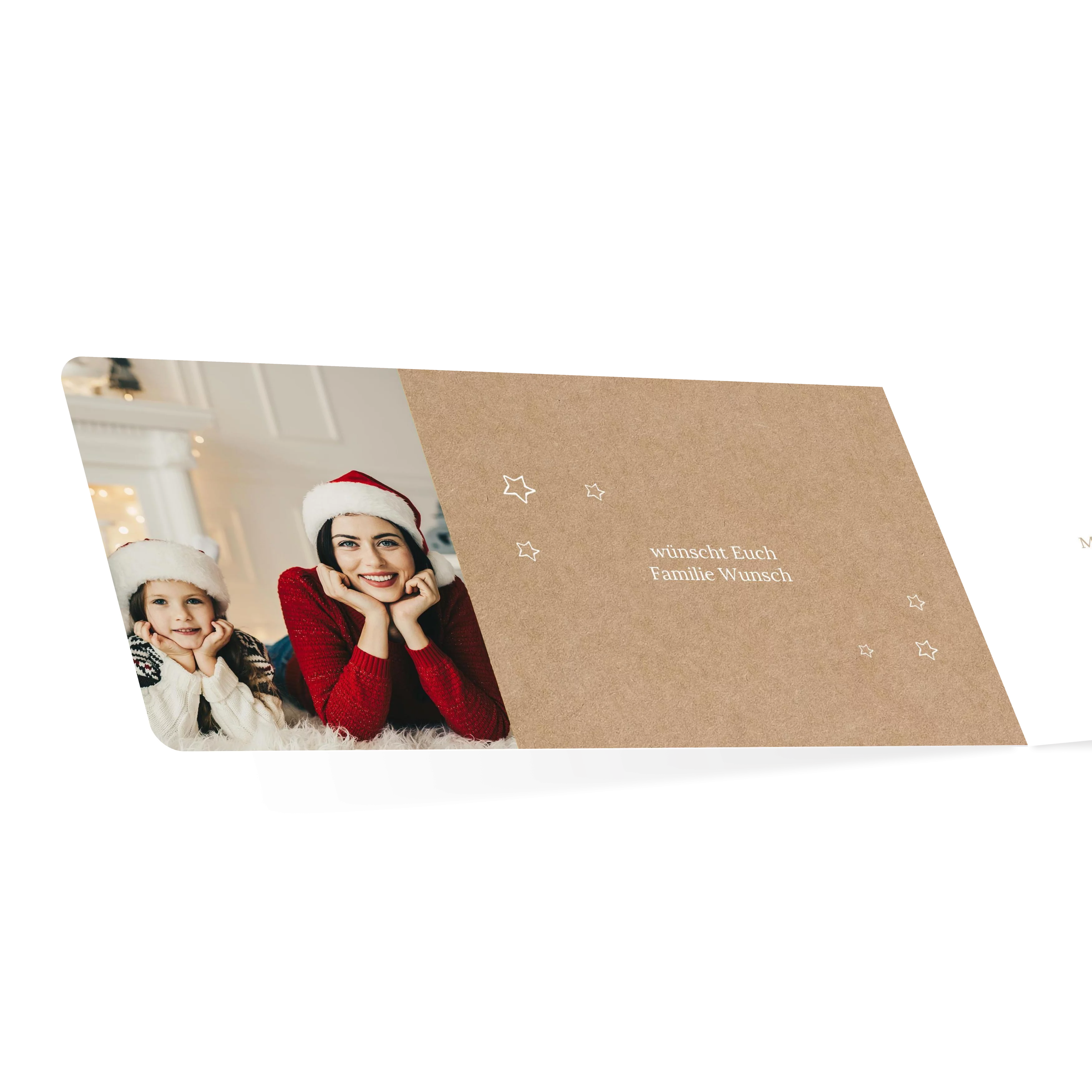 1,10 €: Selbst gestaltete Klappkarte mit Hochglanz- oder mattem Lack sowie Doppelklappkarte mit Umschlag
