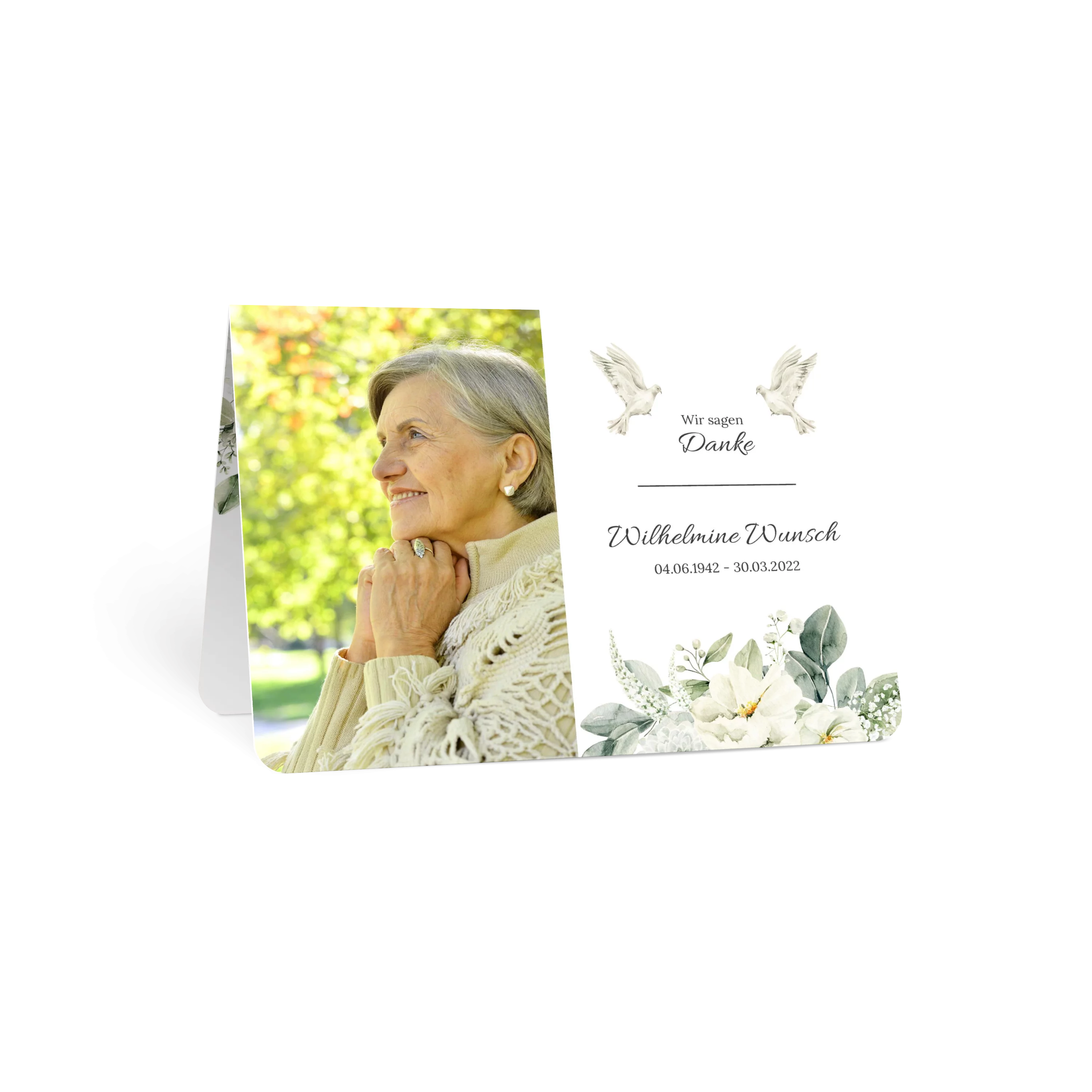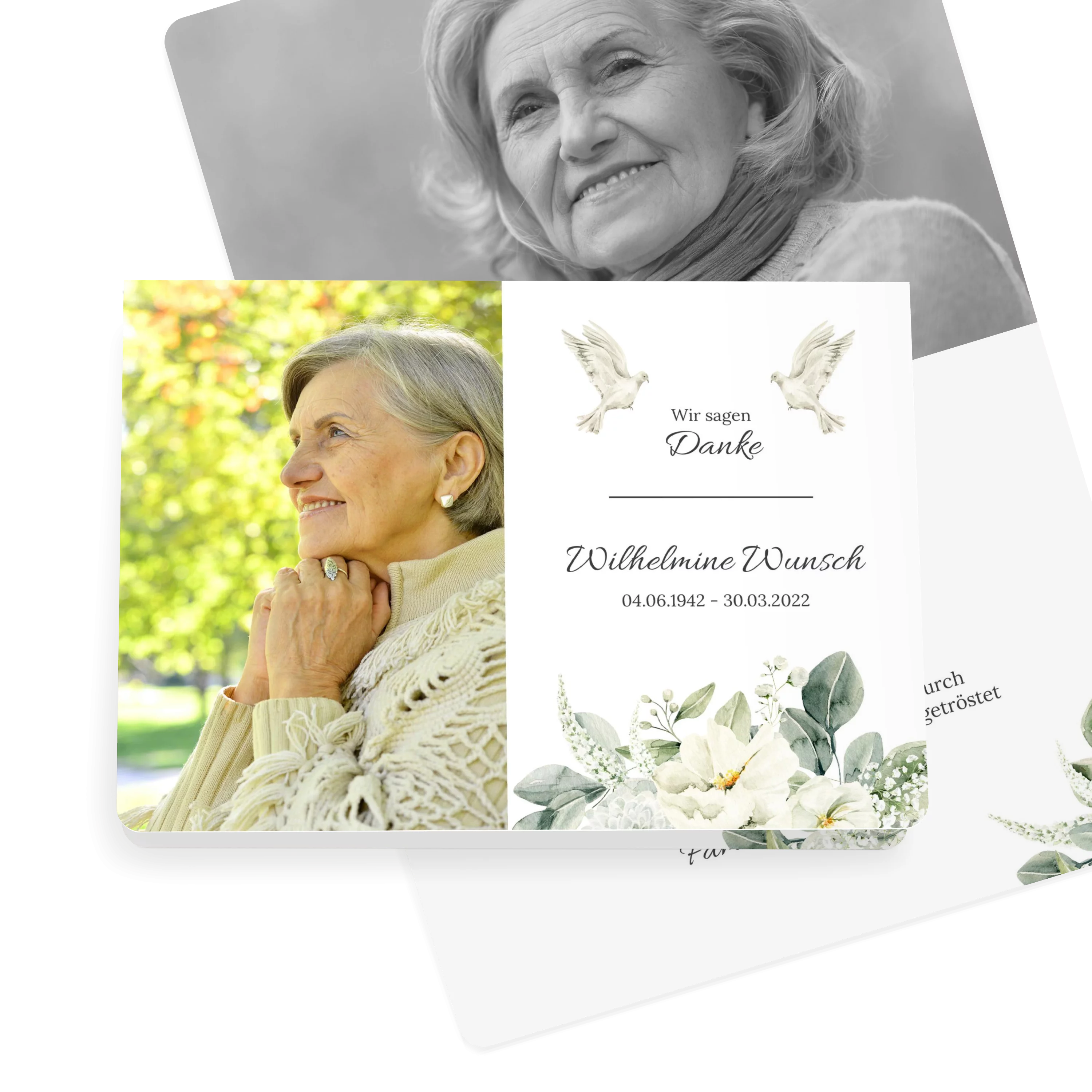 Danksagungskarte Trauer „Weiße Tauben Danke“